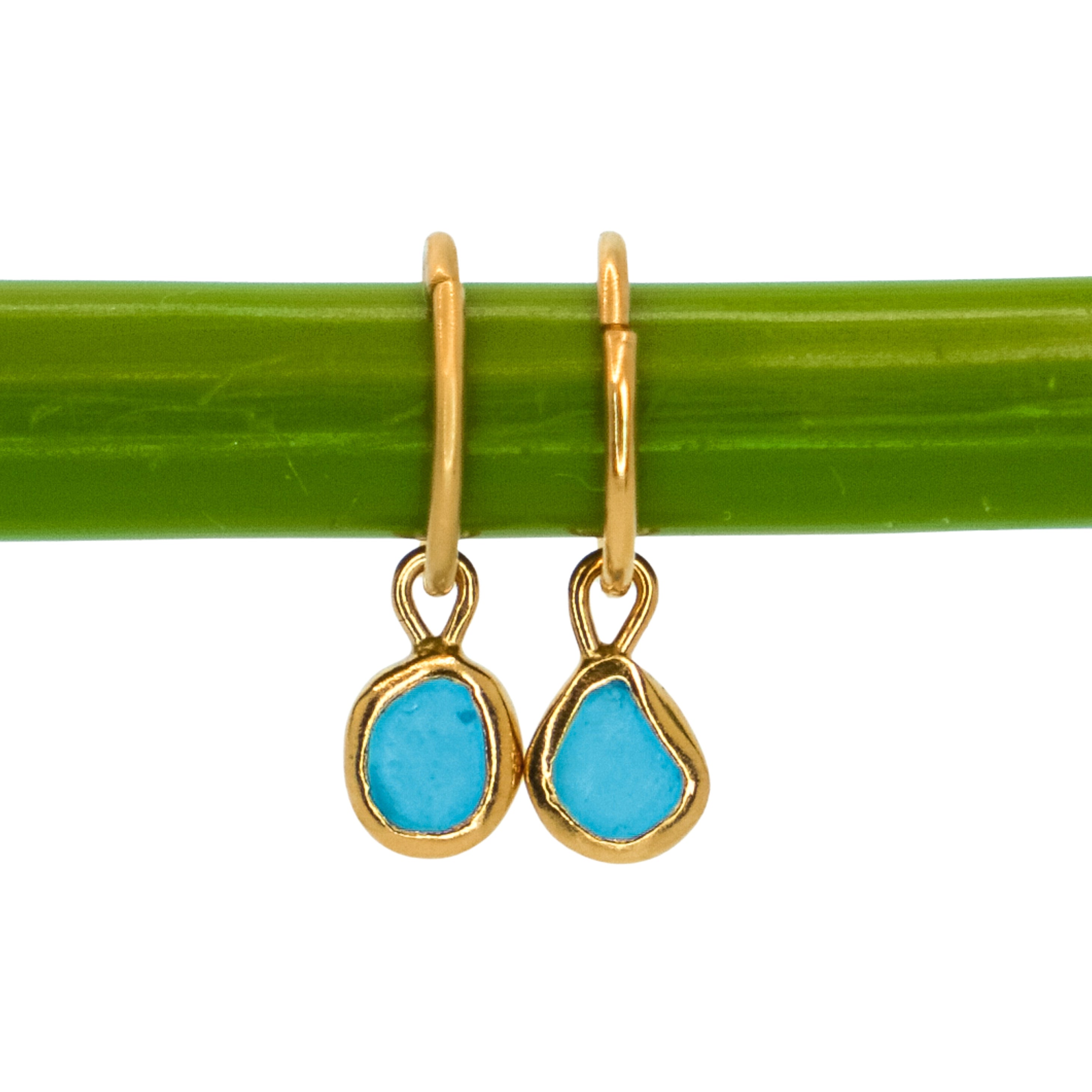 Blue Sea Glass Hoops - Gold Vermeil