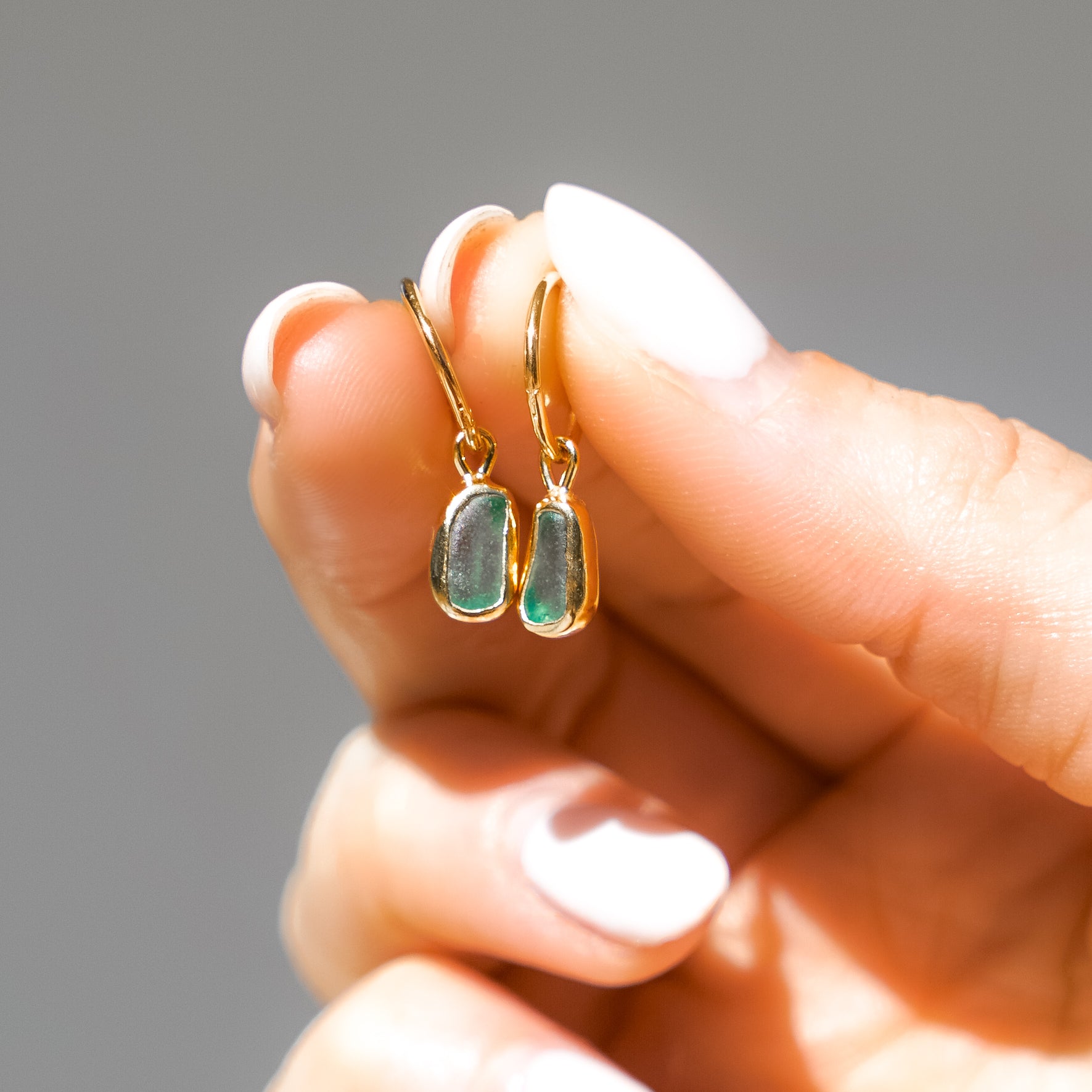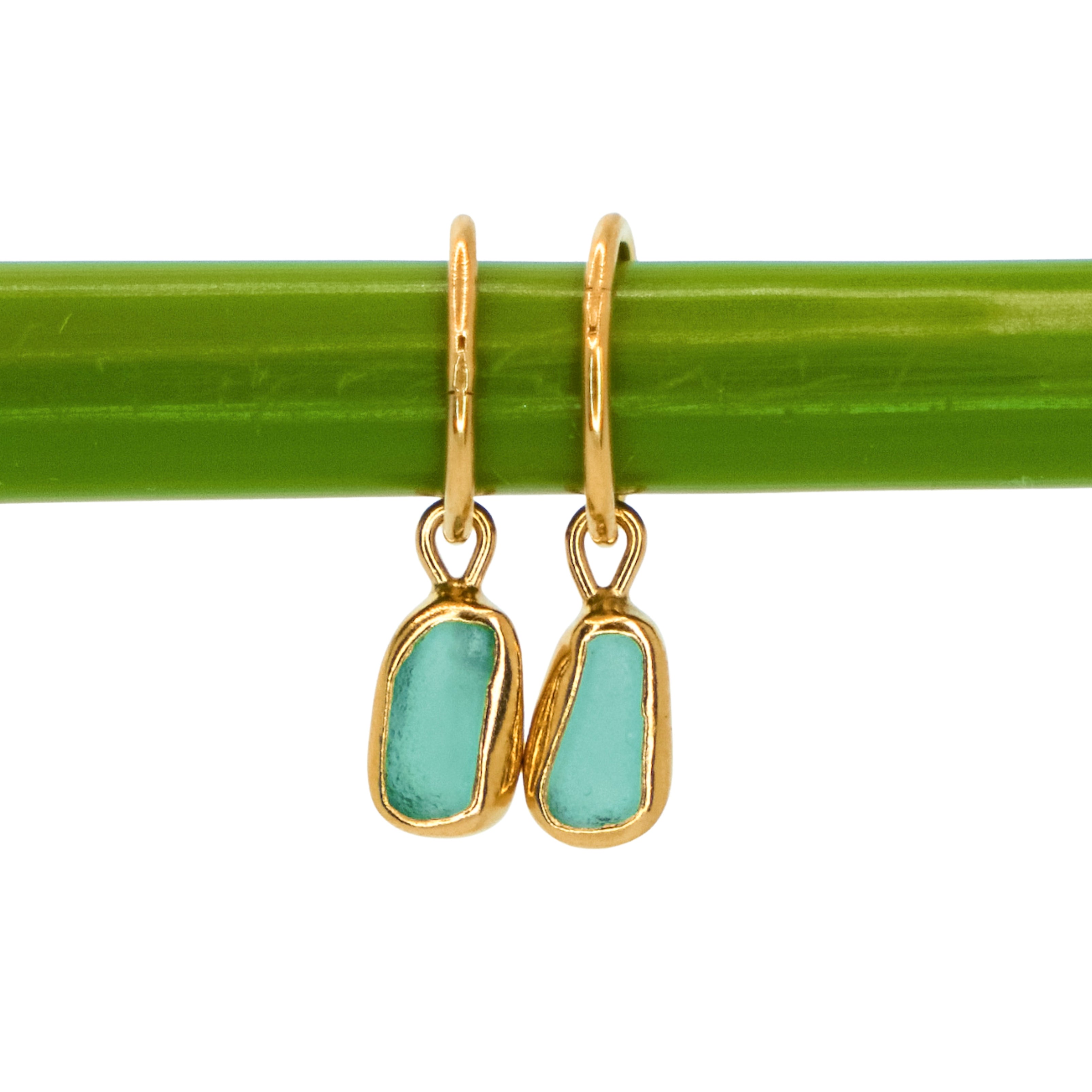 Green Sea Glass Hoops - Gold Vermeil
