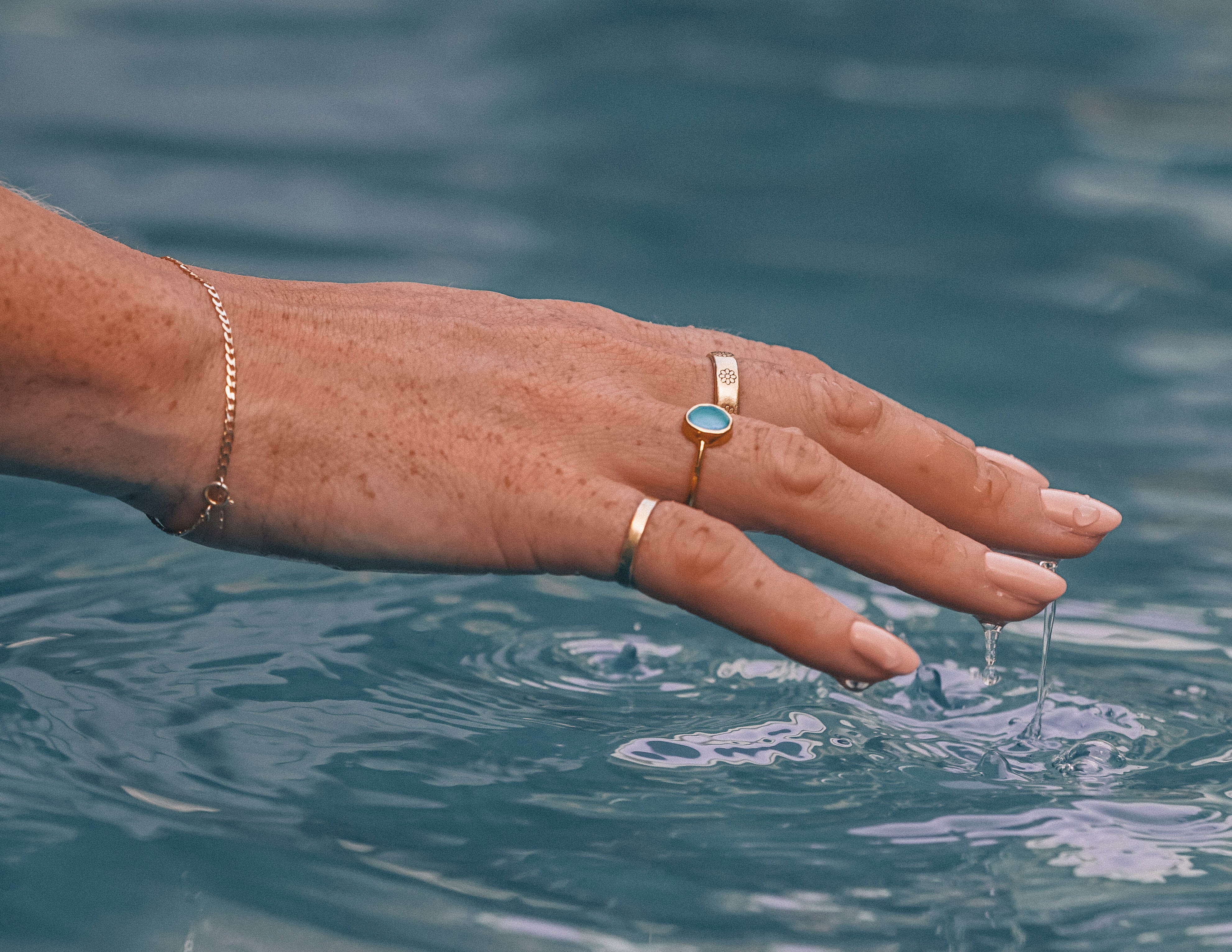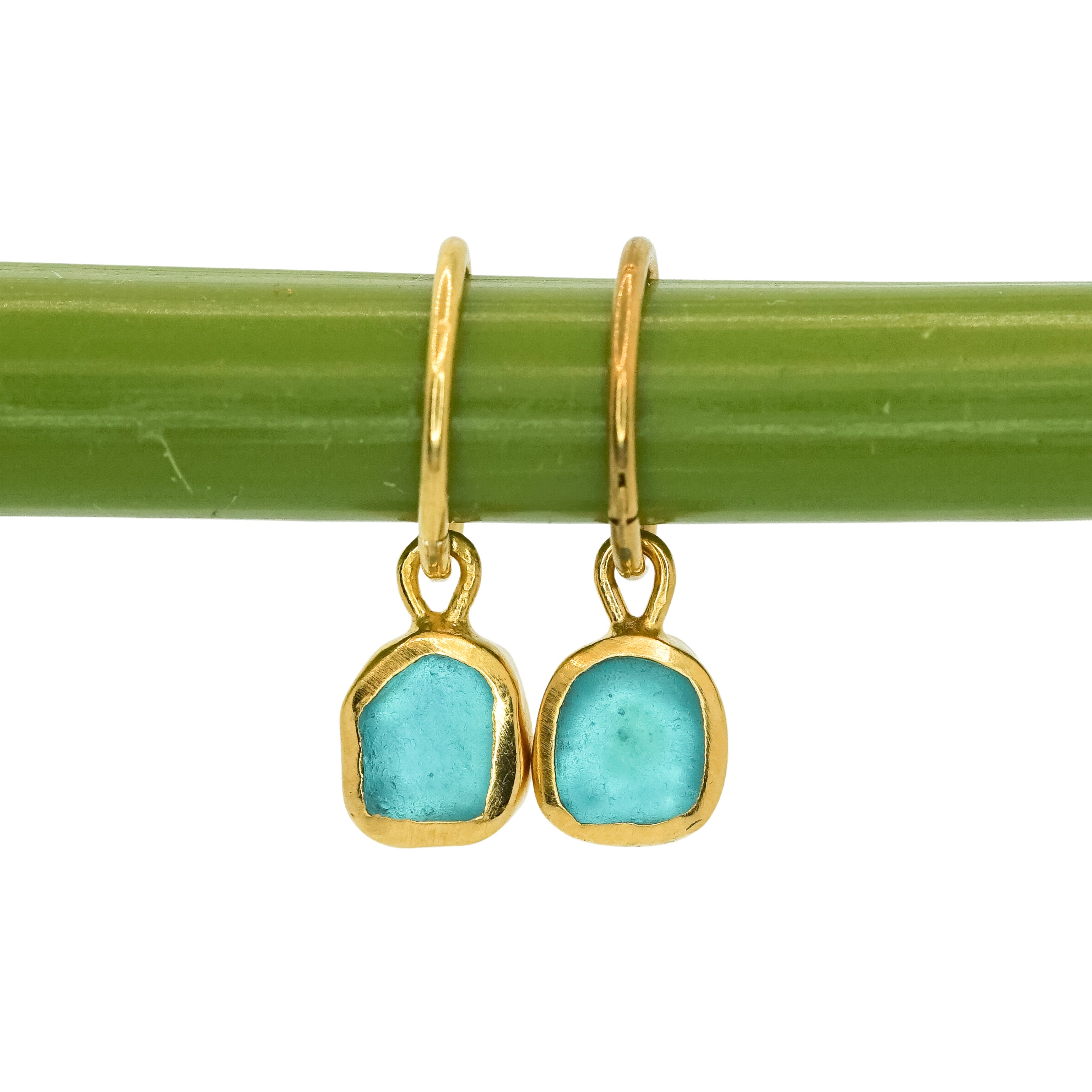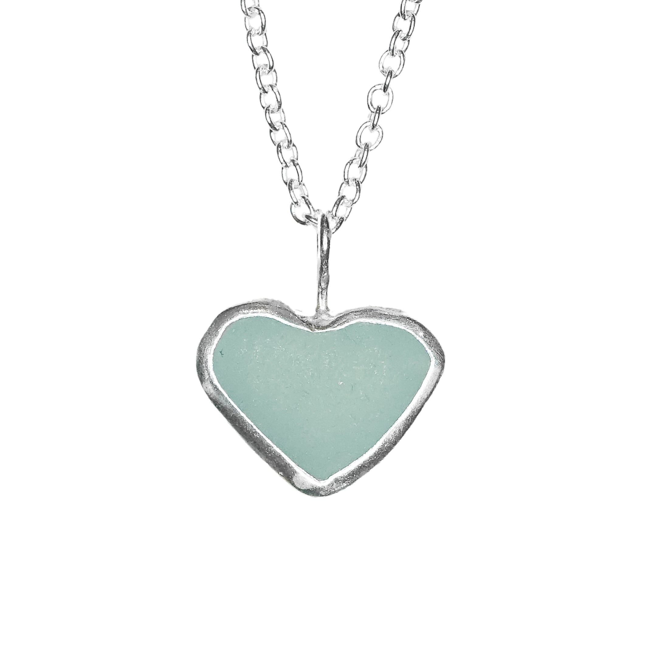 Blue Sea Glass Heart, Gold Vermeil - Size N