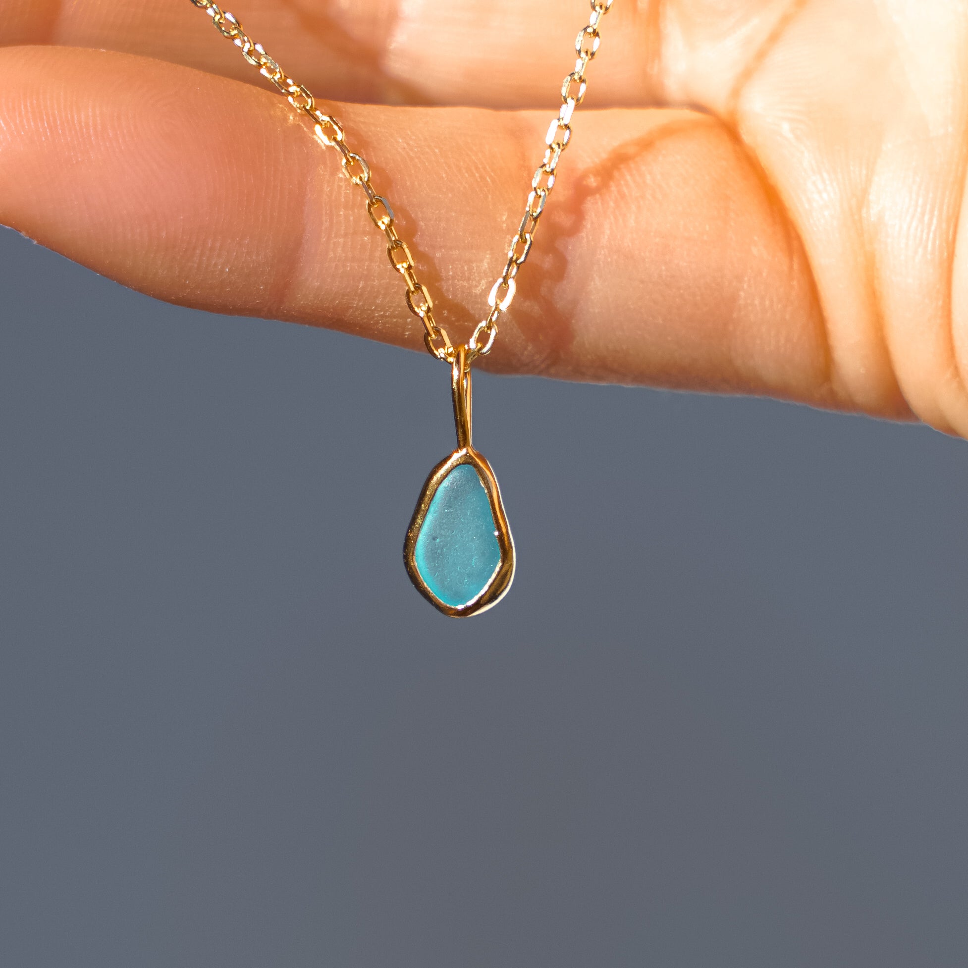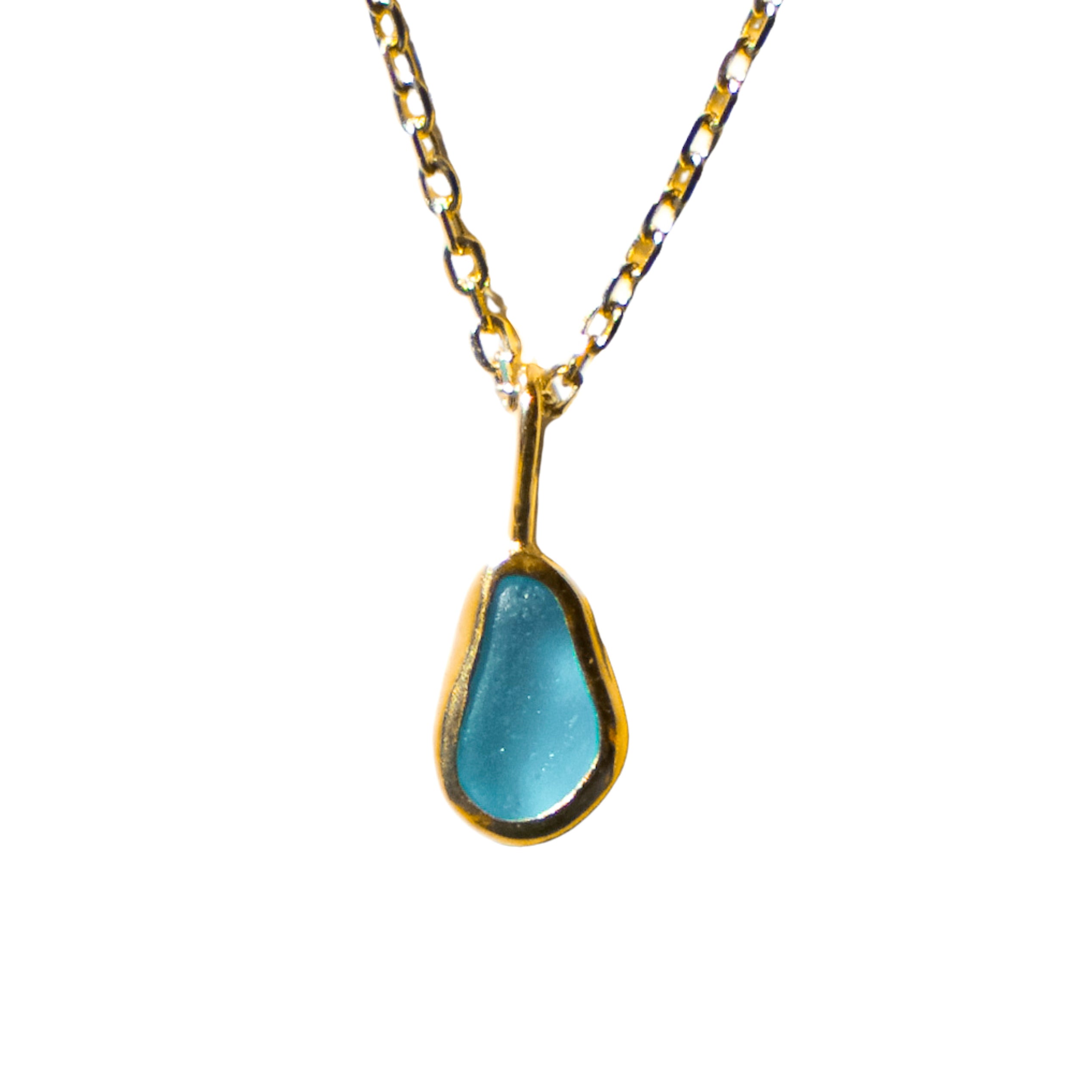 Blue Sea Glass Necklace - Gold Vermeil