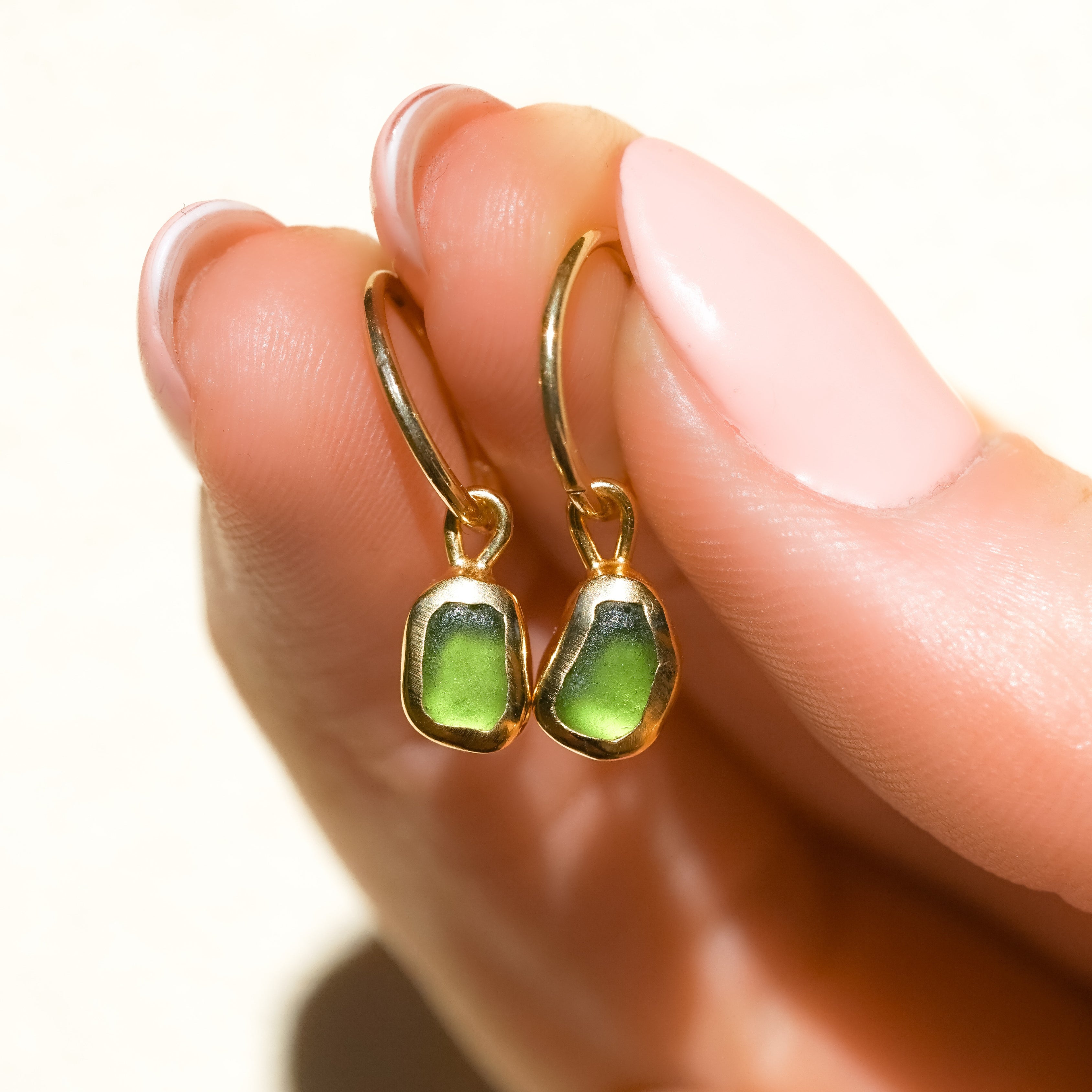 Green Sea Glass Heart, Gold Vermeil - Size M