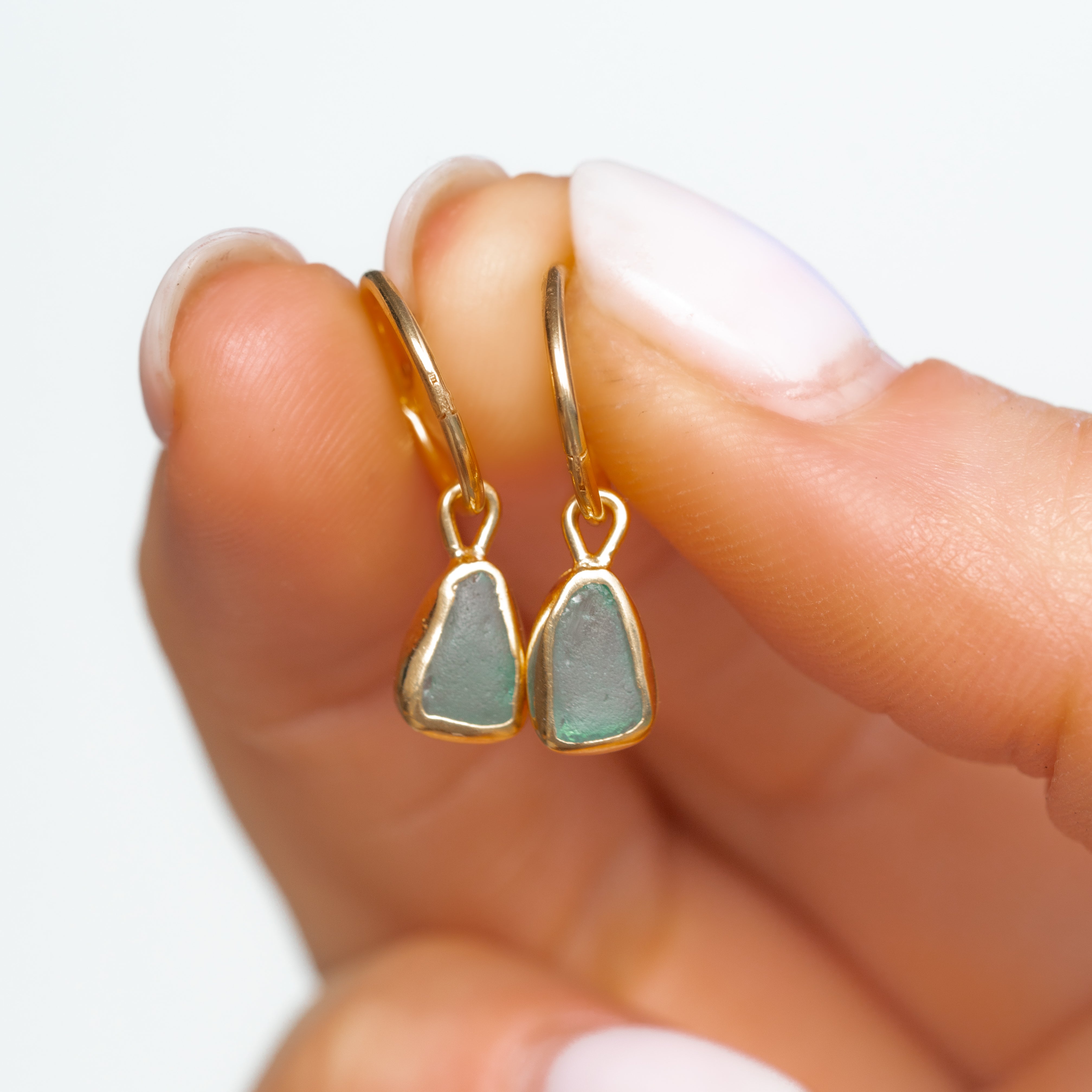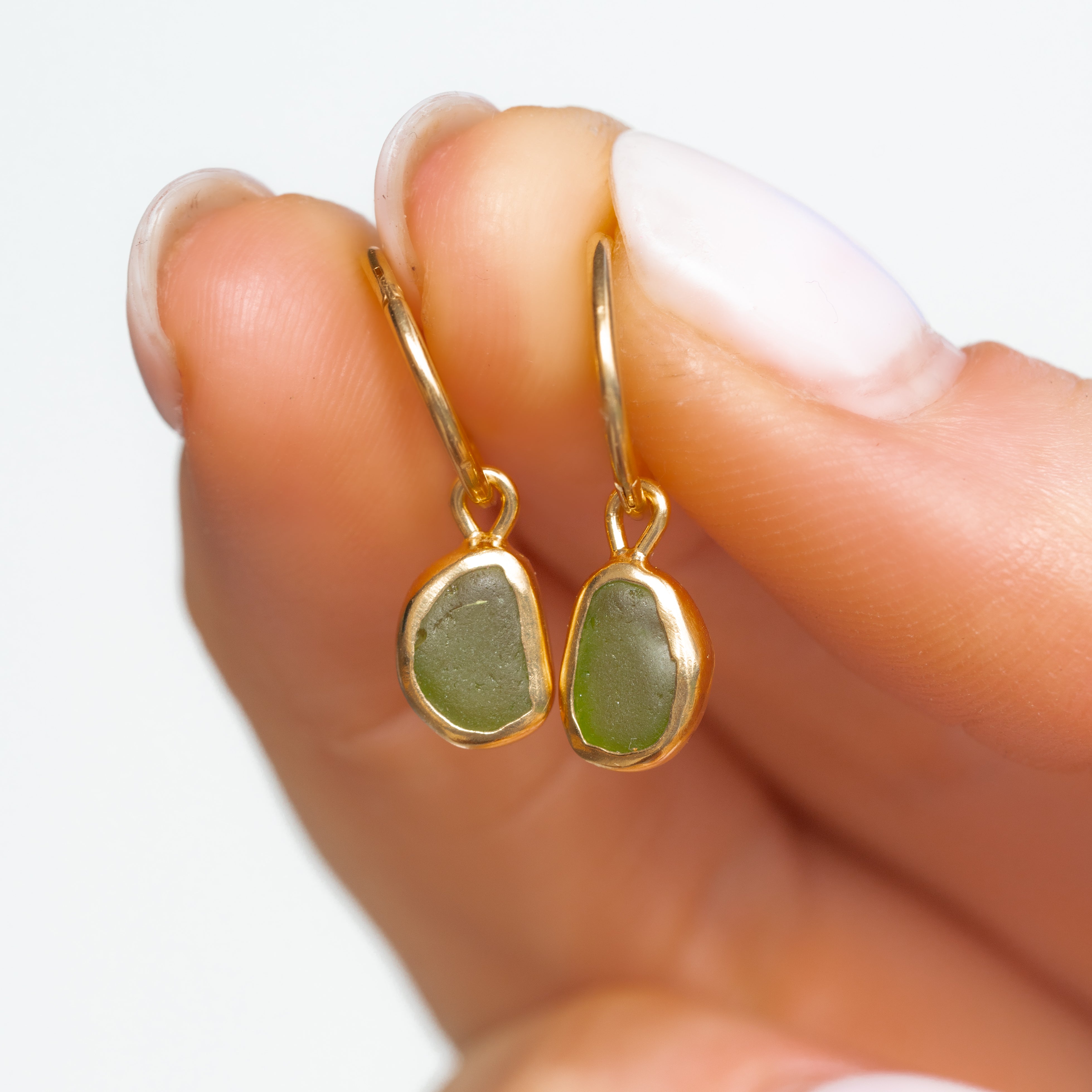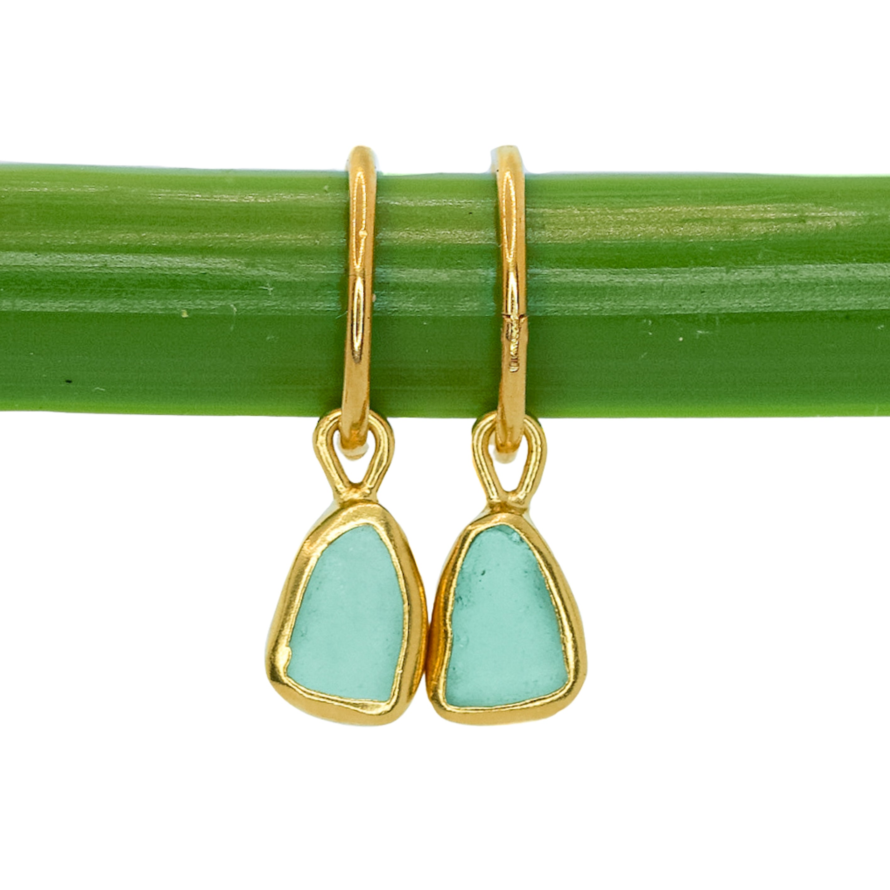 Green Sea Glass Hoops - Gold Vermeil