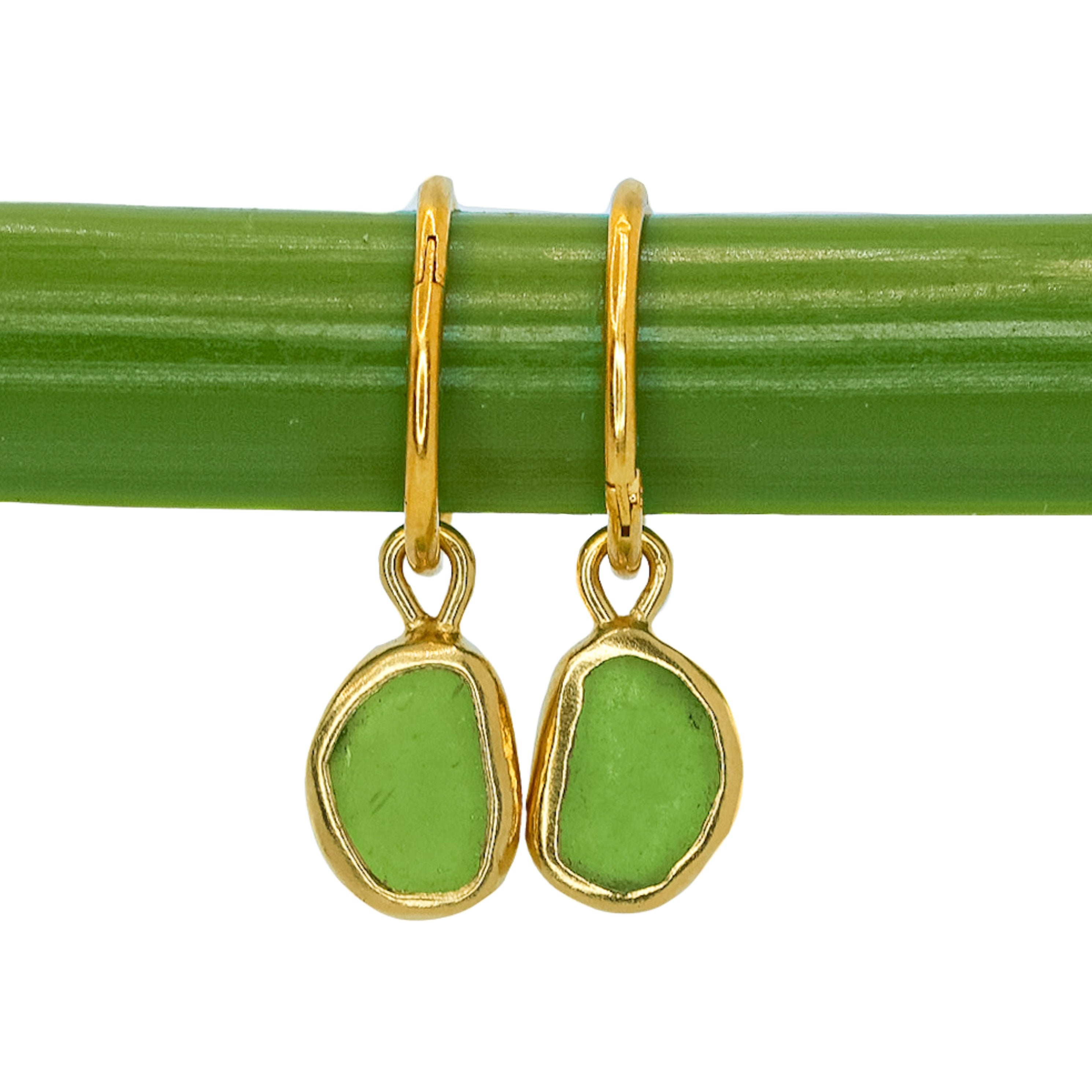Green Sea Glass Hoops