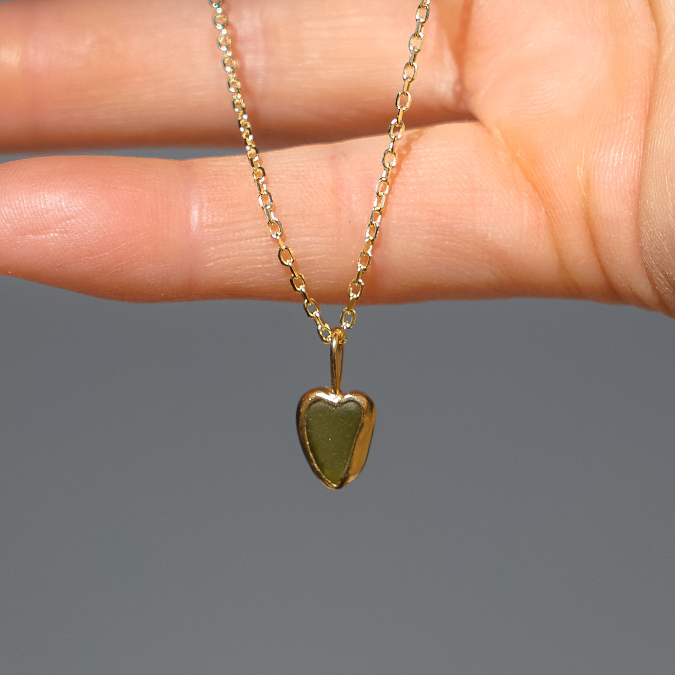 Green Sea Glass Heart Necklace, Gold Vermeil