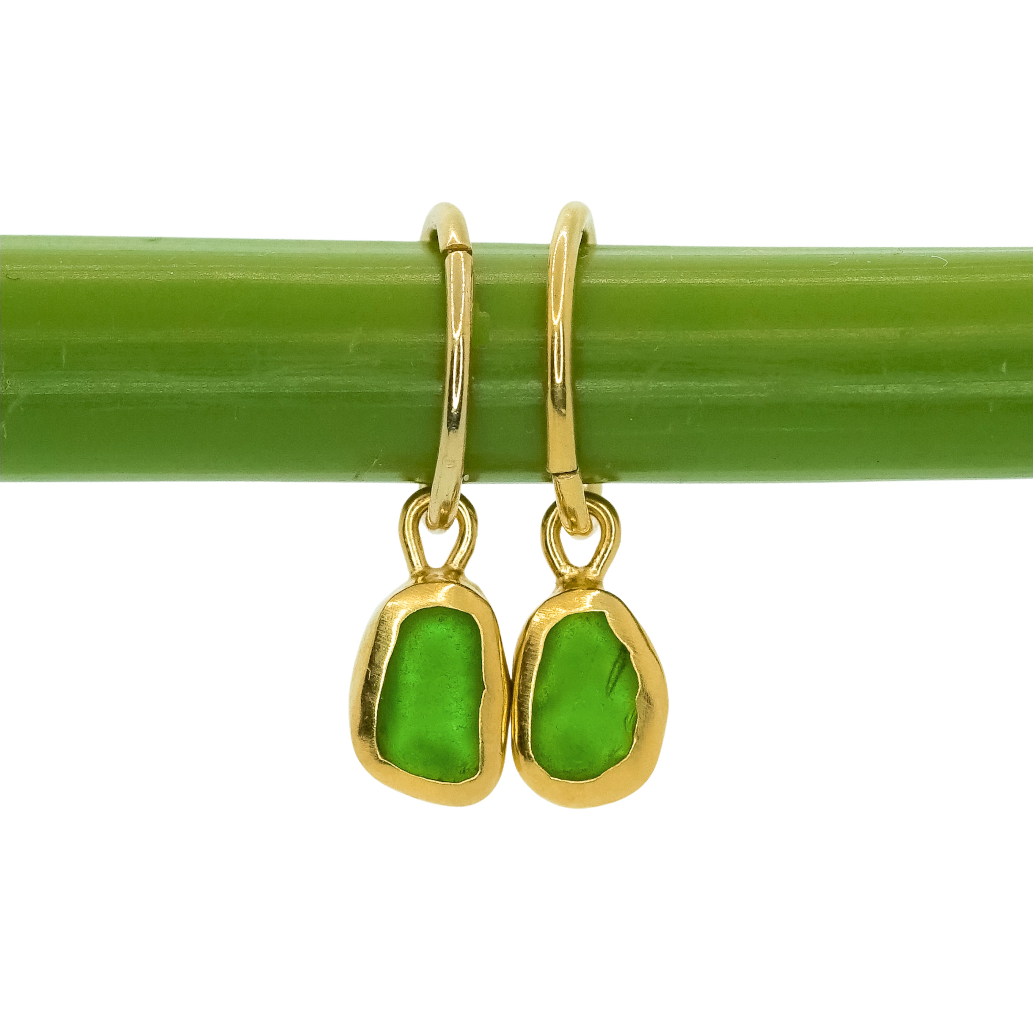 Green Sea Glass Hoops - Gold Vermeil