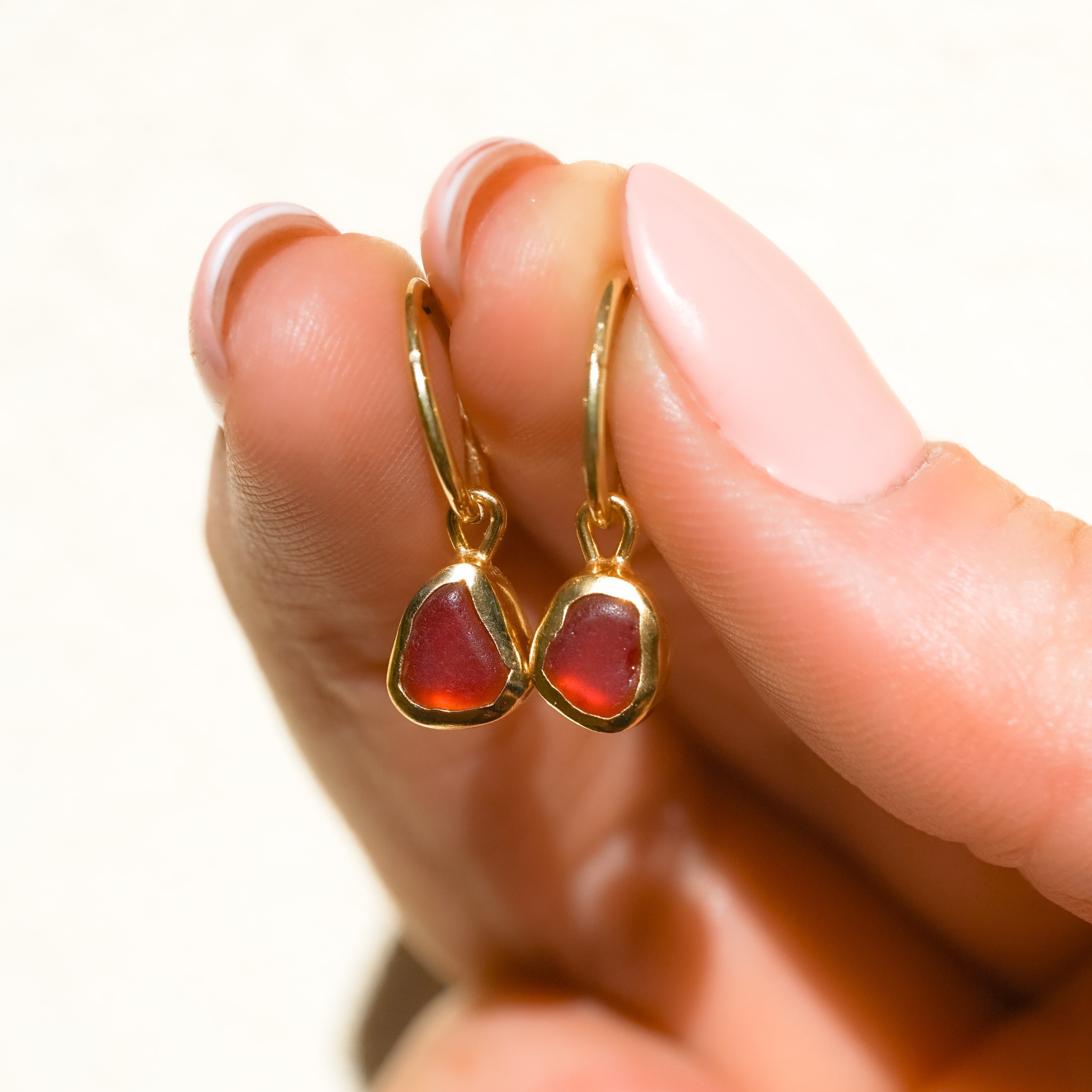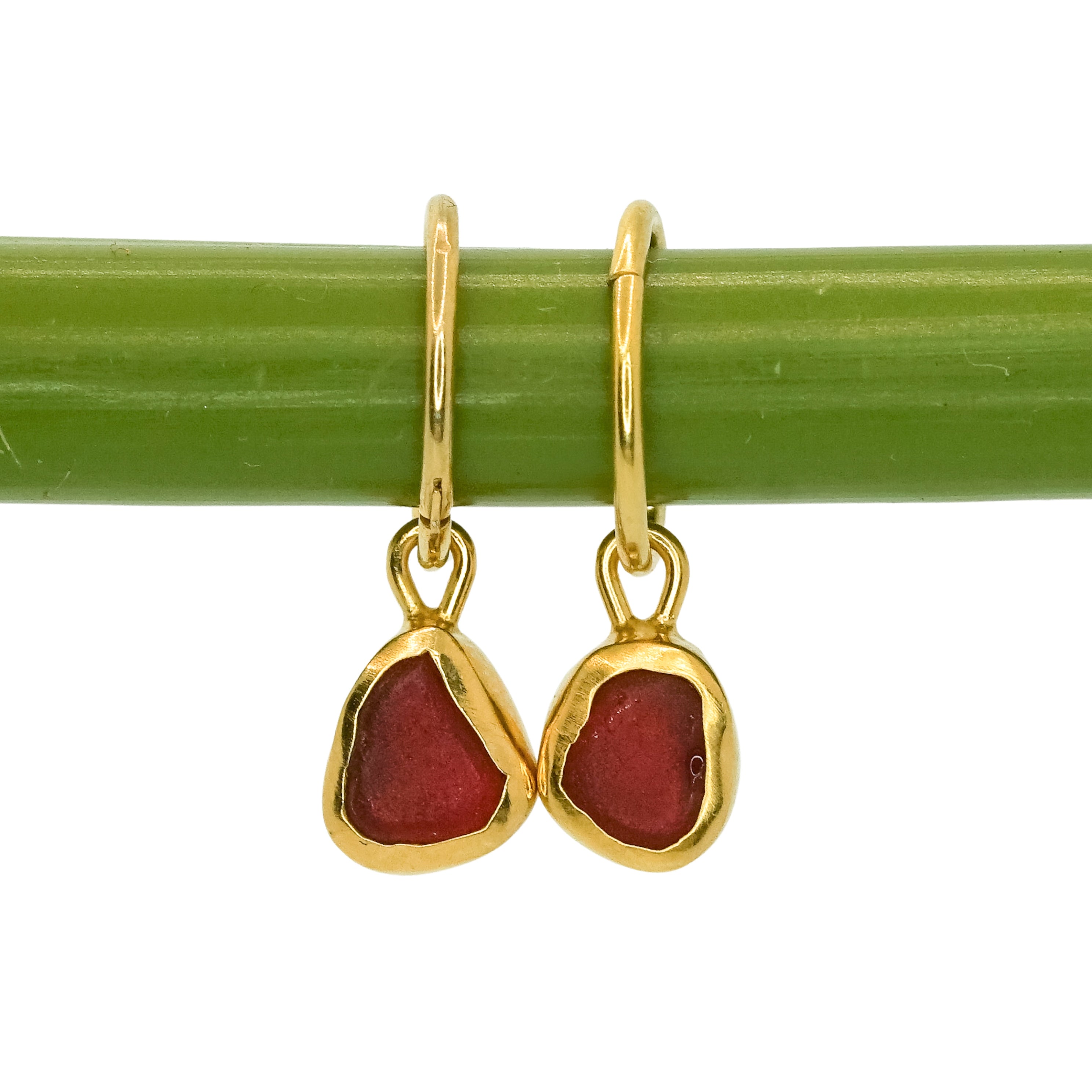 Red Sea Glass Hoops - Gold Vermeil