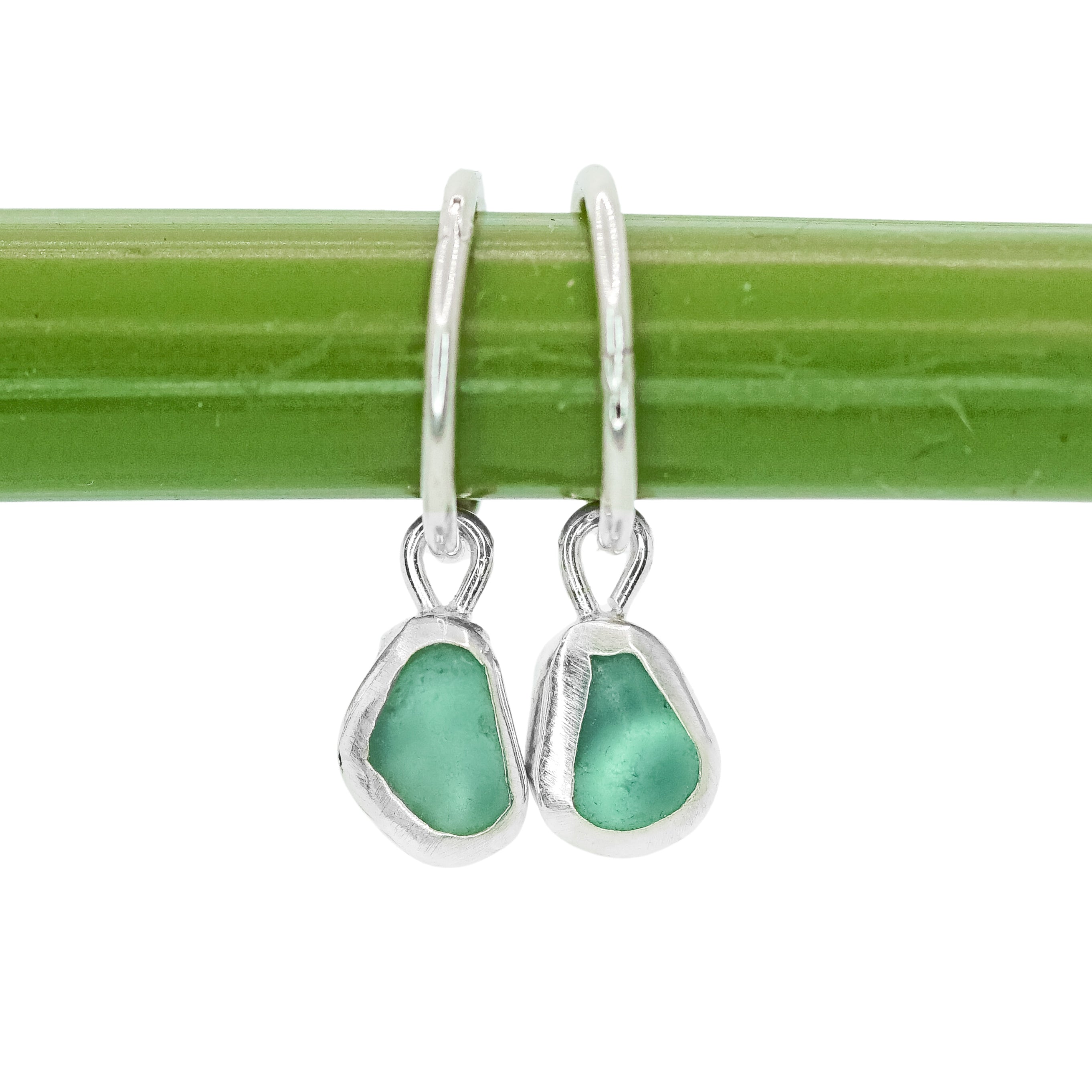 Green Sea Glass Hoops