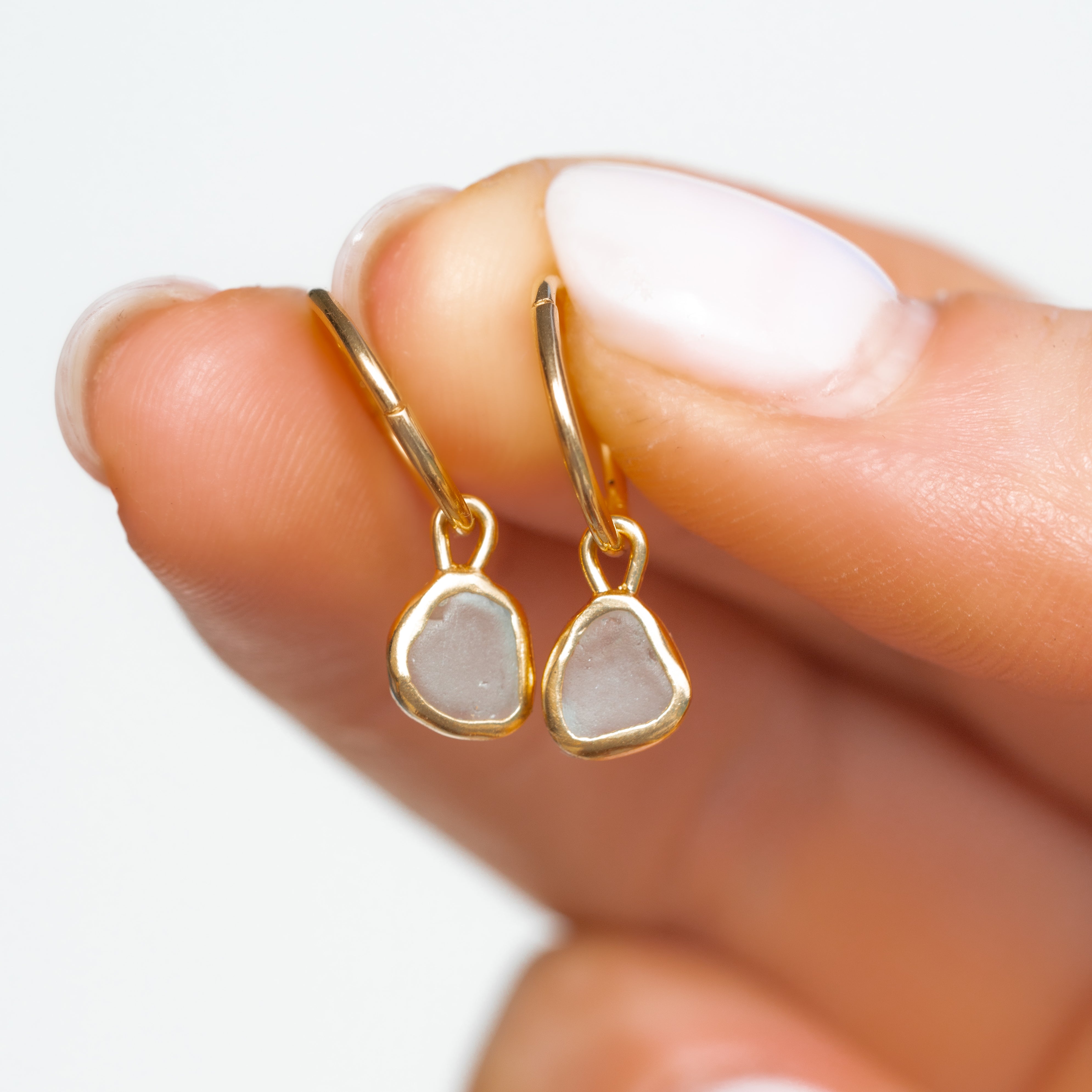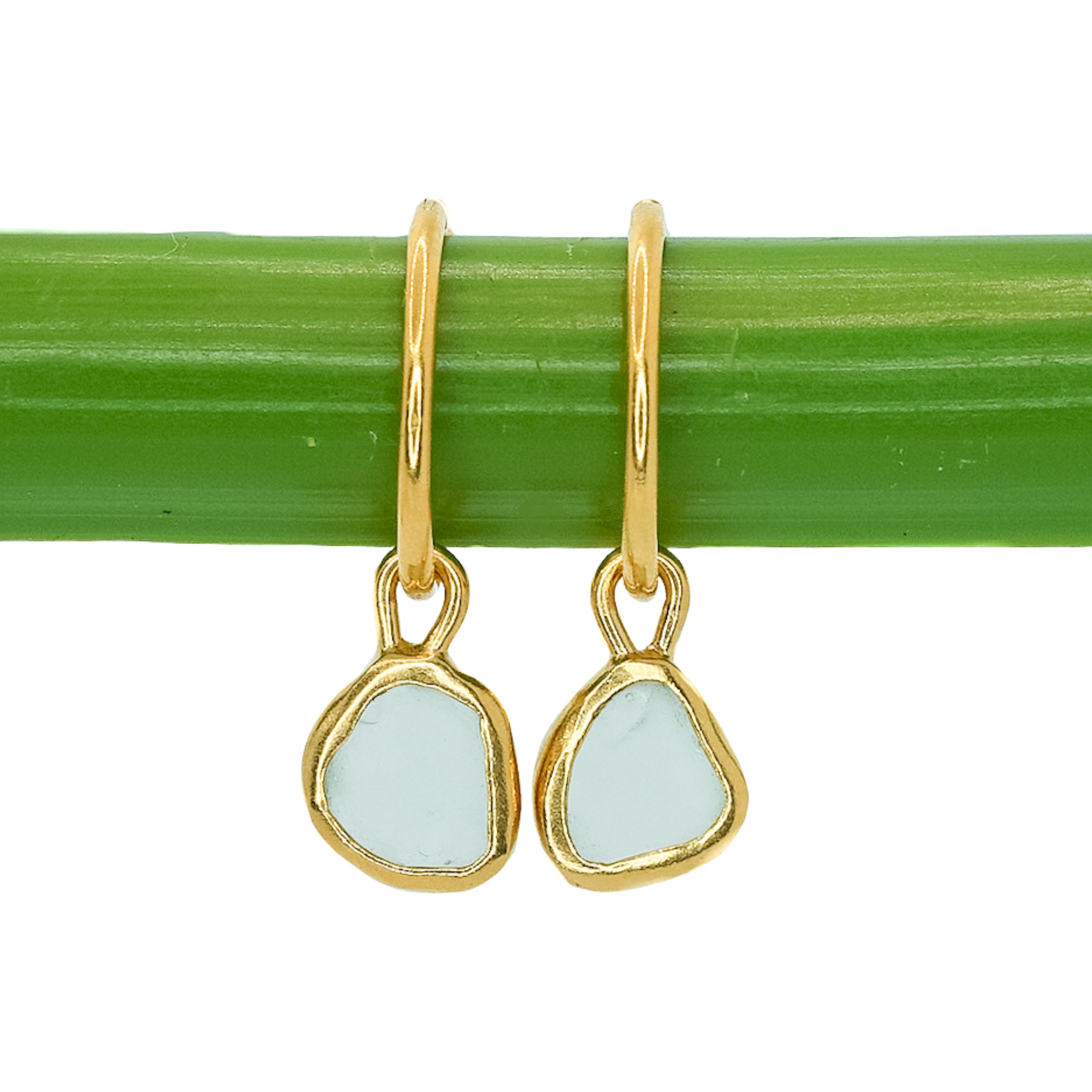 Light Blue Sea Glass Hoops - Gold Vermeil
