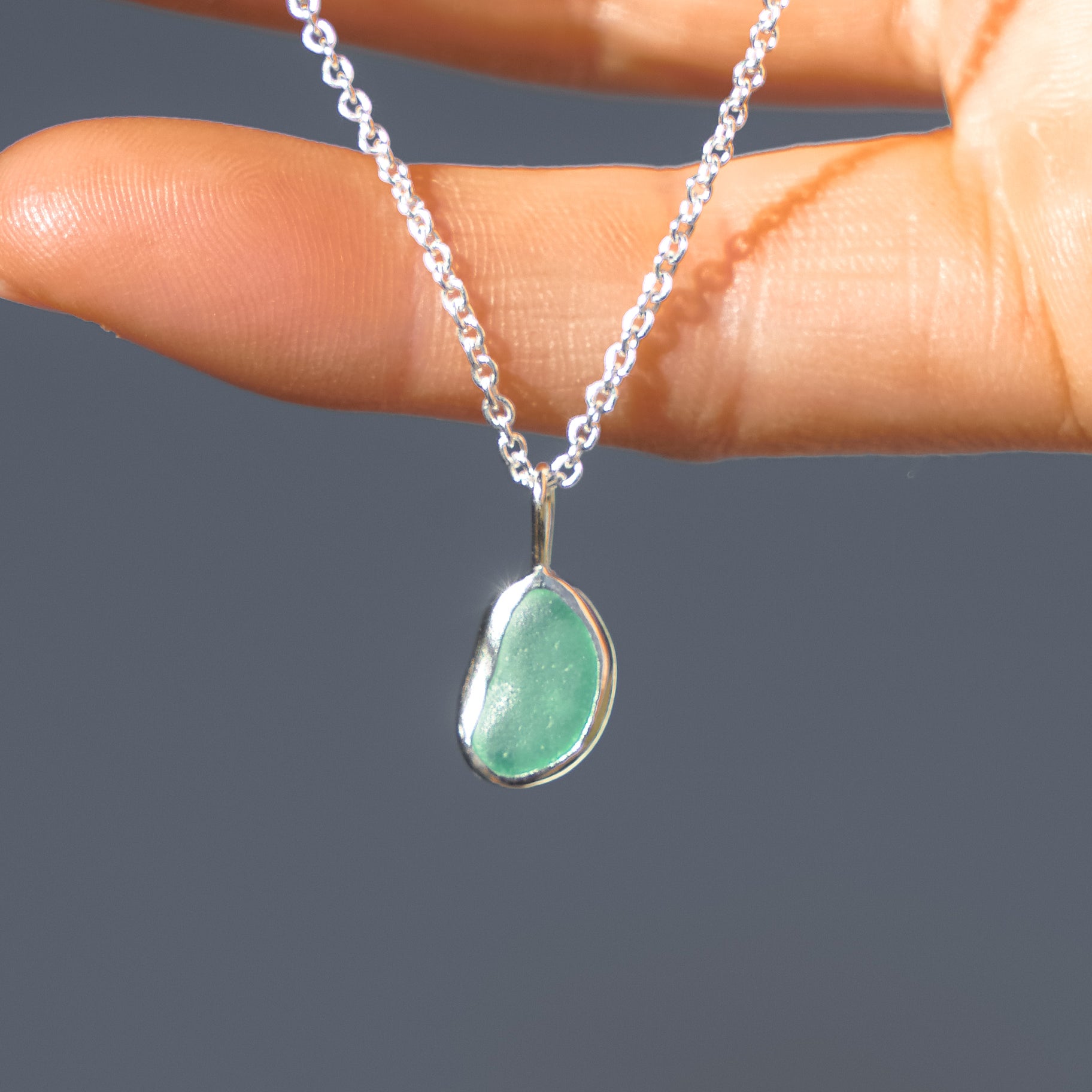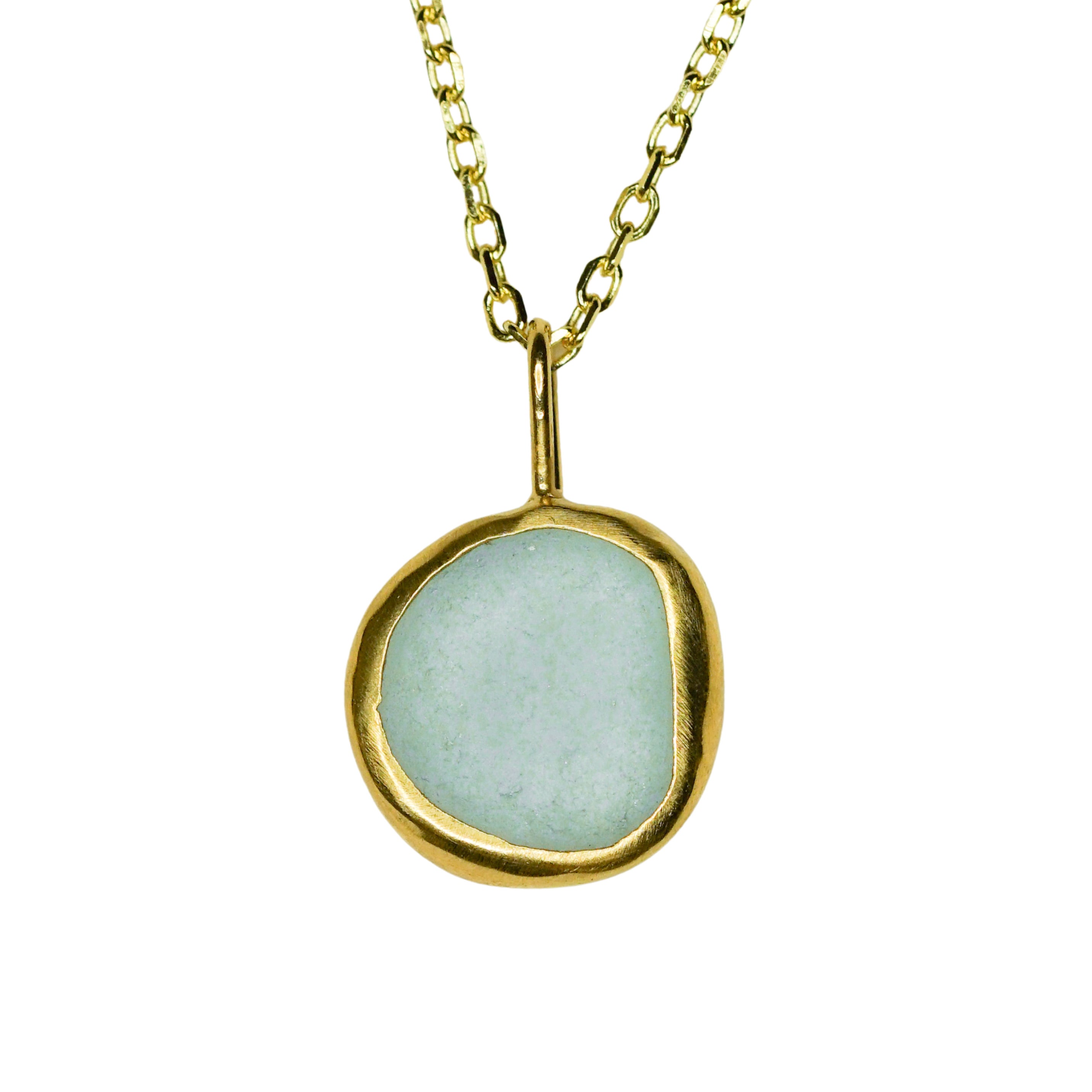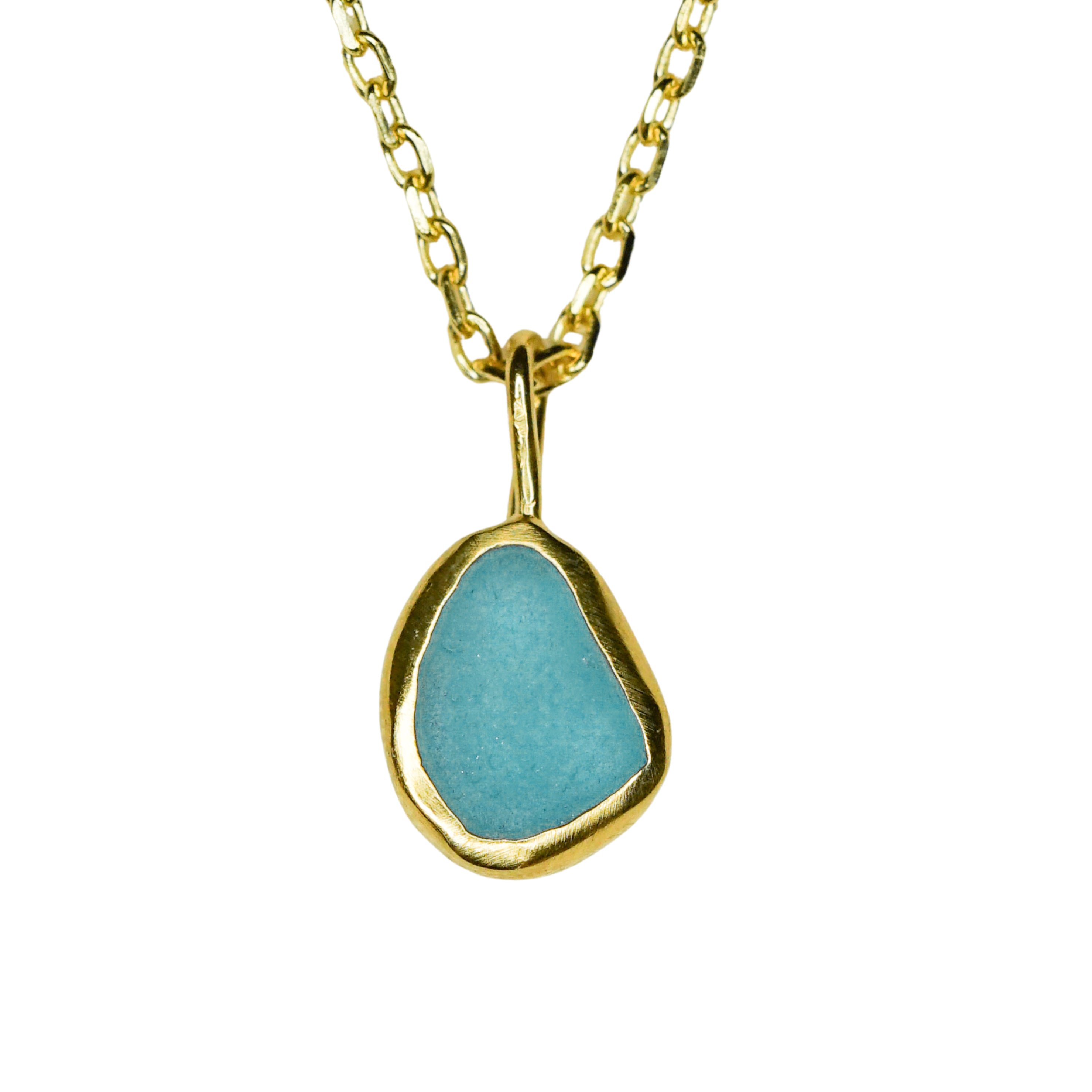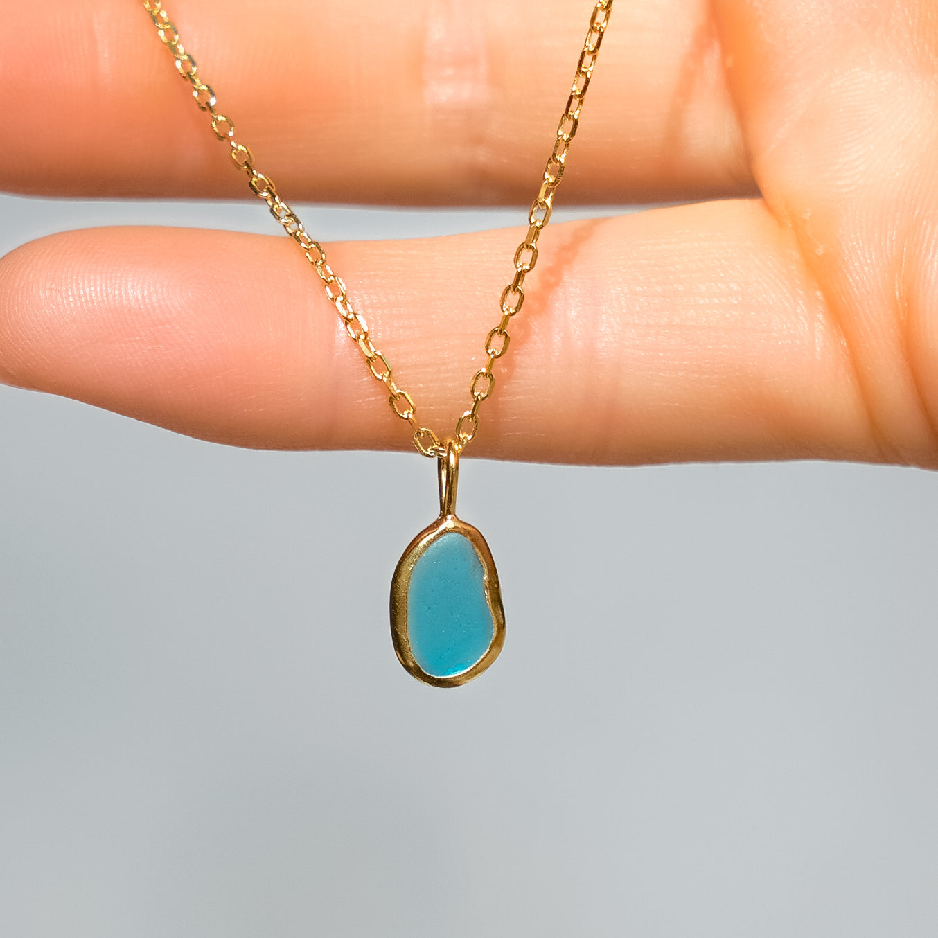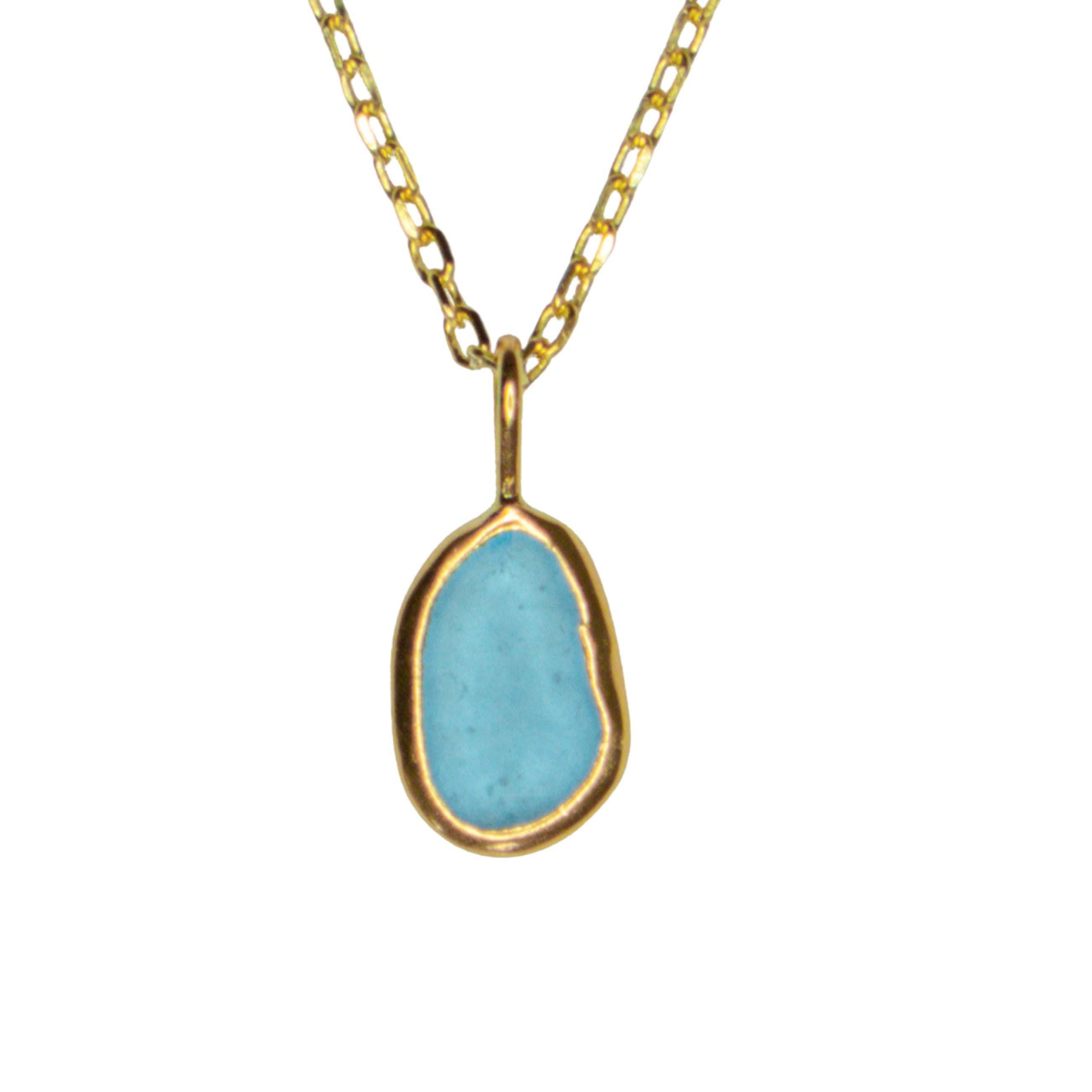 Light Blue Sea Glass Necklace - Gold Vermeil