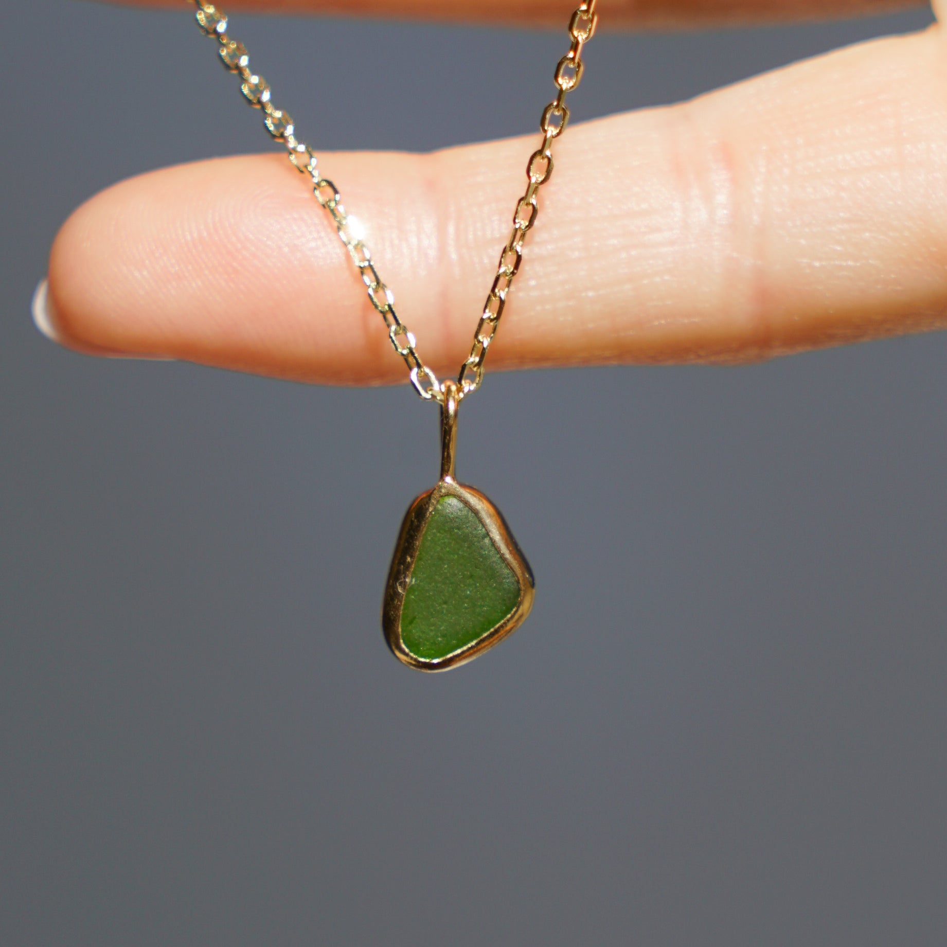 Green Sea Glass Sun Necklace - Gold Vermeil