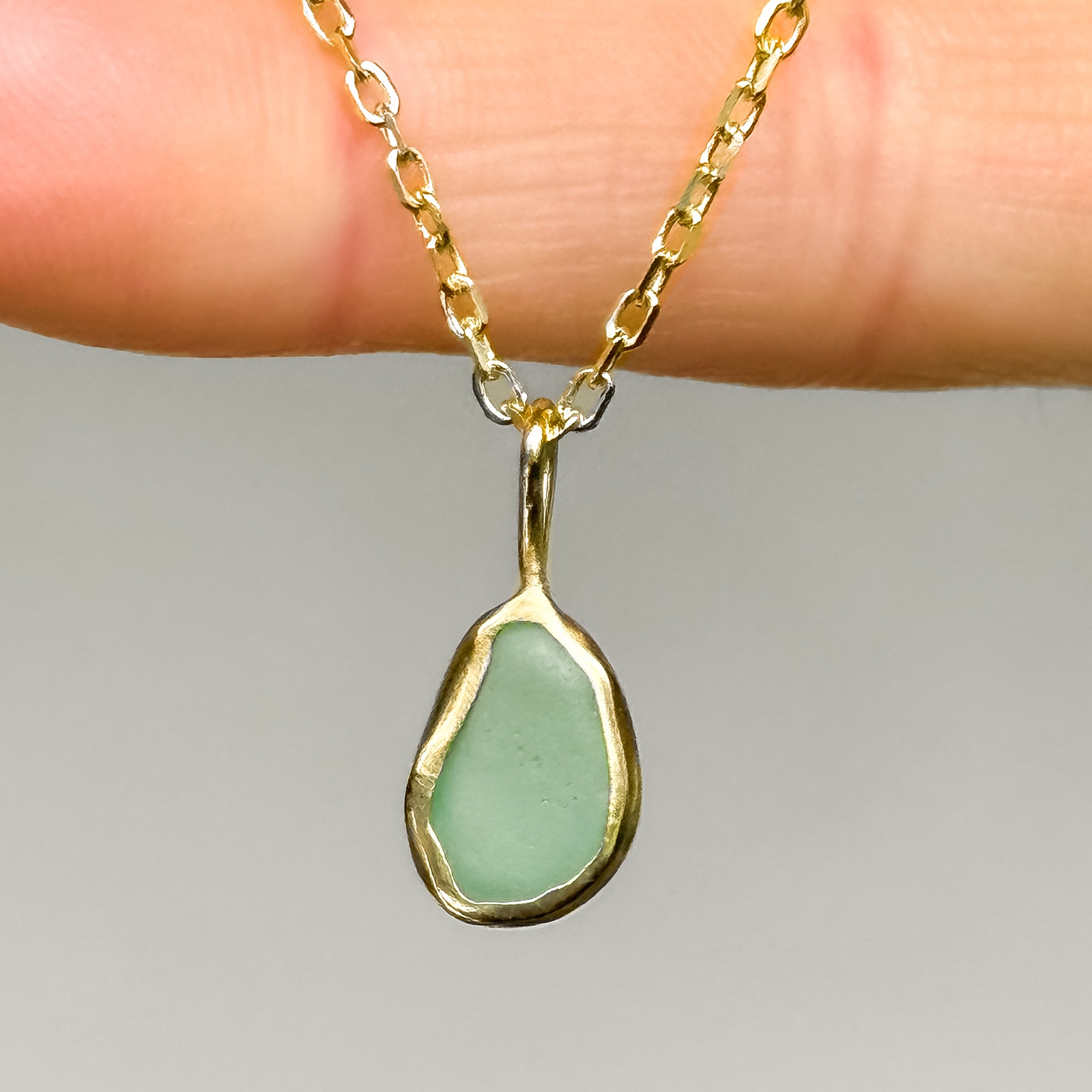 Green Sea Glass Necklace - Gold Vermeil