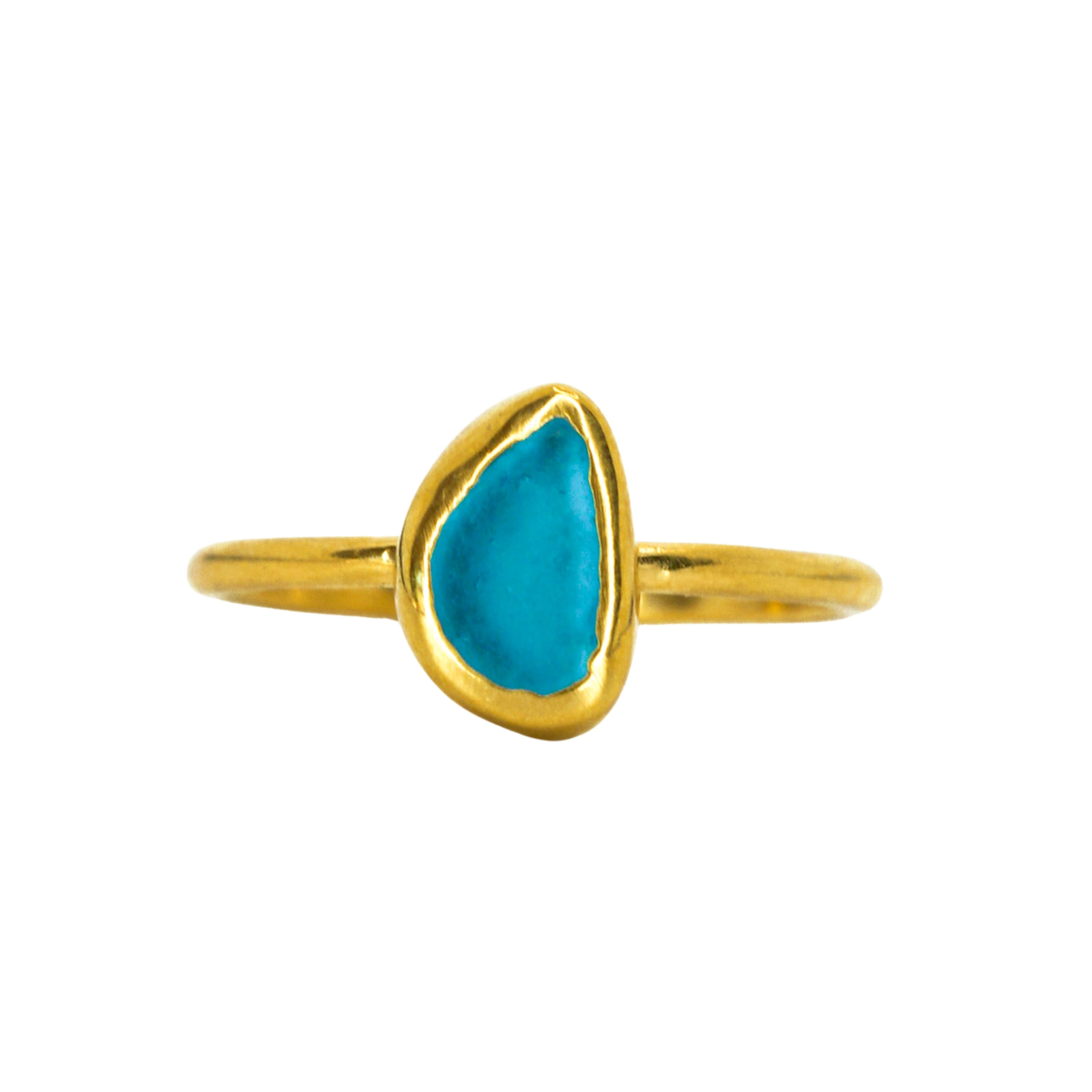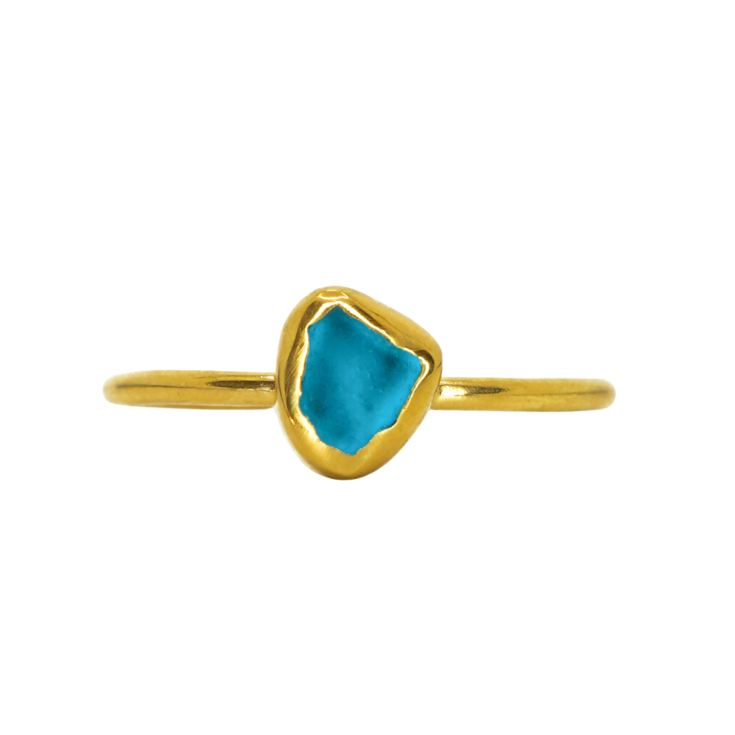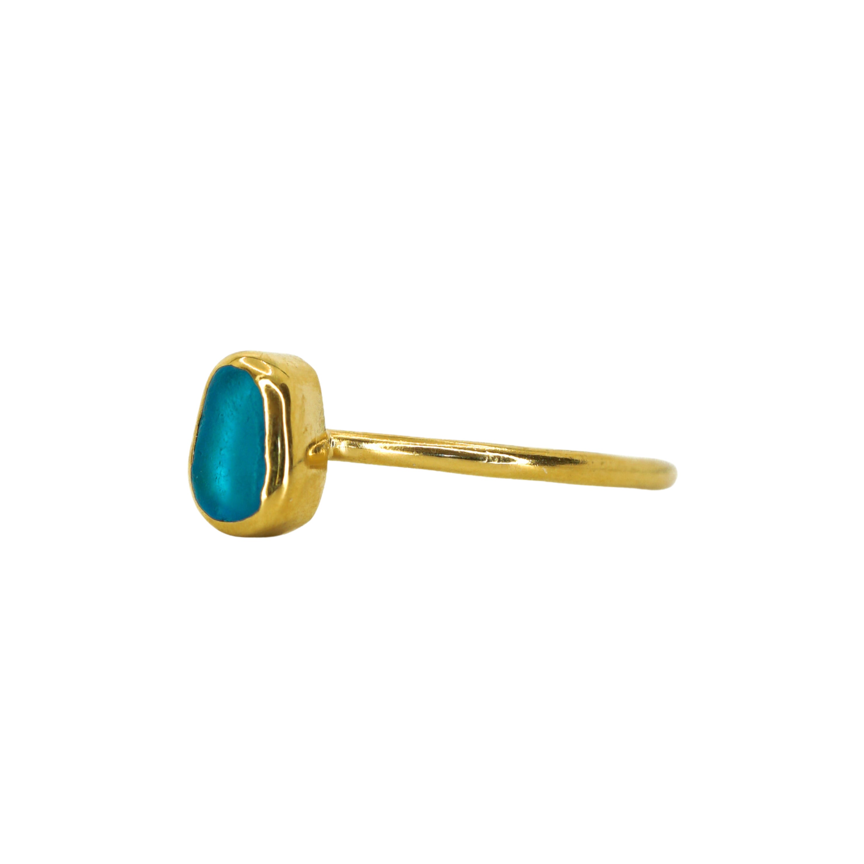 Blue Sea Glass, Gold Vermeil - Size Q 1/2