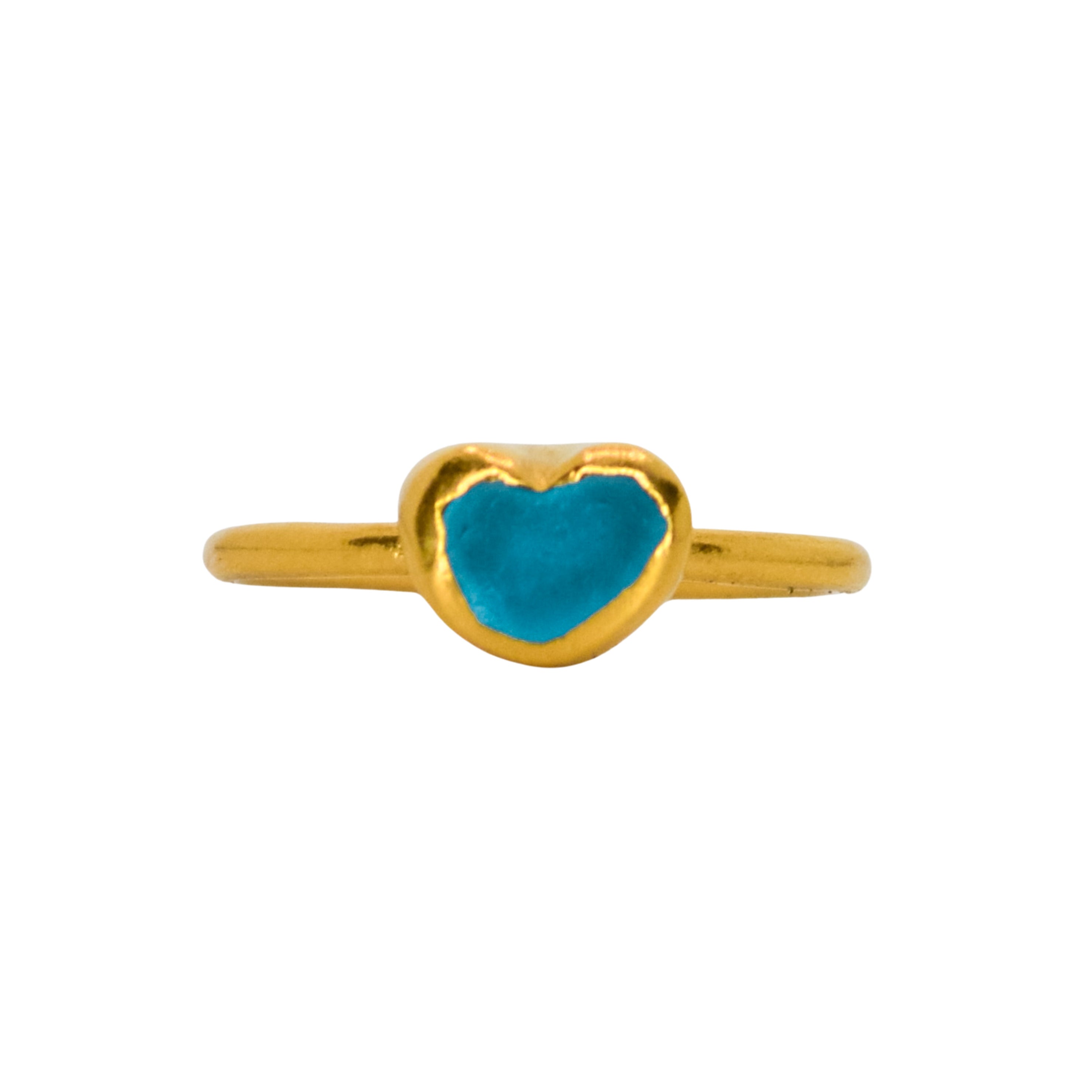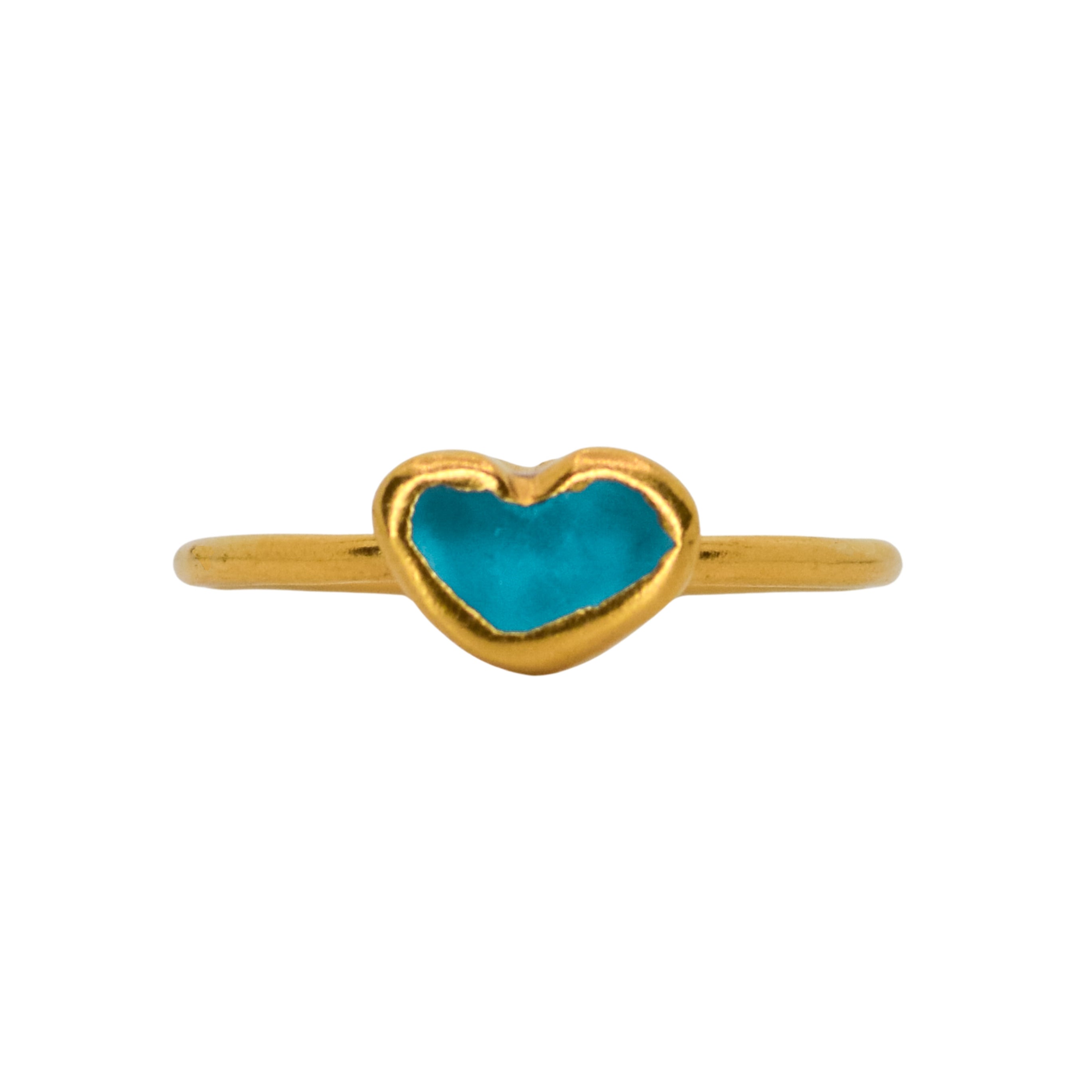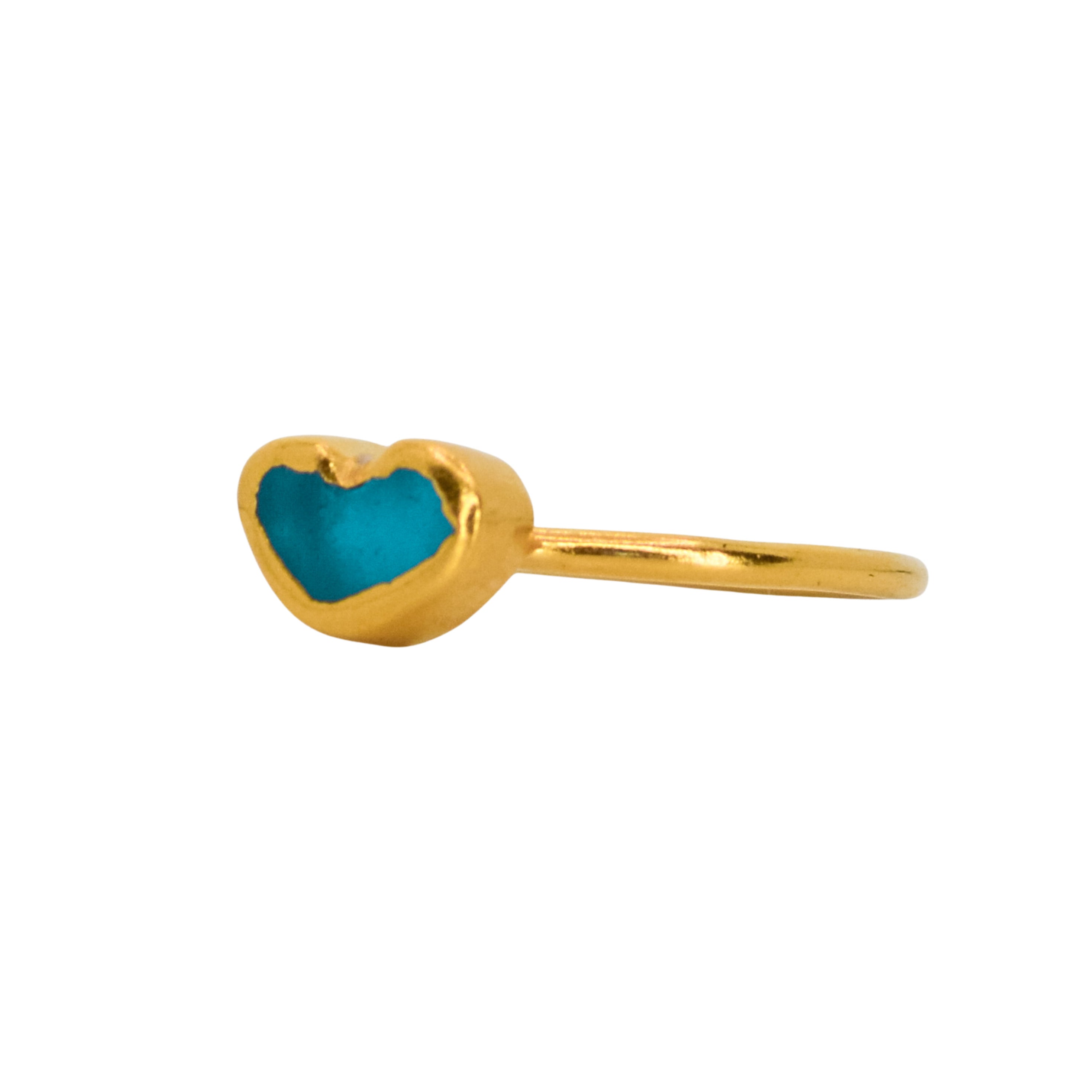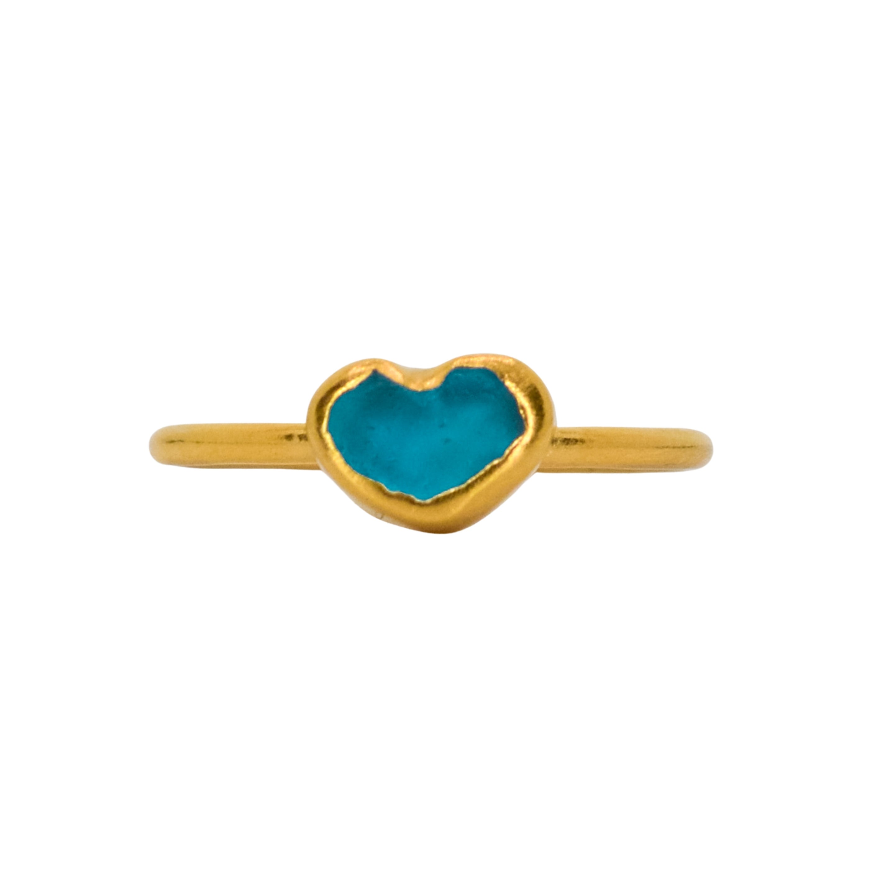 Blue Sea Glass Heart, Gold Vermeil - Size Q