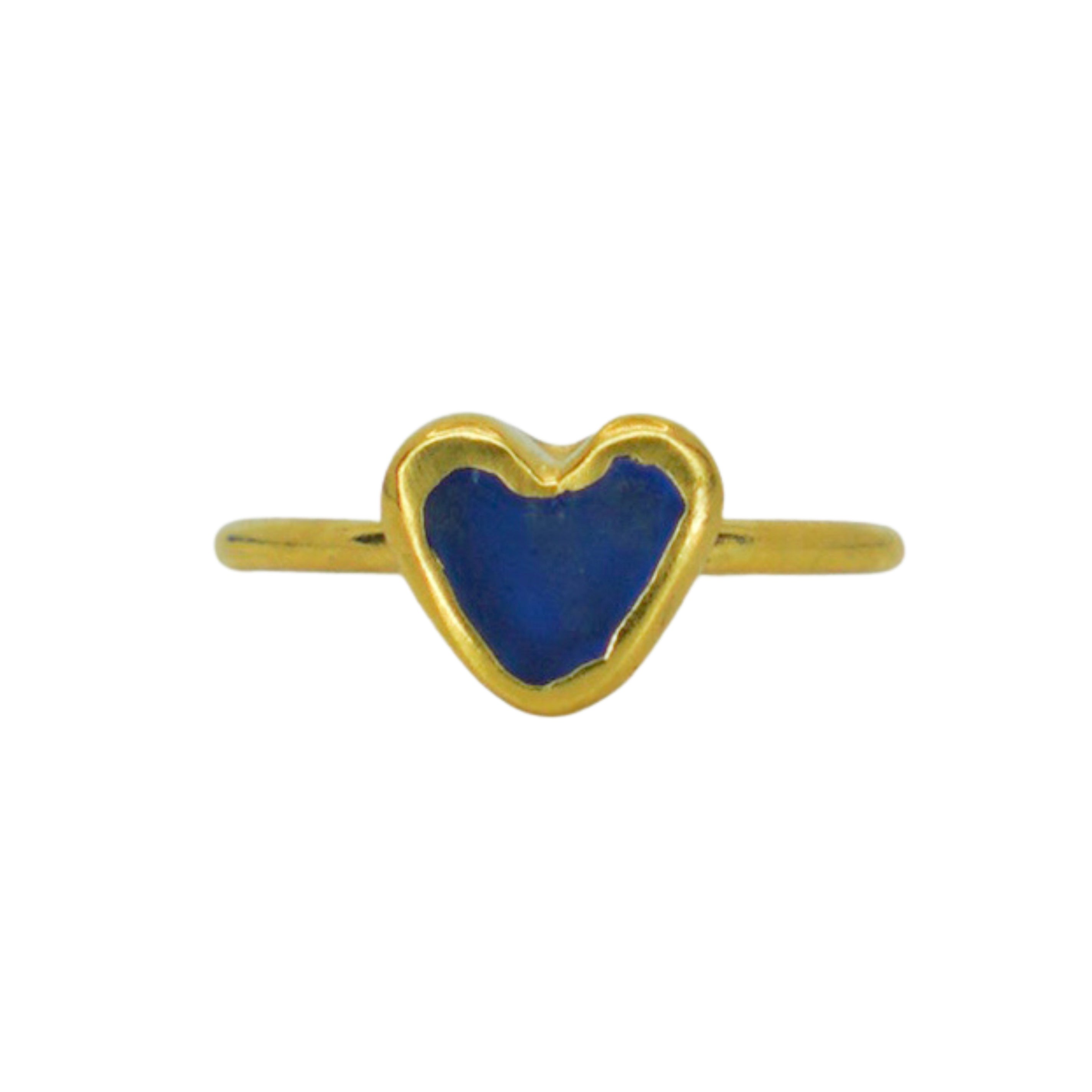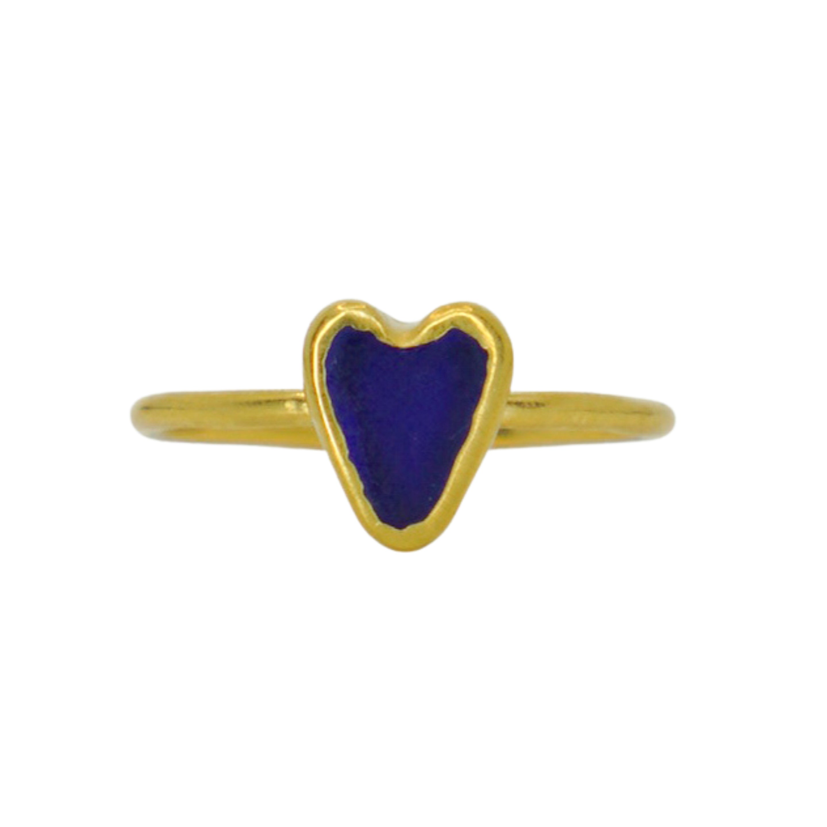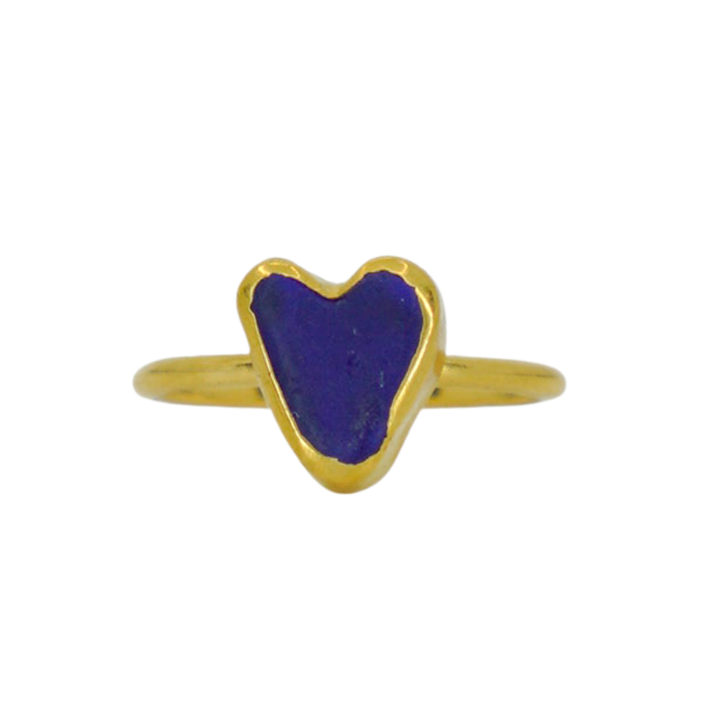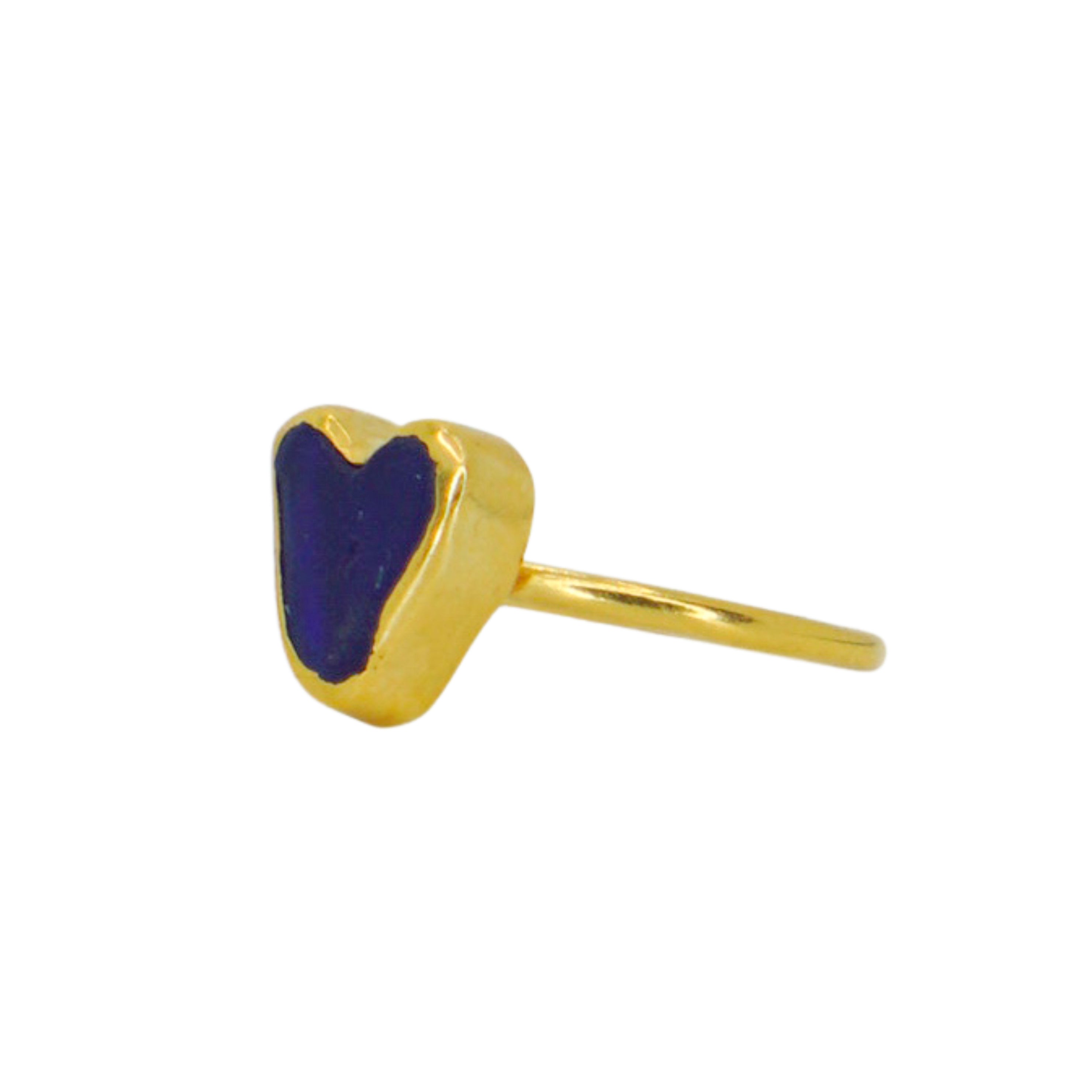 Blue Sea Glass Heart, Gold Vermeil - Size Q