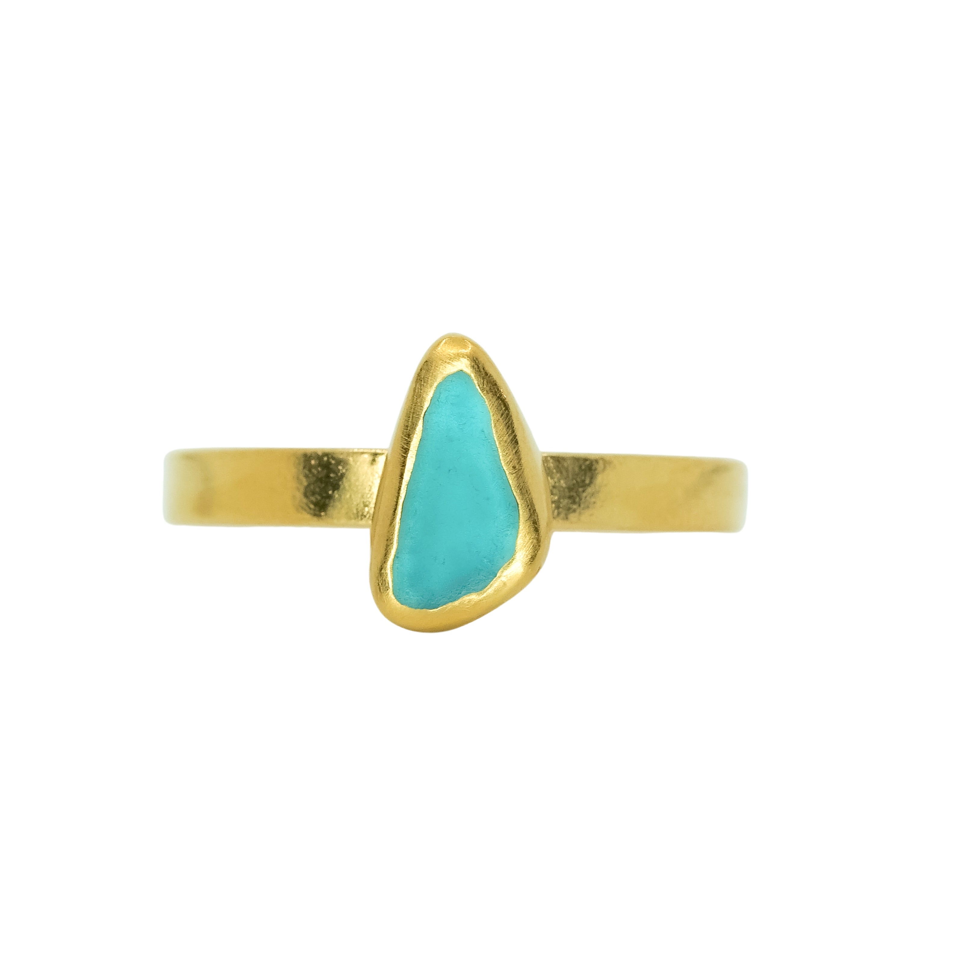 Blue Sea Glass Heart, Gold Vermeil - Size K