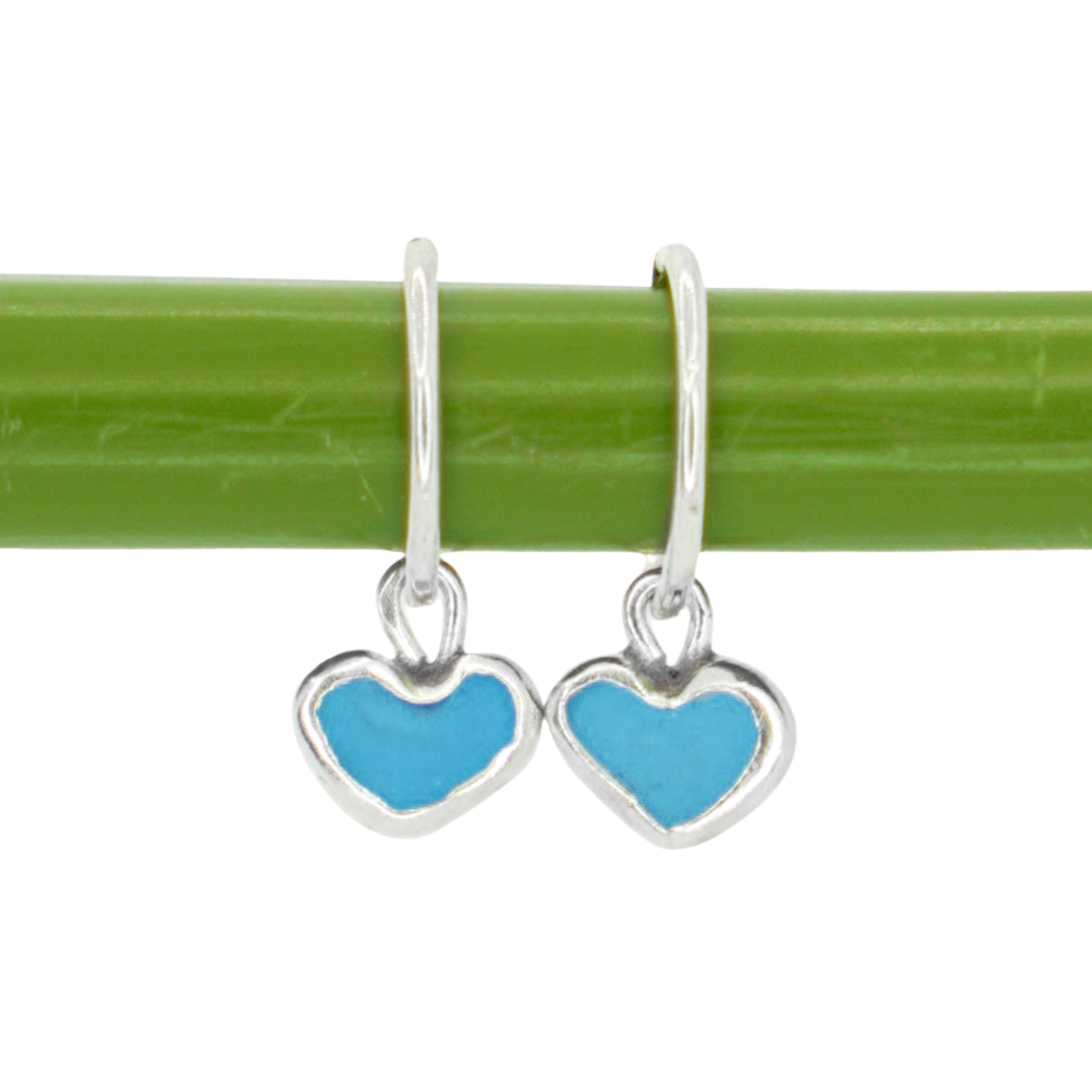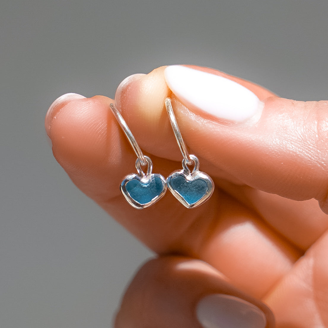 Blue Sea Glass Heart Hoops