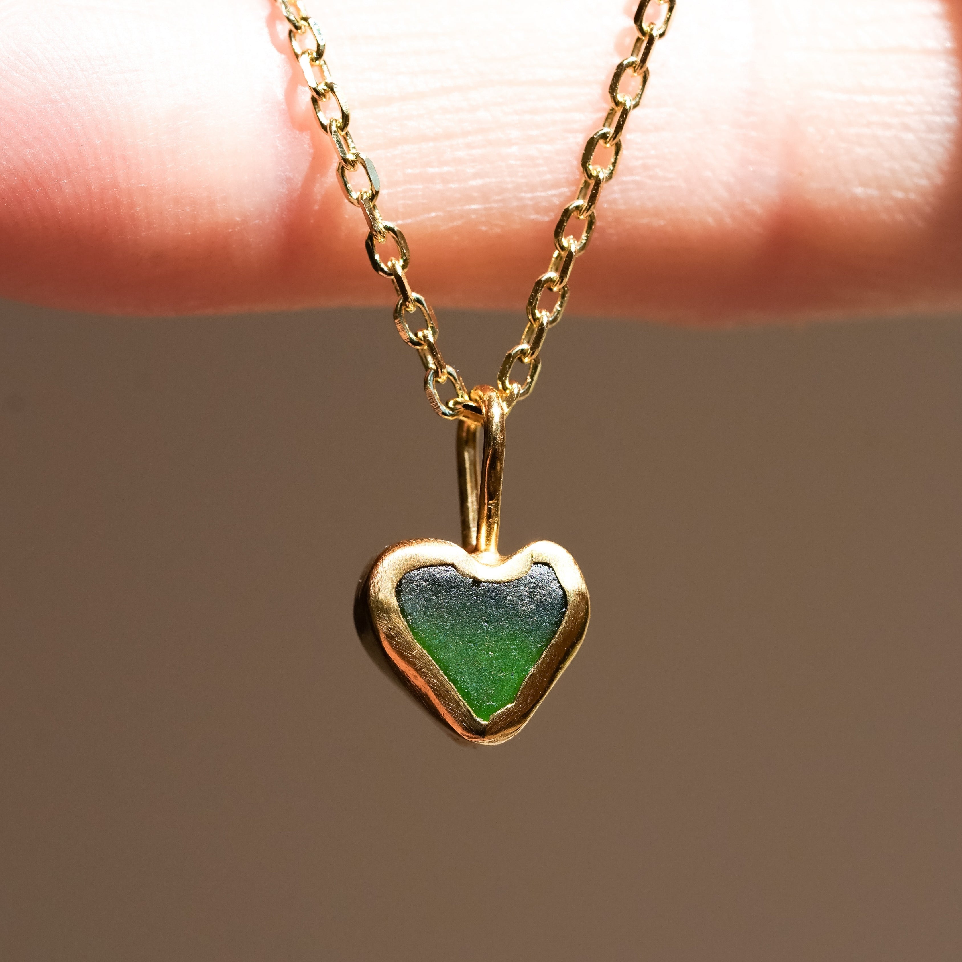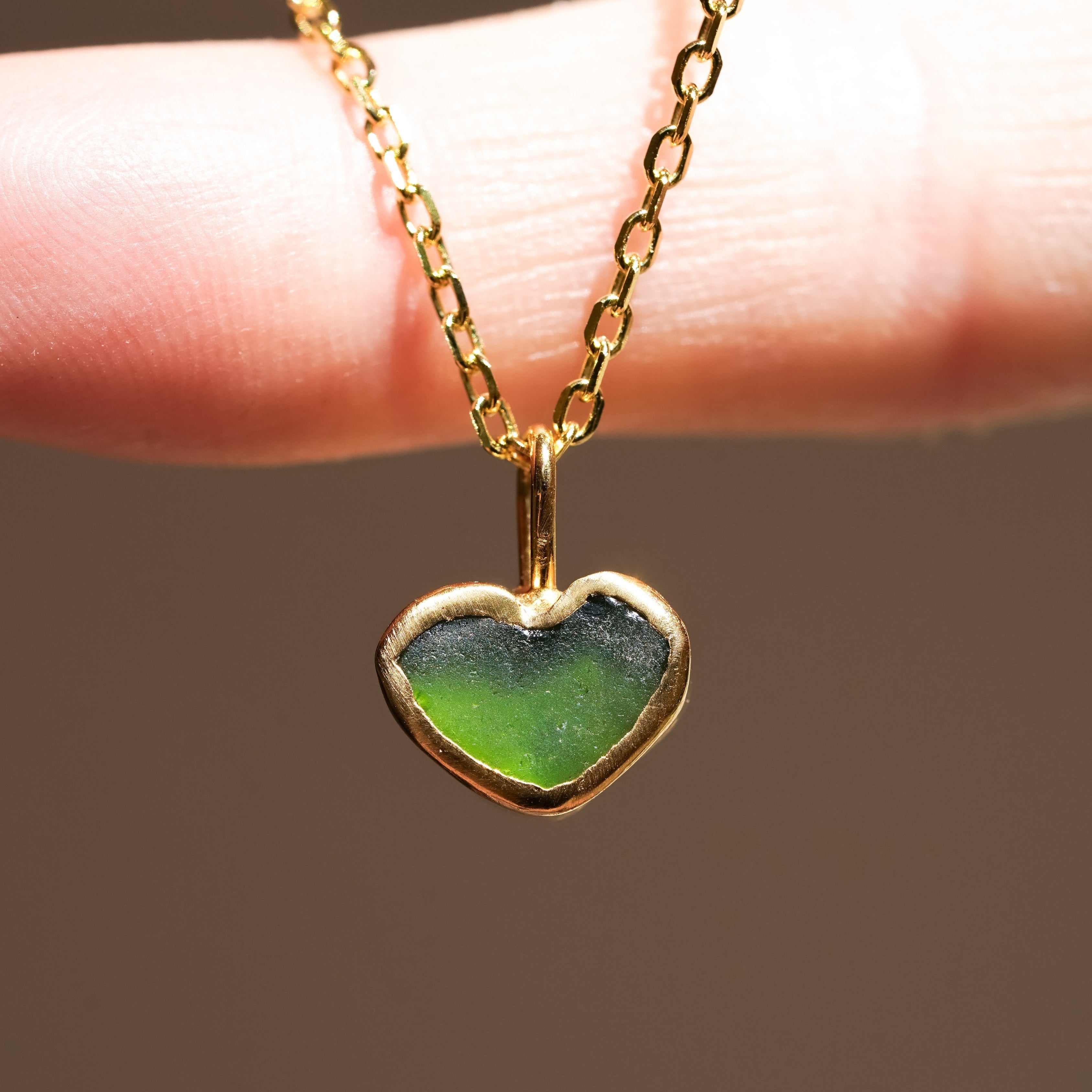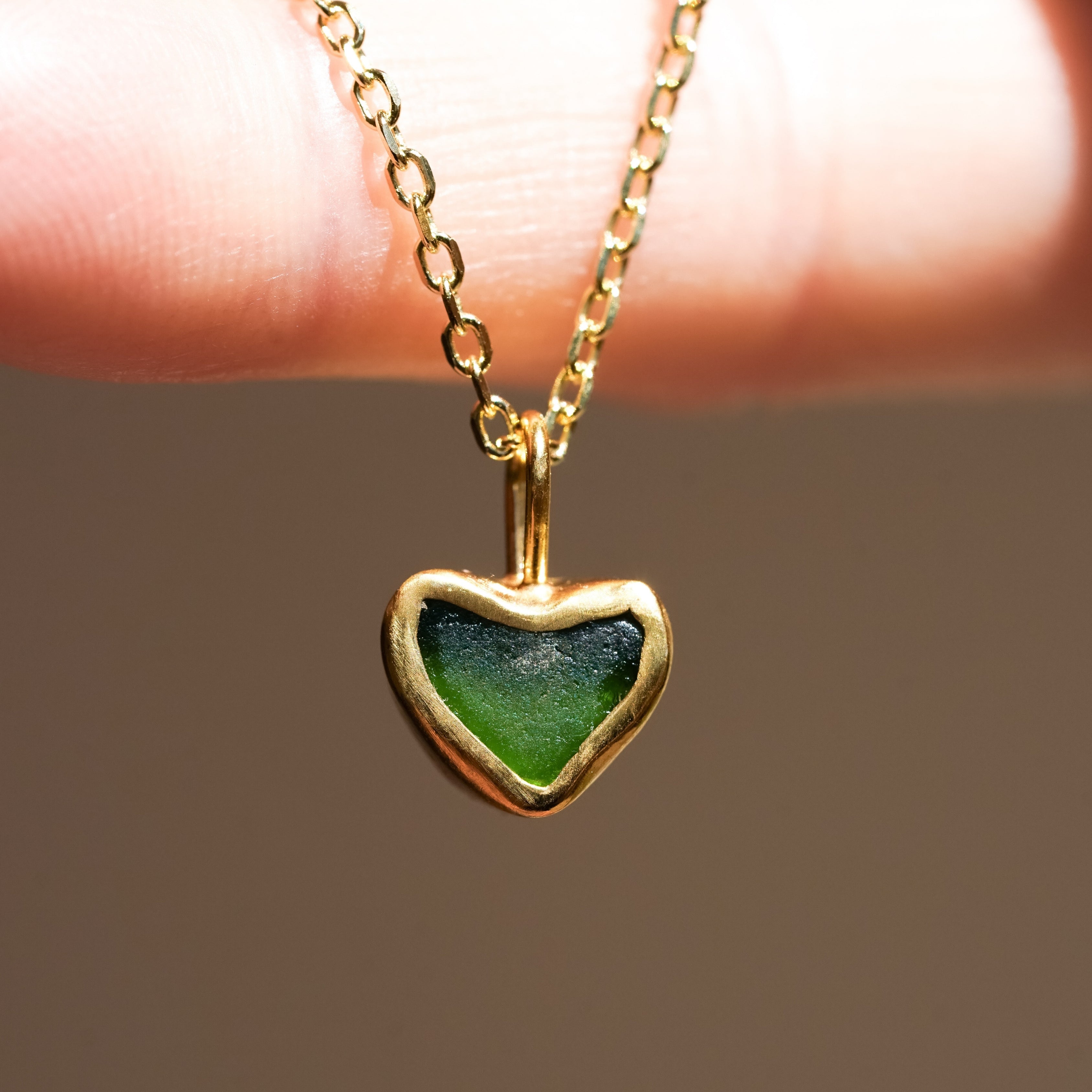 Green Sea Glass Heart Necklace, Gold Vermeil