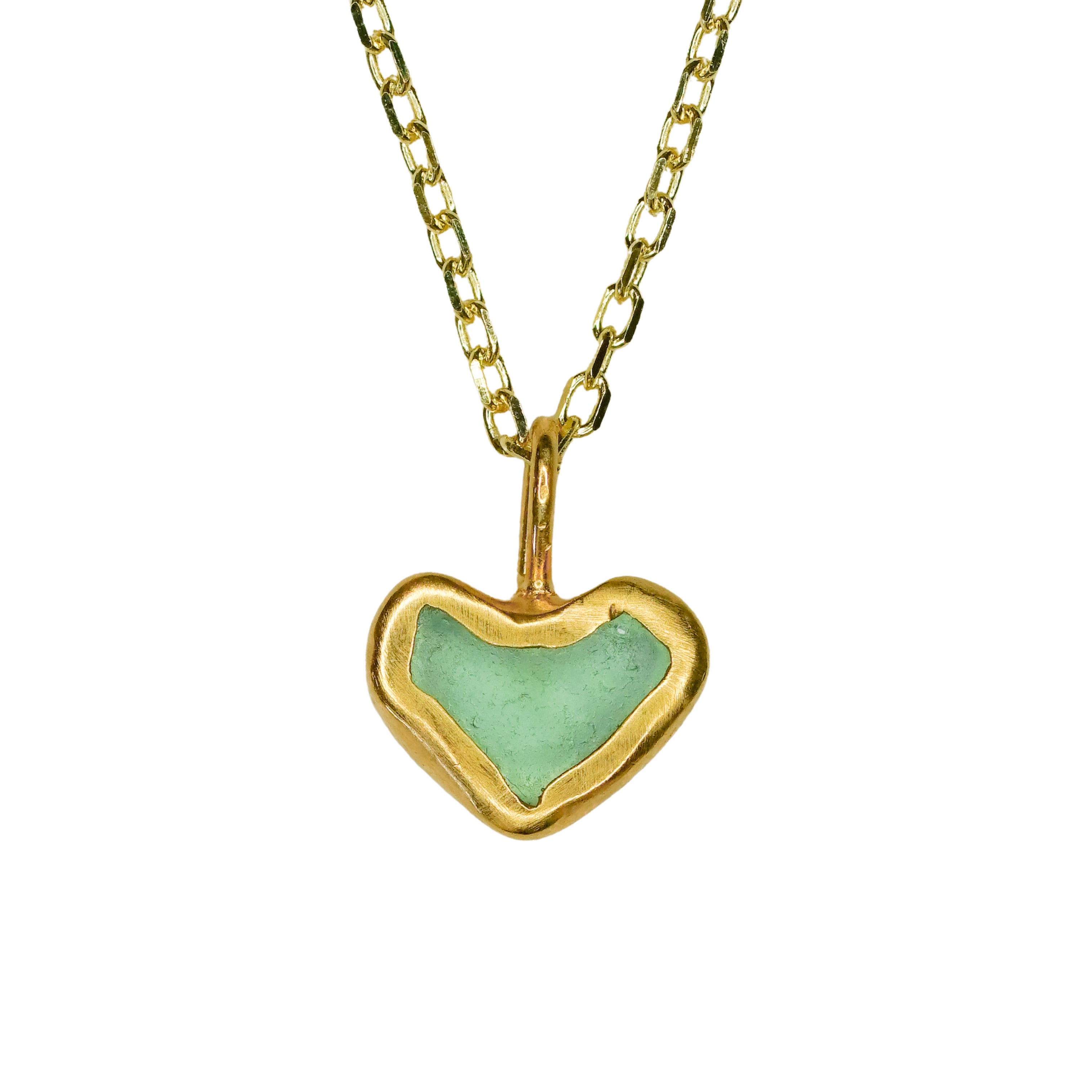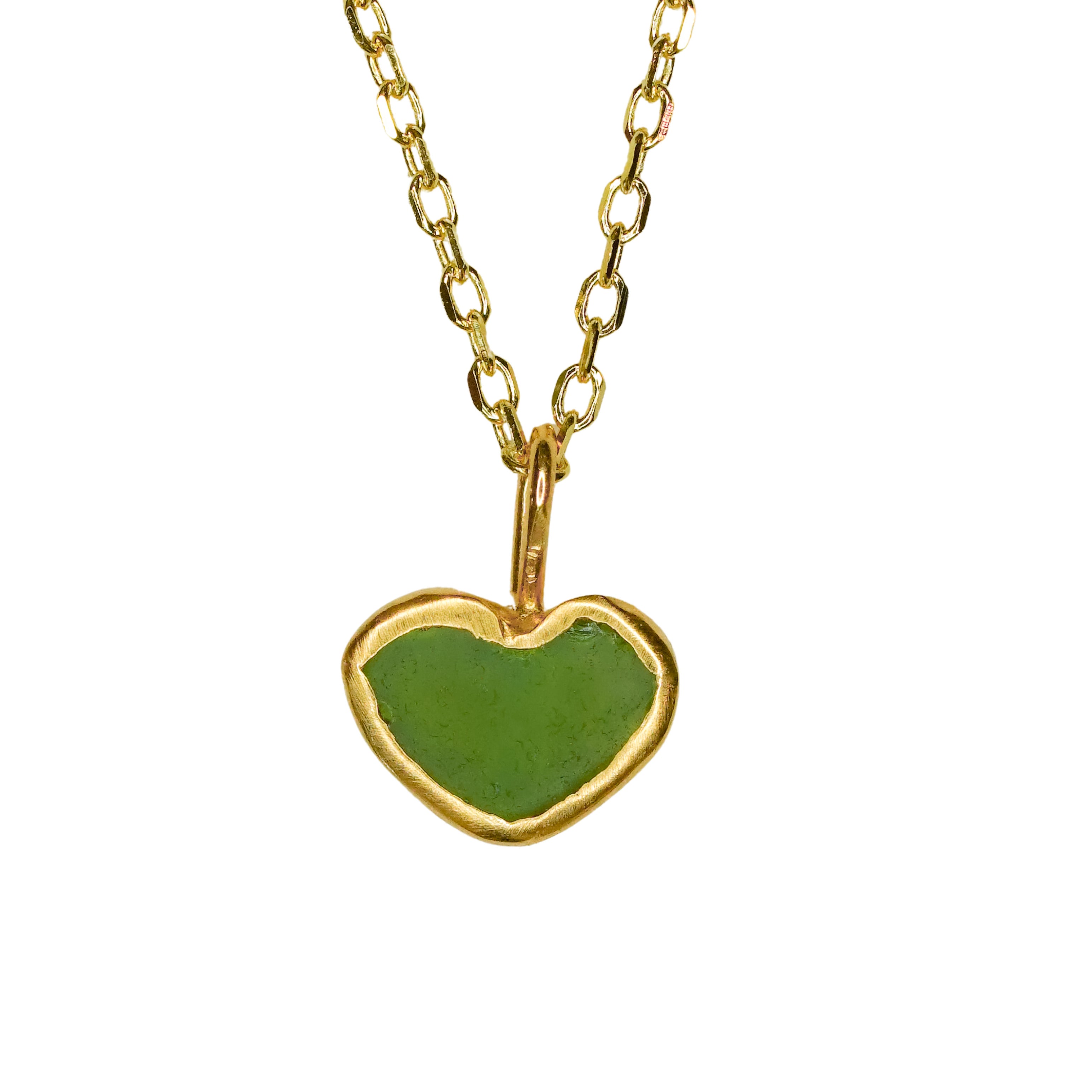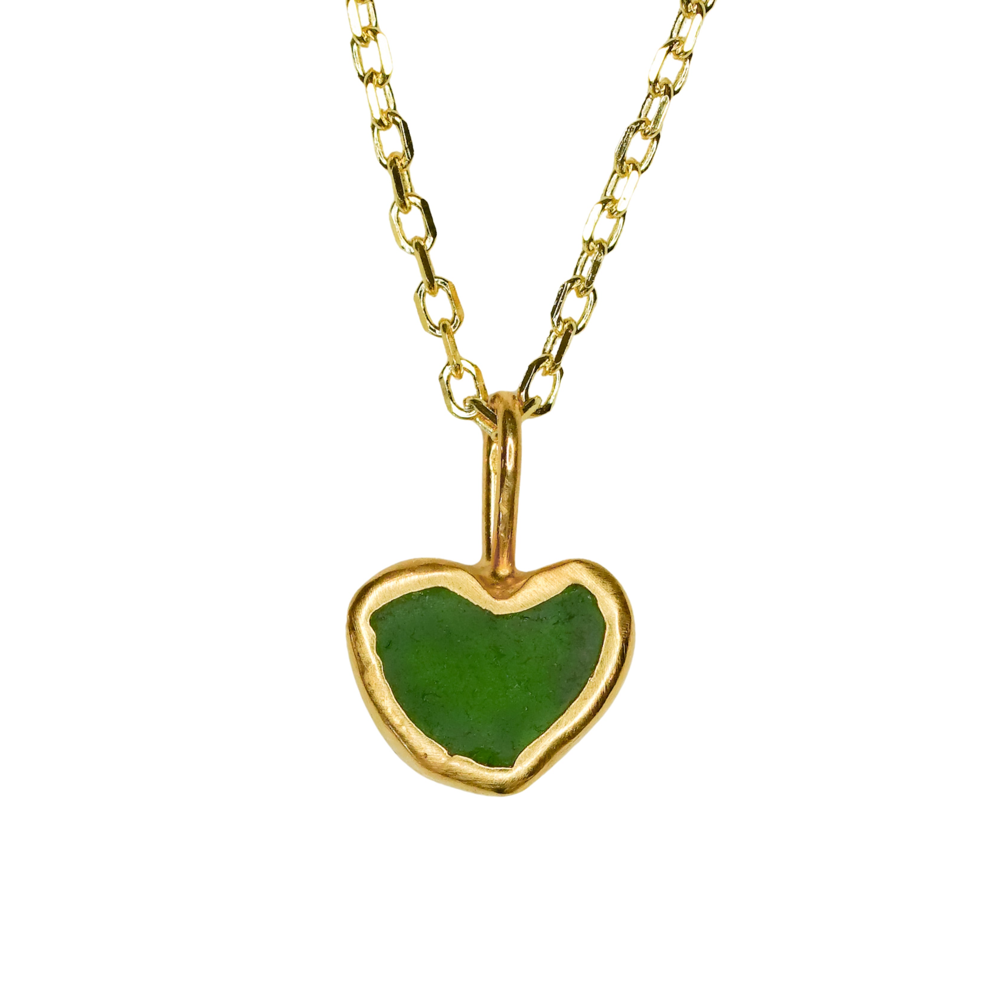 Green Sea Glass Heart Necklace, Gold Vermeil