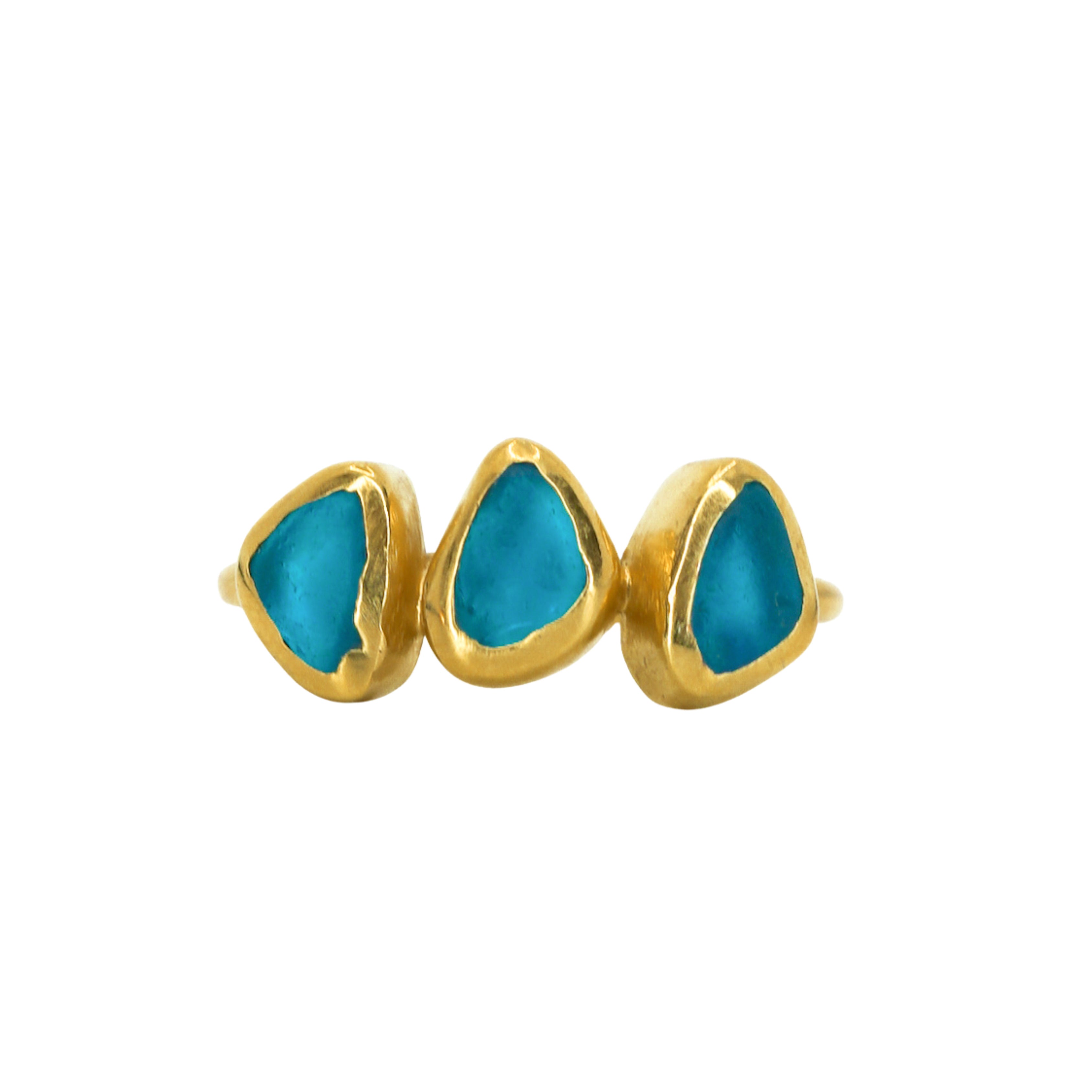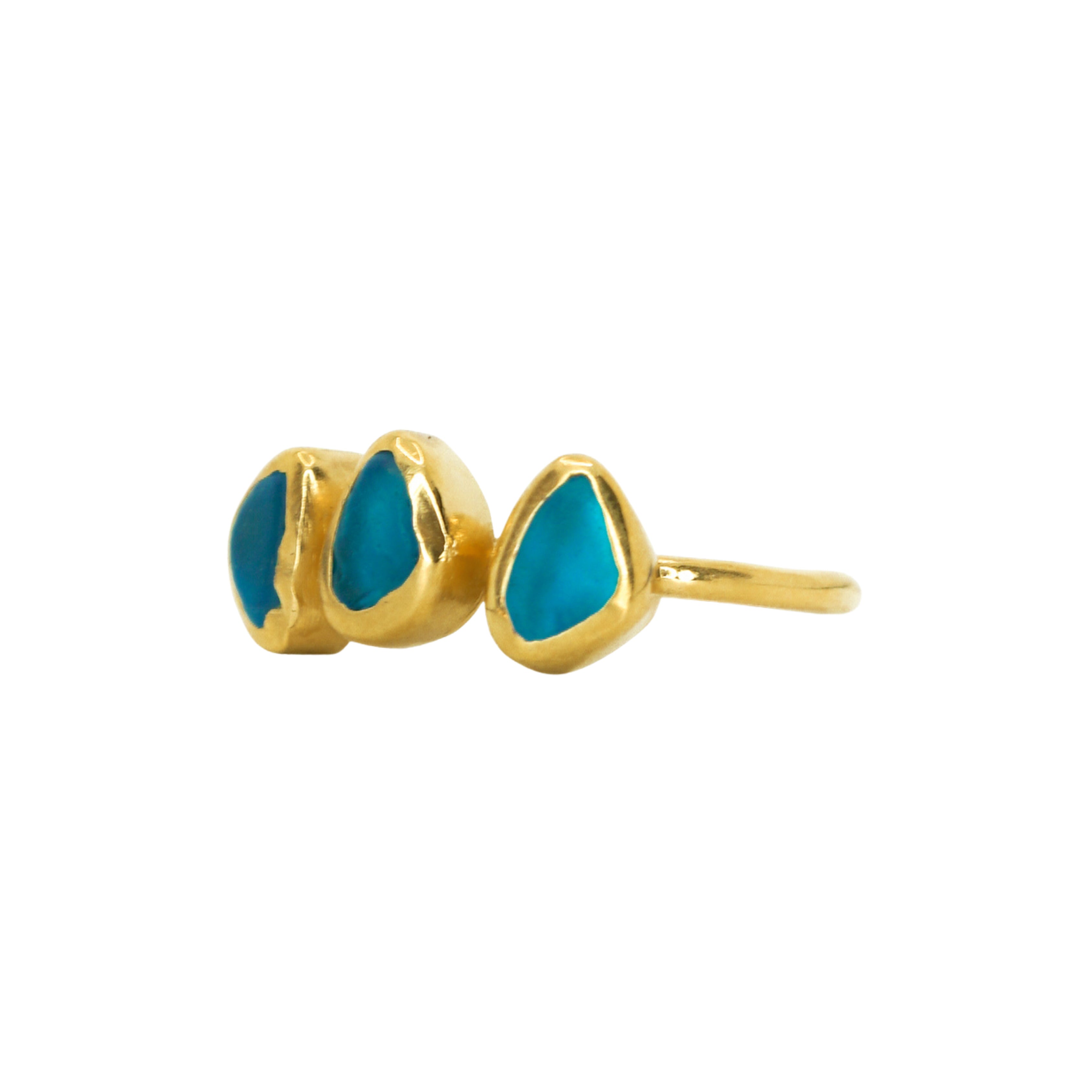 Blue Sea Glass, Gold Vermeil - Size M