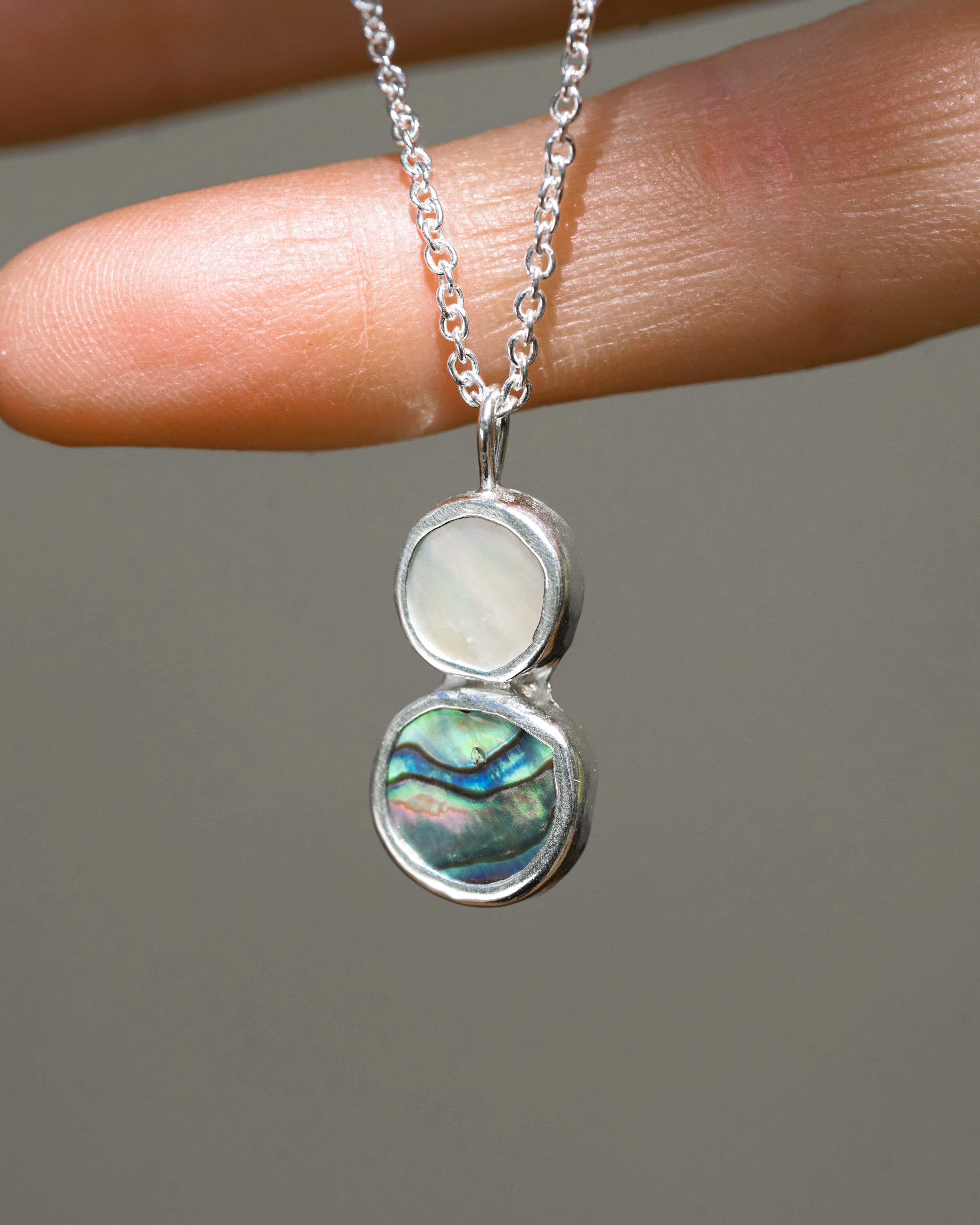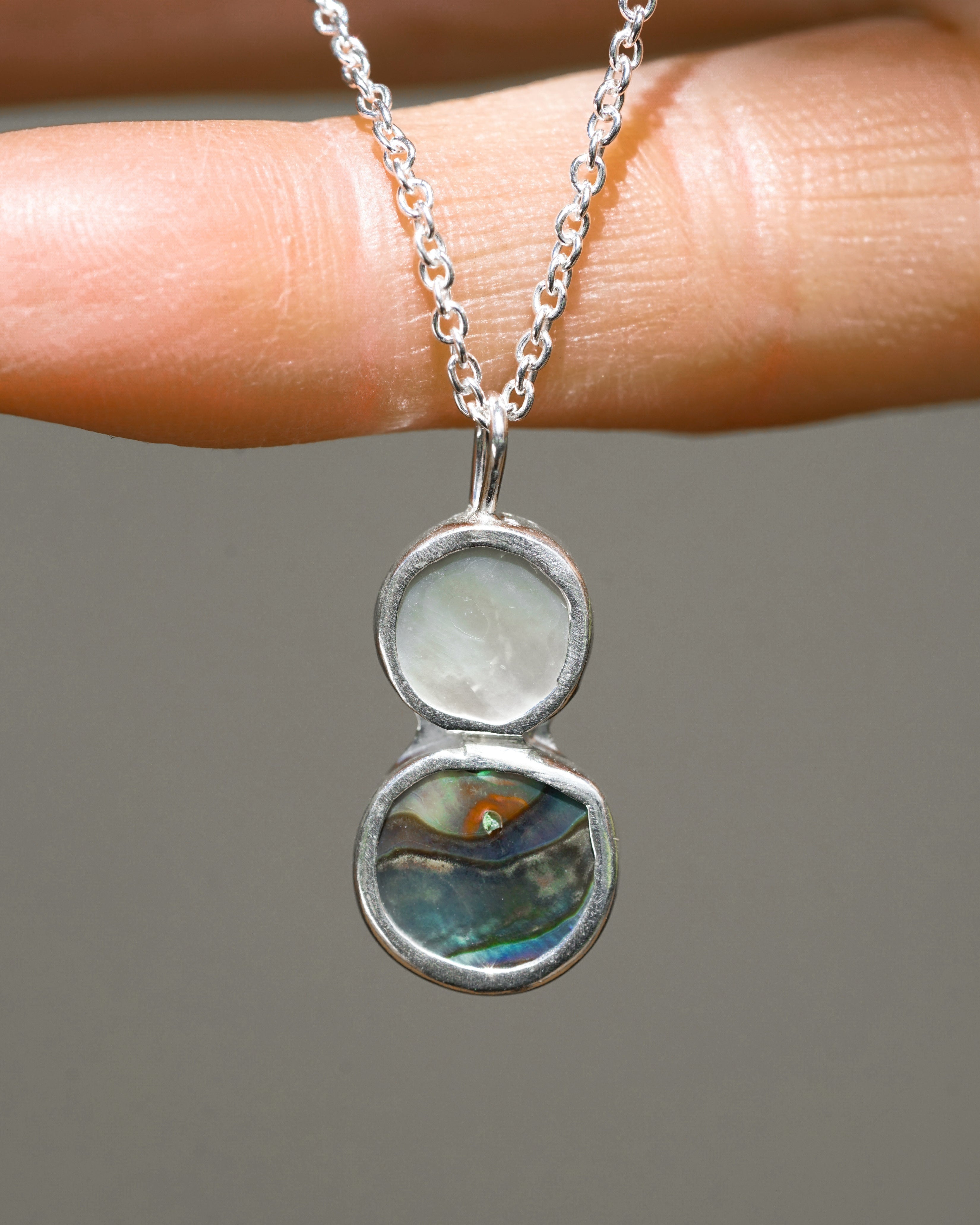 A Stunning duo of the ocean treasures - glowing abalone shell paired with a luminous freshwater pearl wrapped in sterling silver 🤍