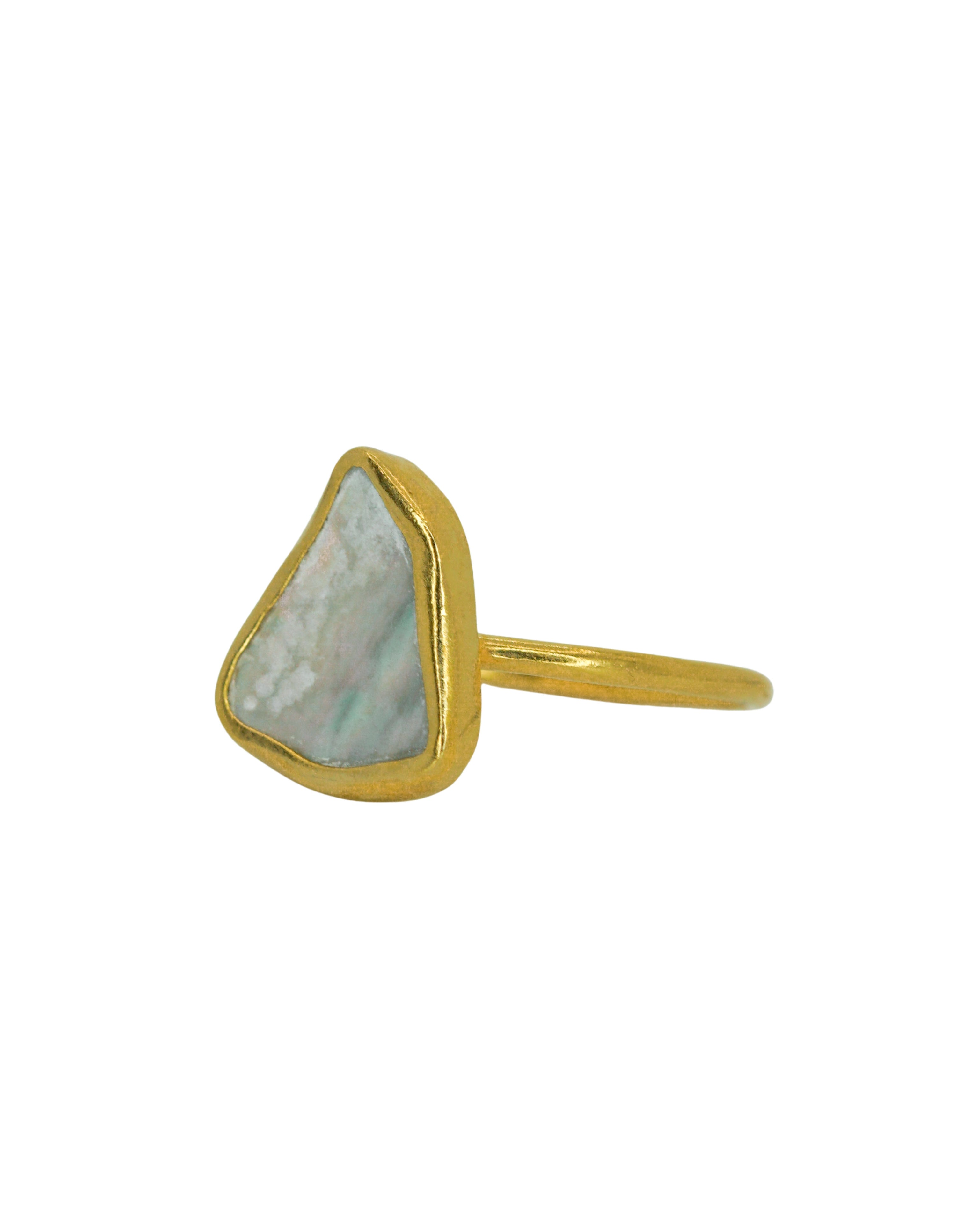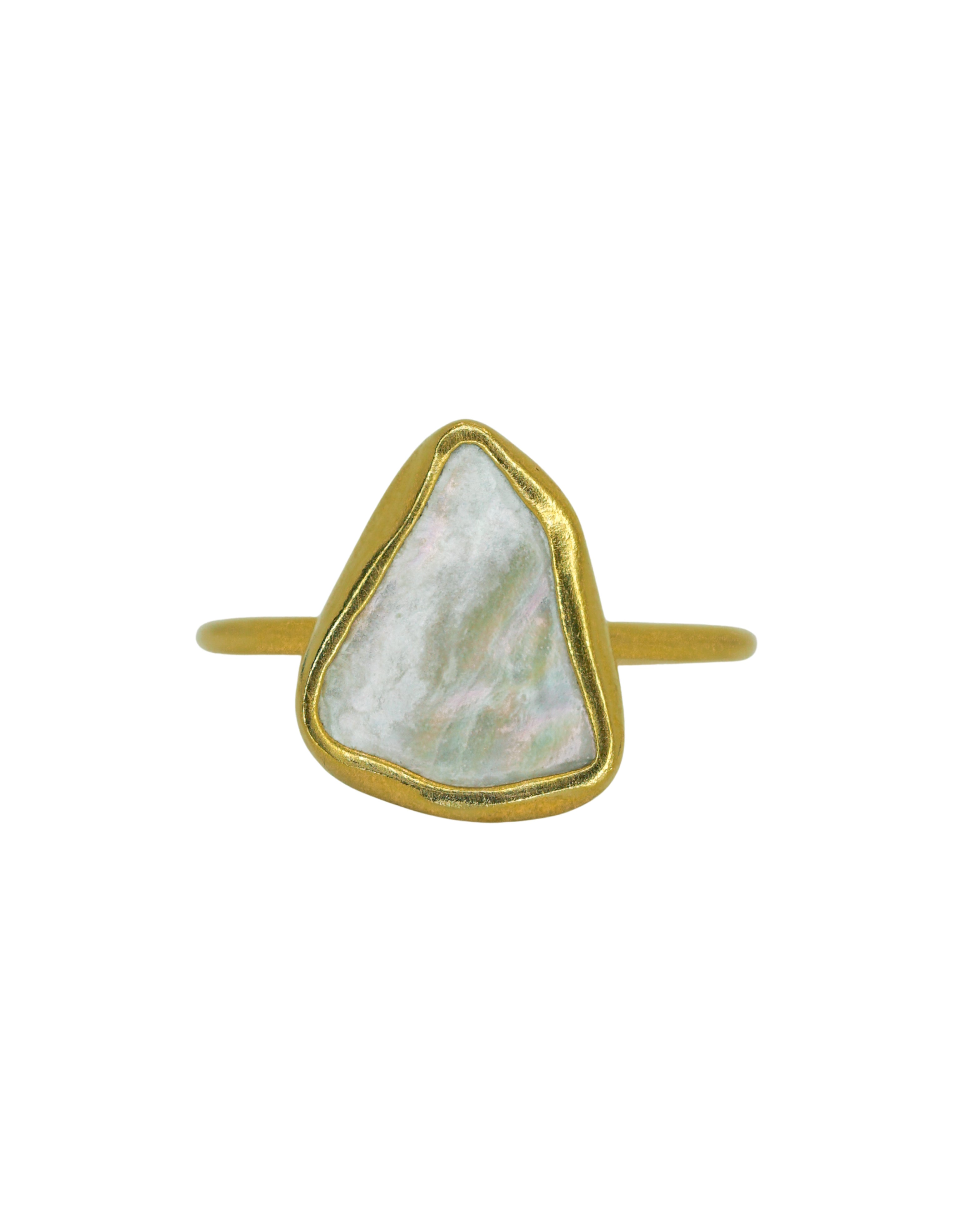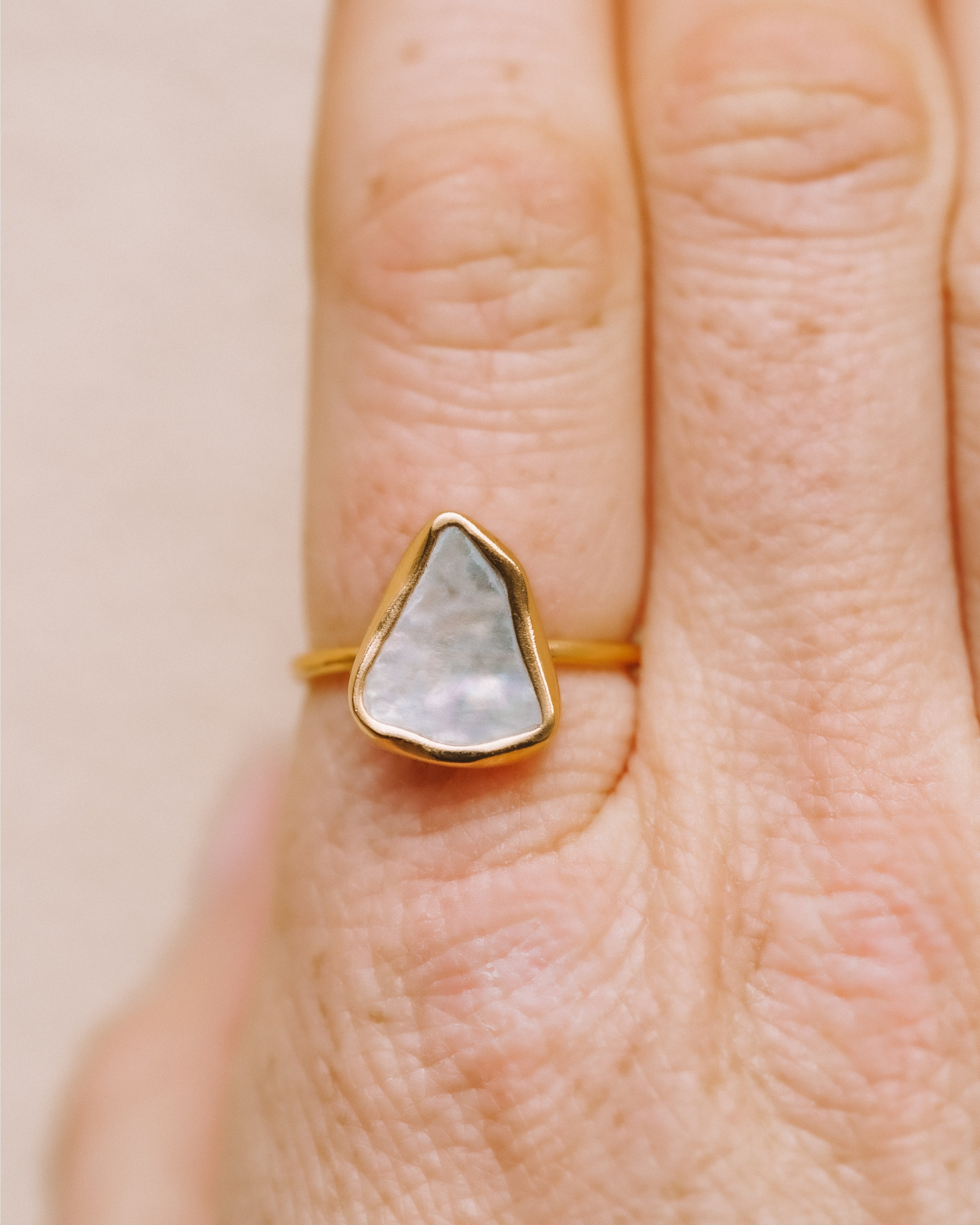 Natural Abalone Shell Ring - Handmade from 925 Sterling Silver plated with a 10 micron thick and hard layer of 24K (Gold Vermeil)