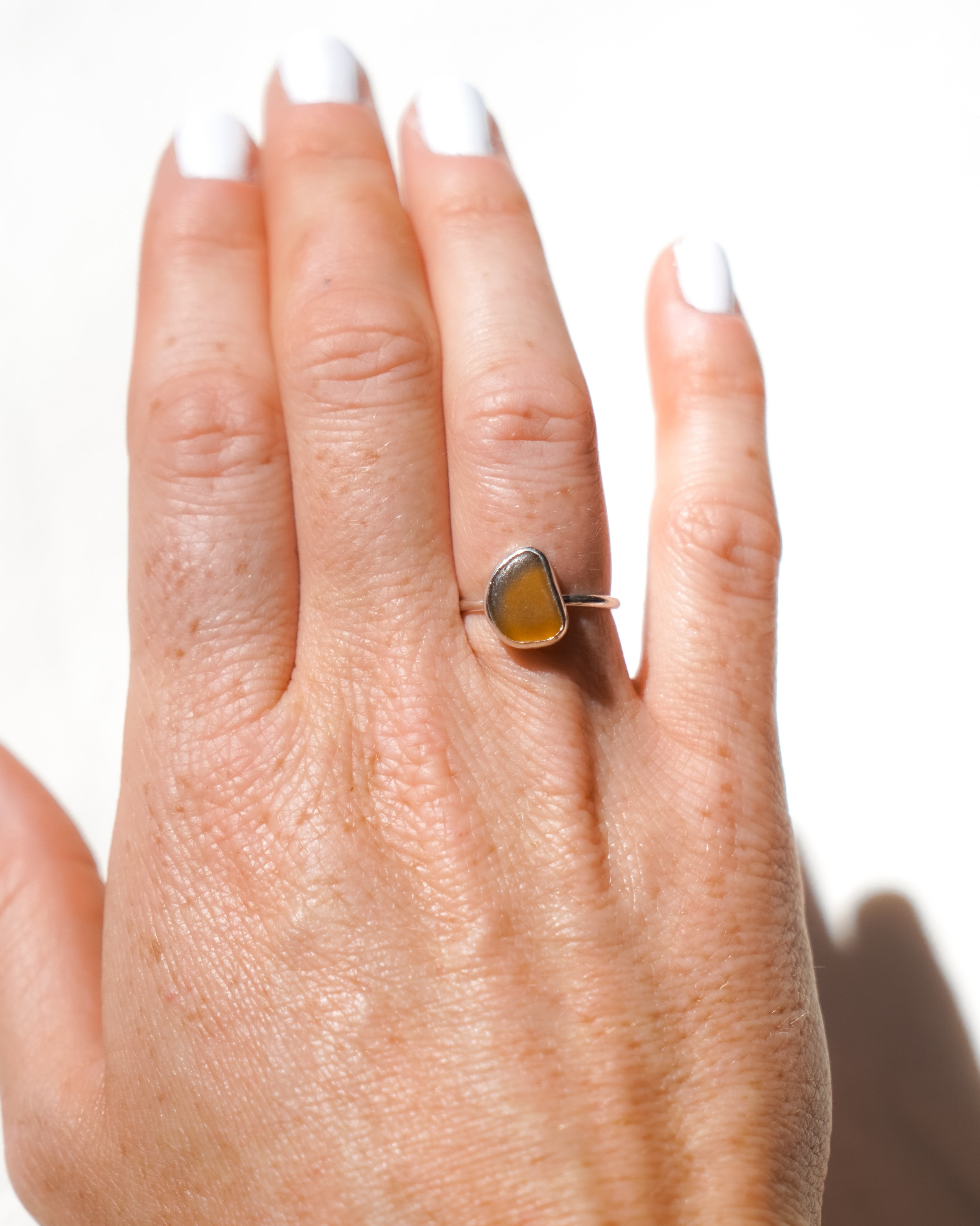 Amber Sea Glass Ring - Handmade from 925 Sterling Silver
