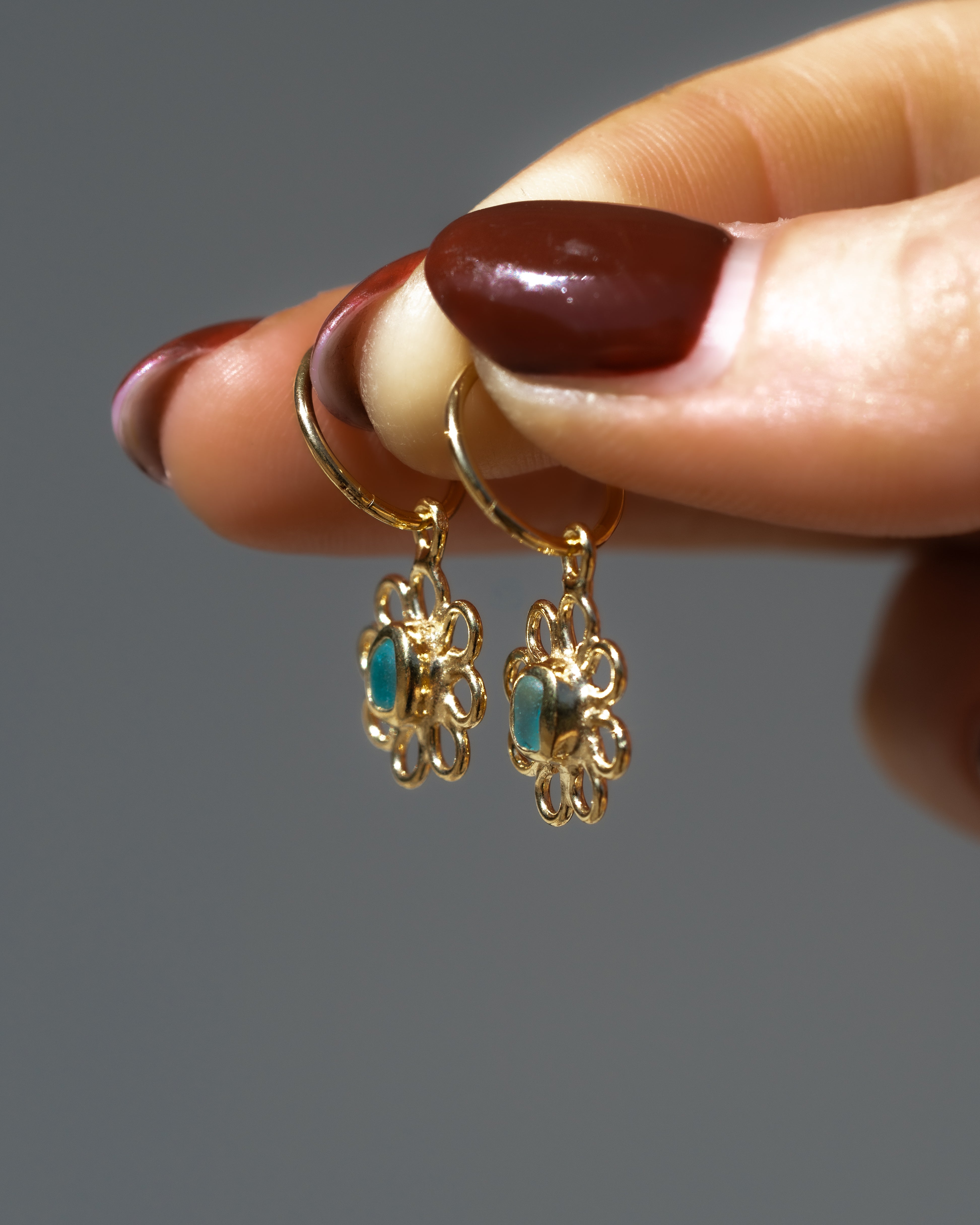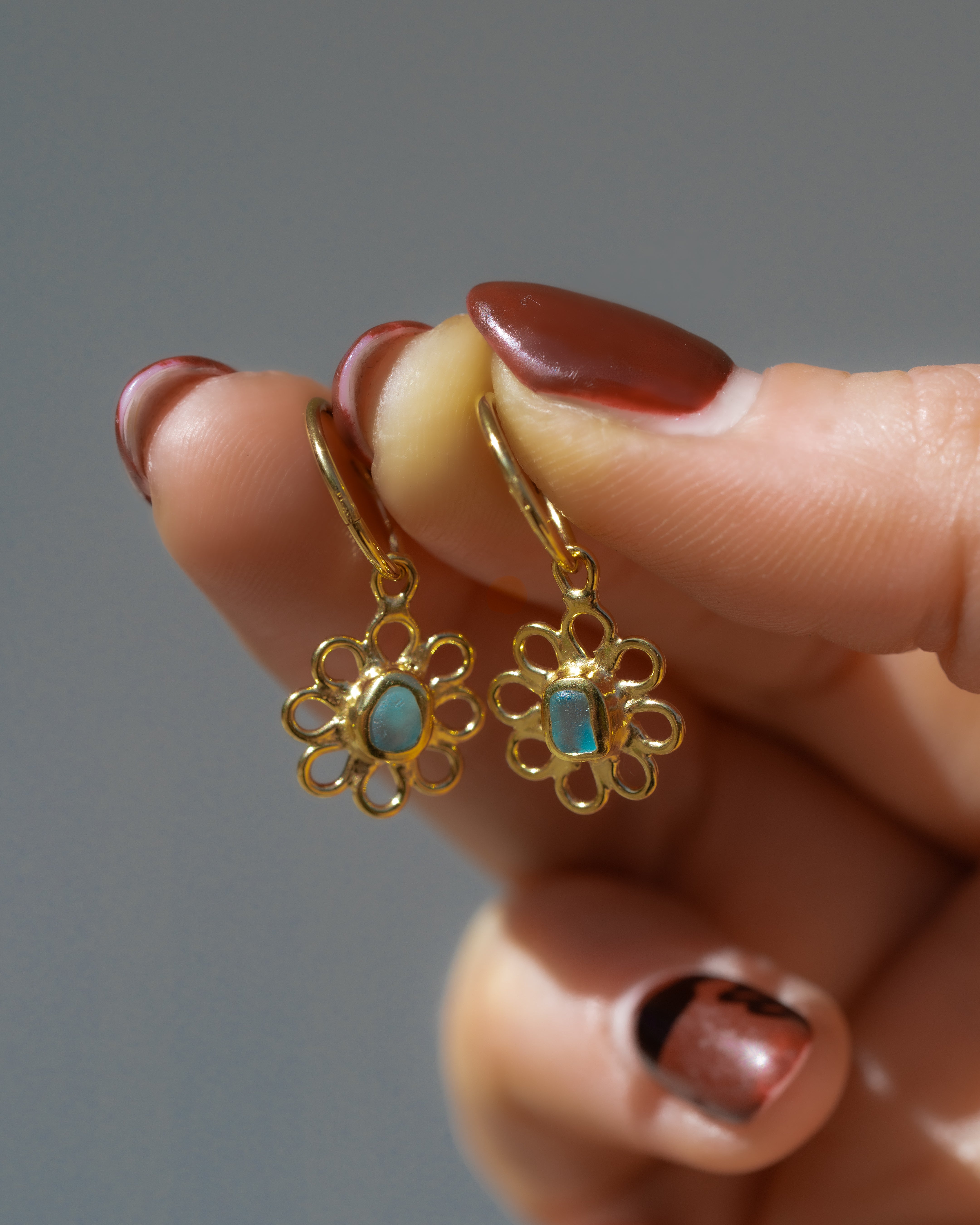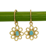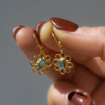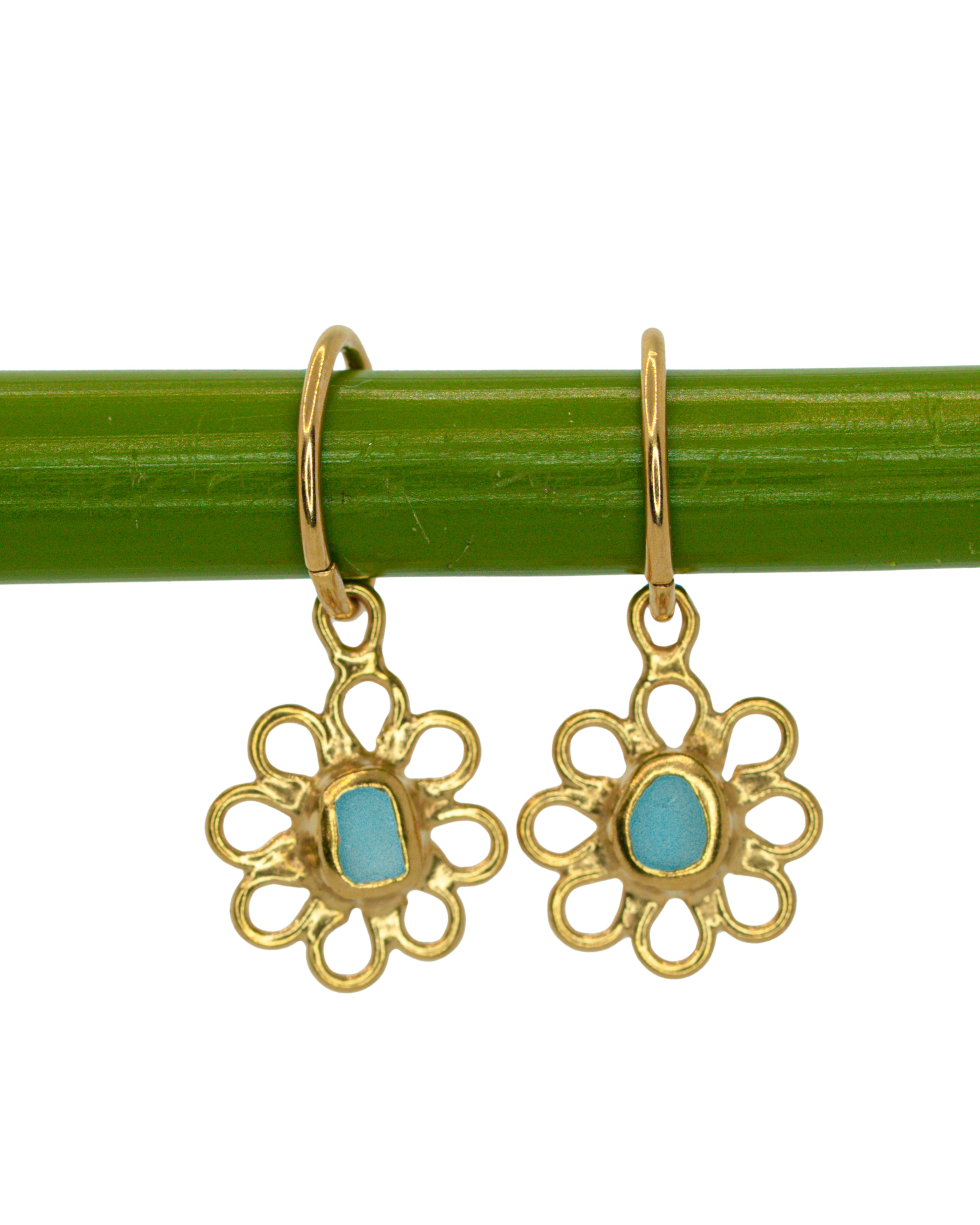 Blue Sea Glass Flower Hoops - Gold Vermeil