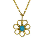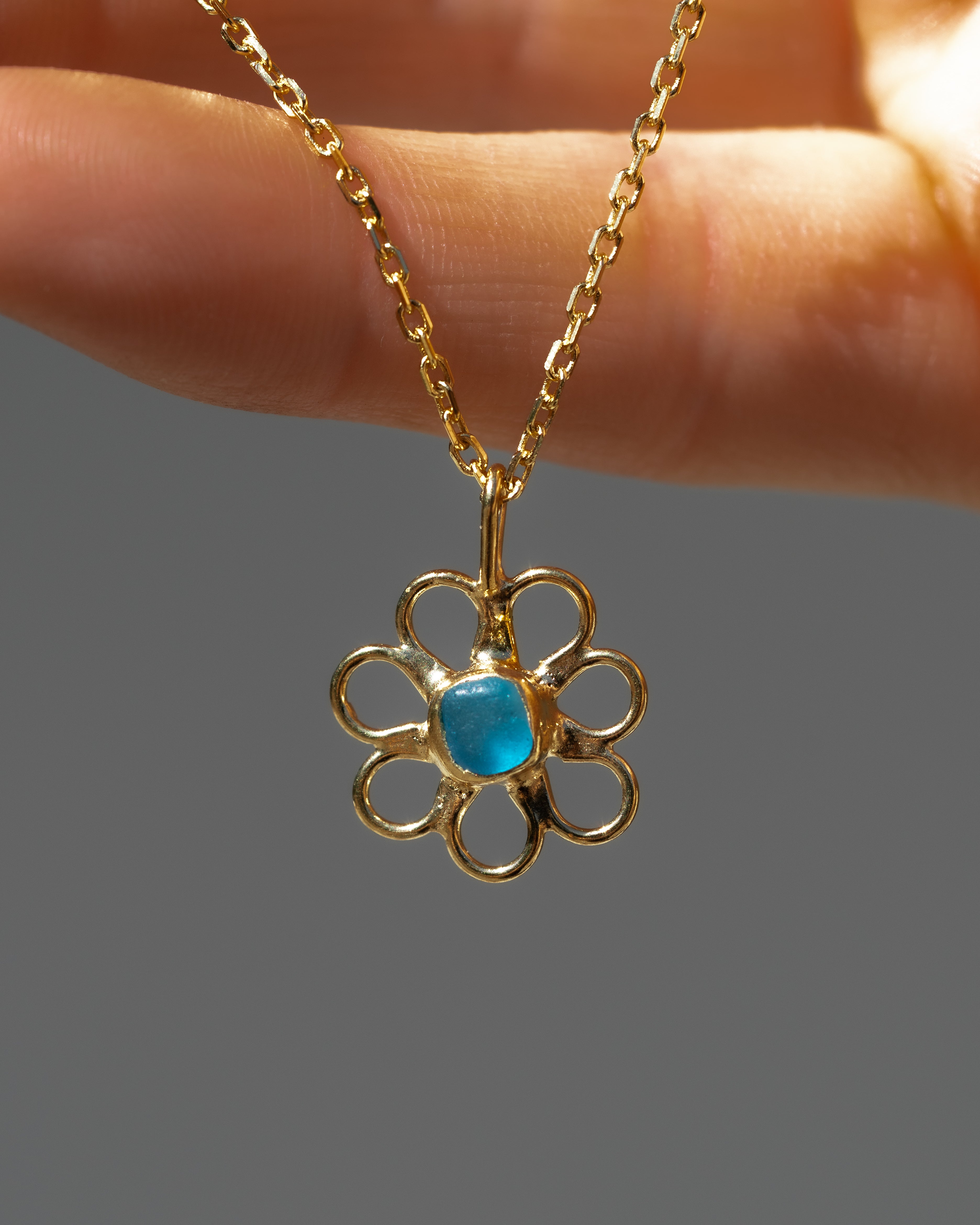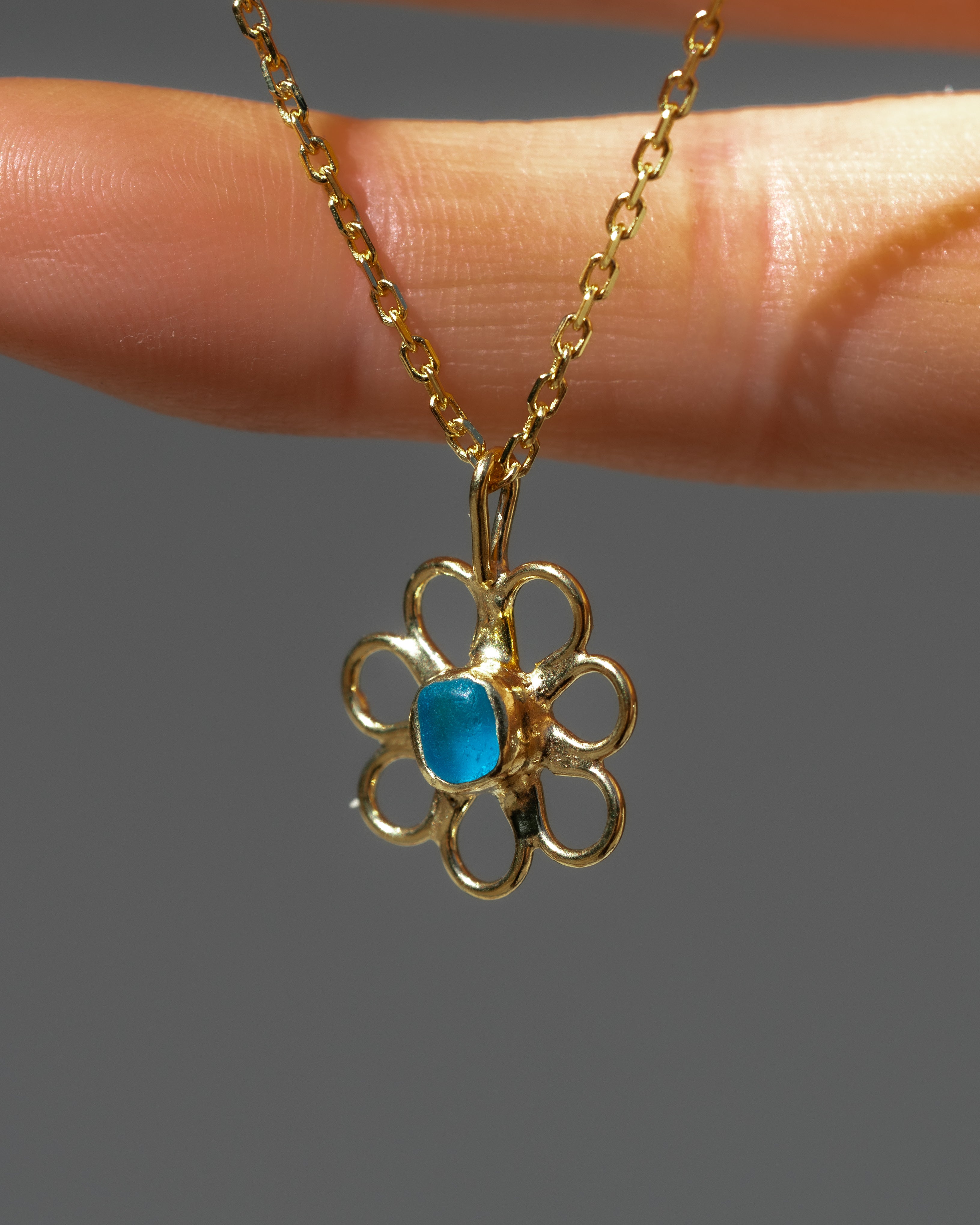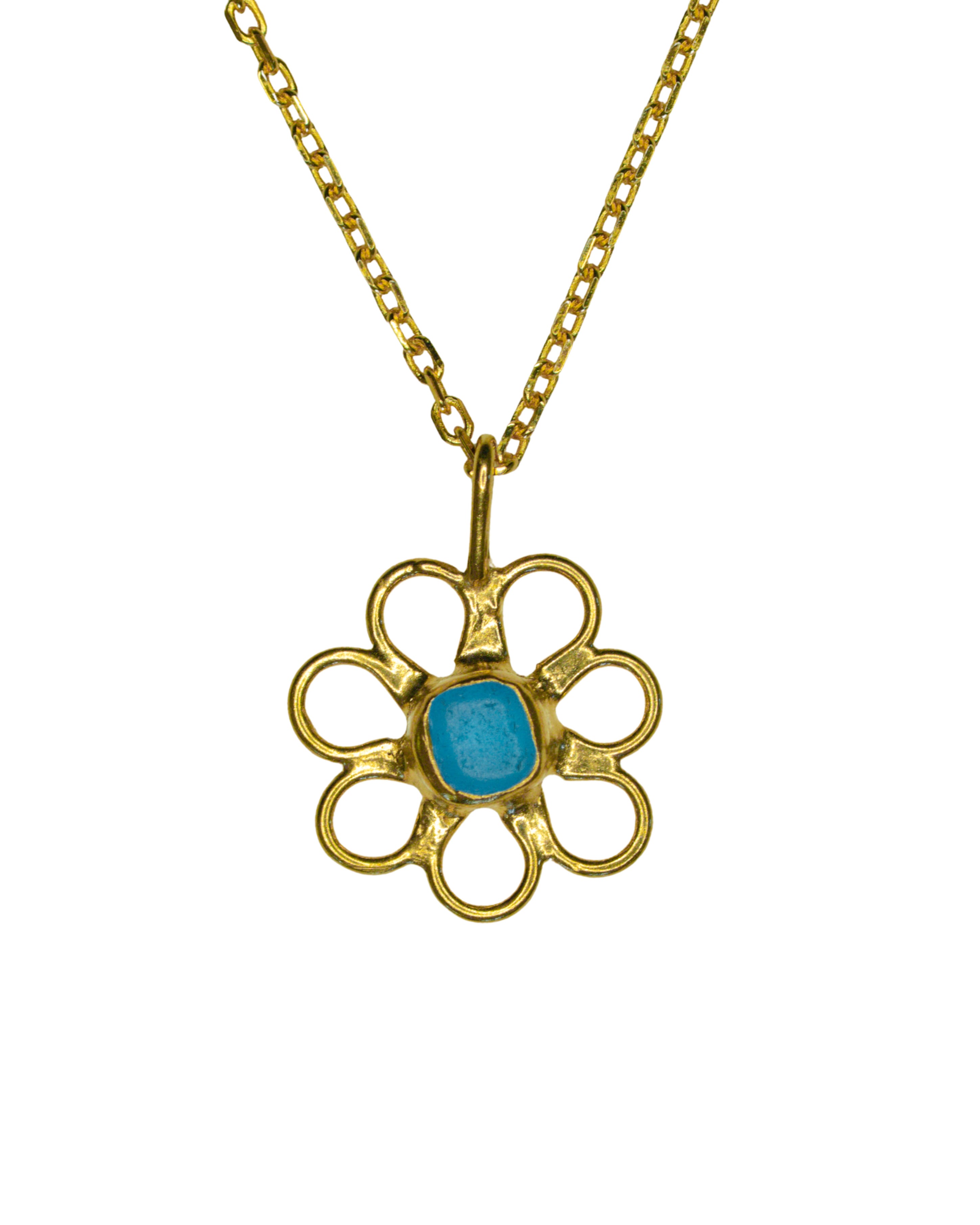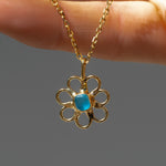 Blue Sea Glass Flower Necklace - Gold Vermeil