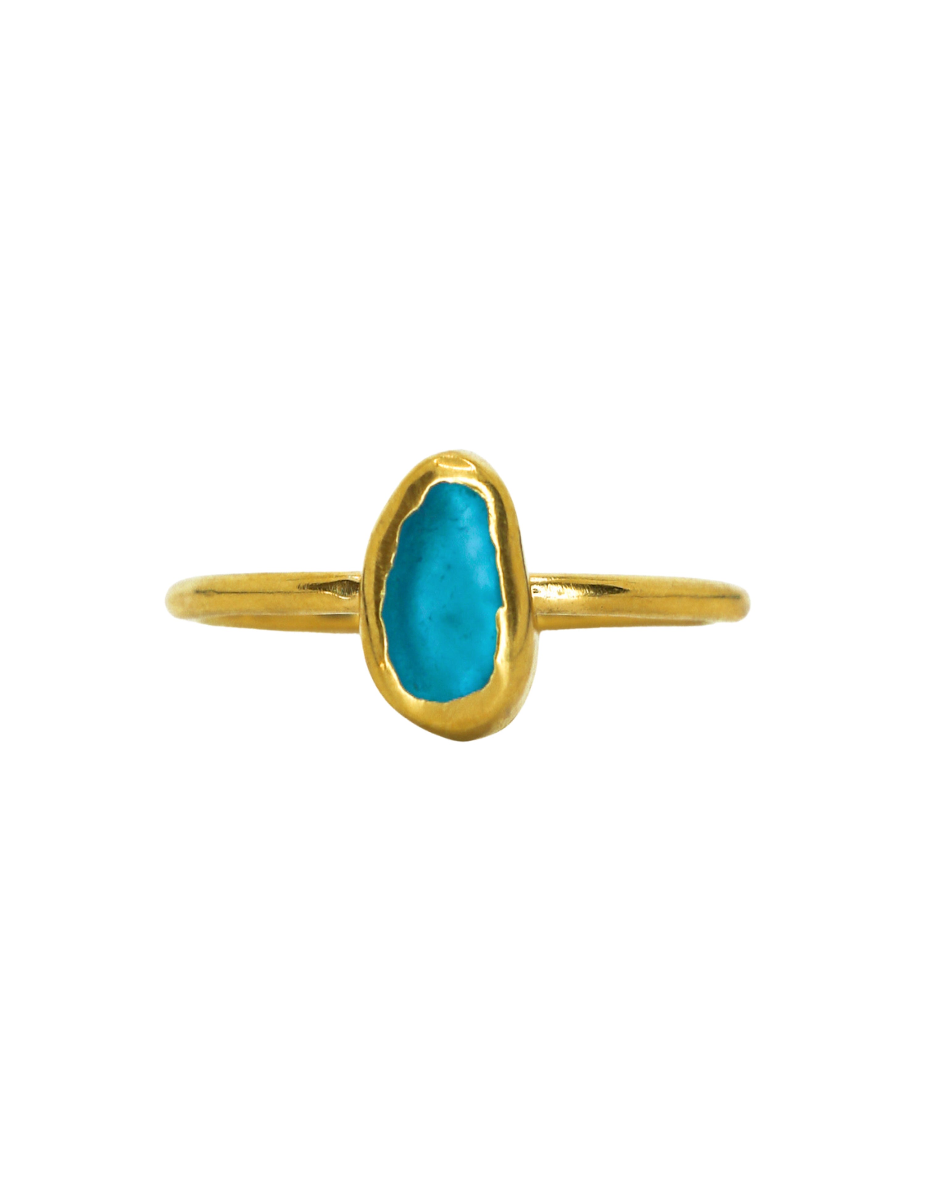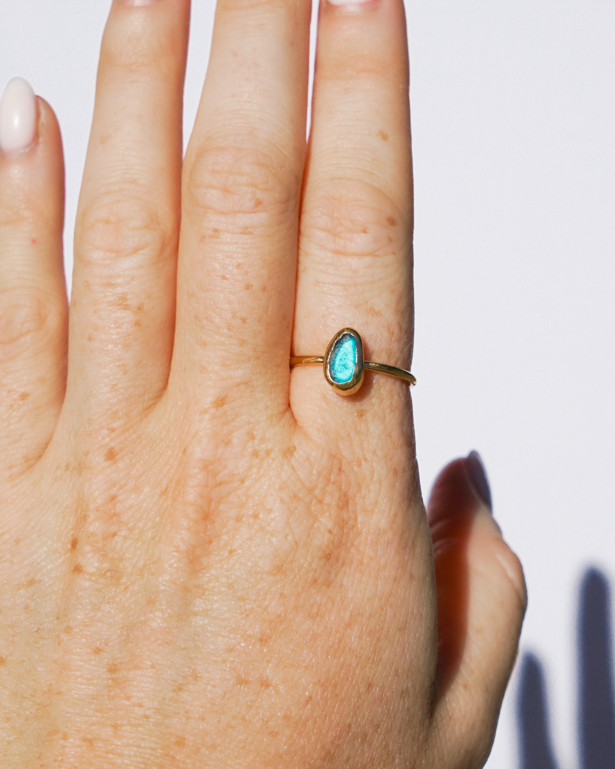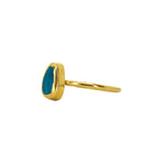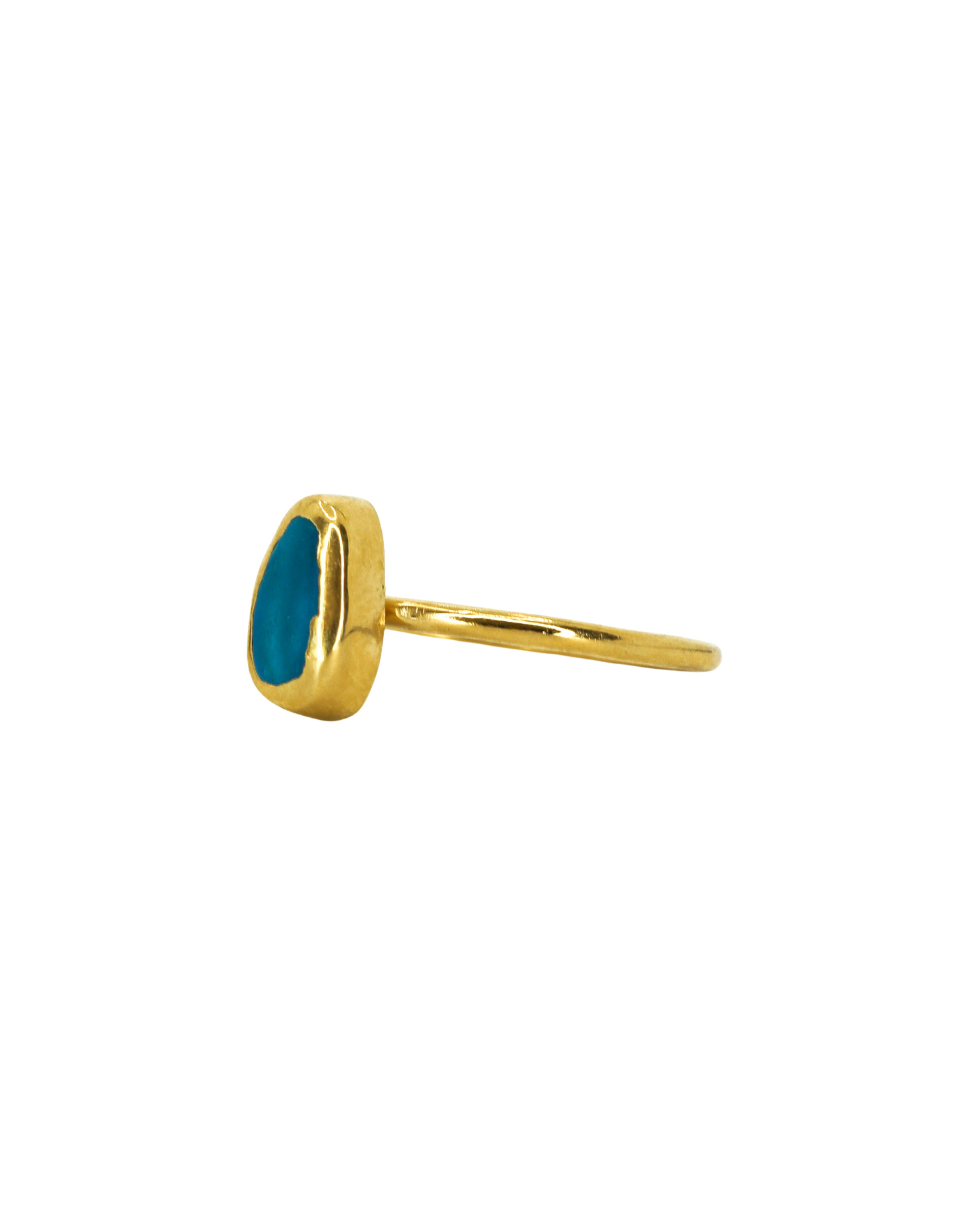 Blue Sea Glass Ring - Handmade from 925 Sterling Silver plated with a 10 micron thick and hard layer of 24K (Gold Vermeil)