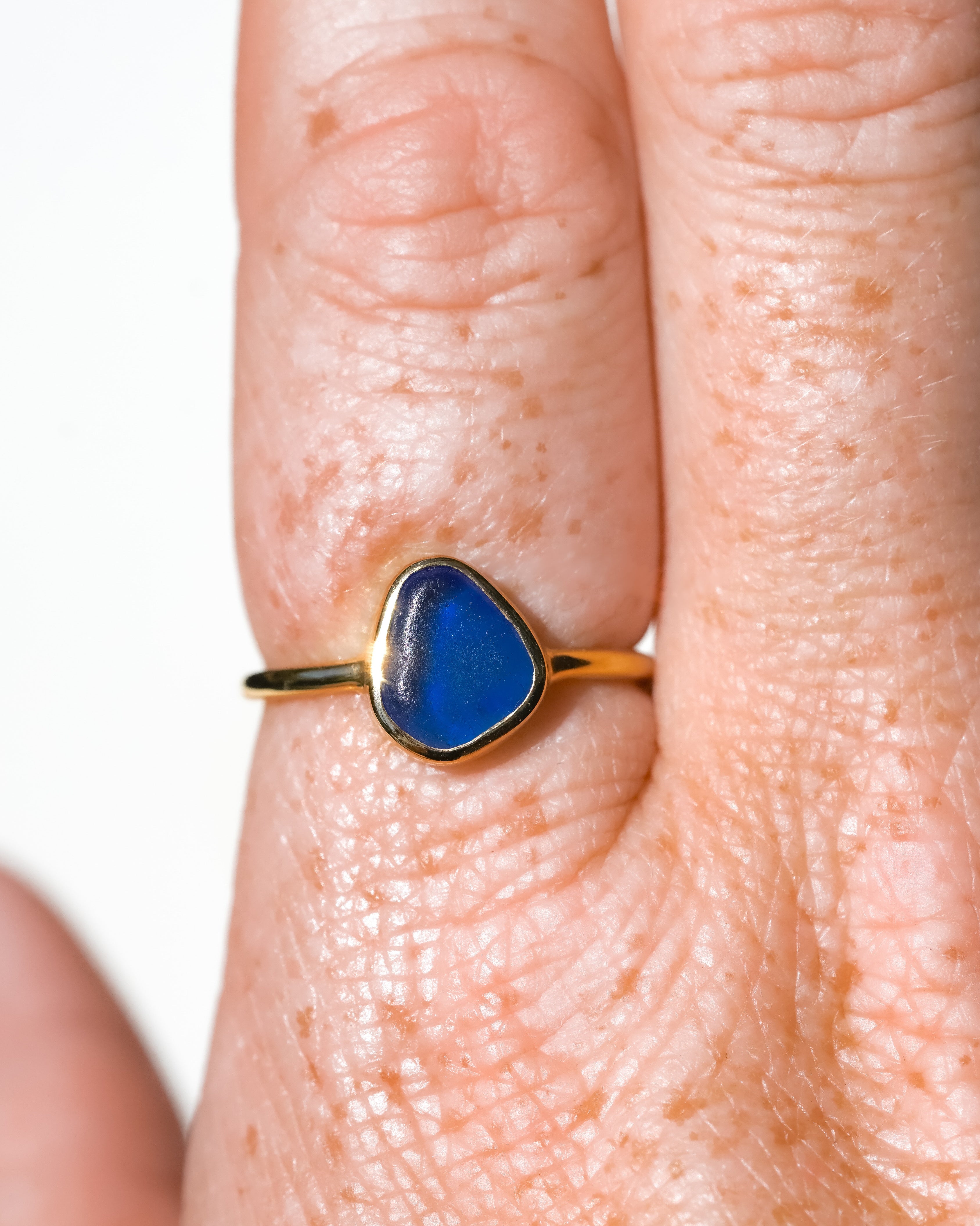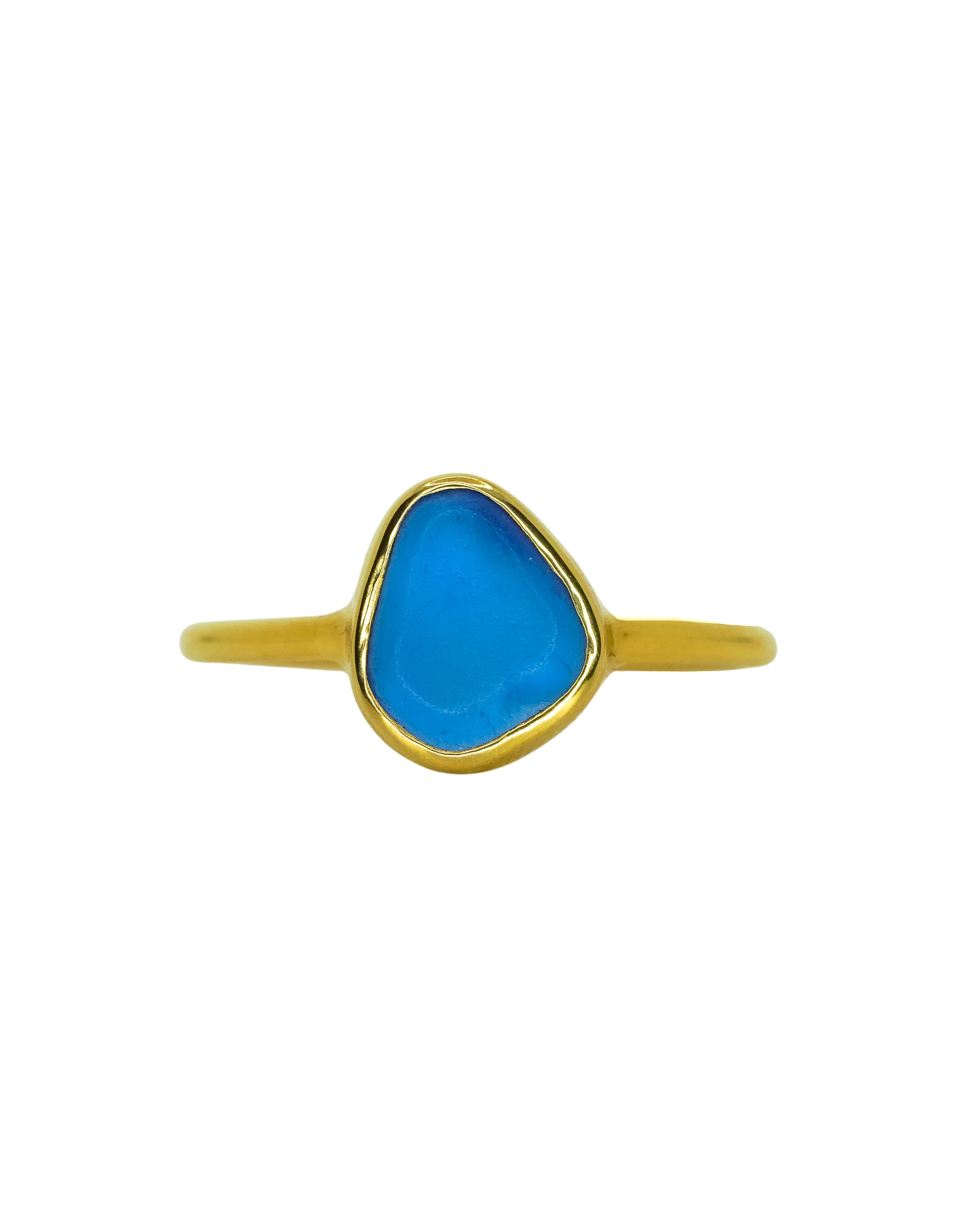 Blue Sea Glass, Gold Vermeil - Size N 1/2