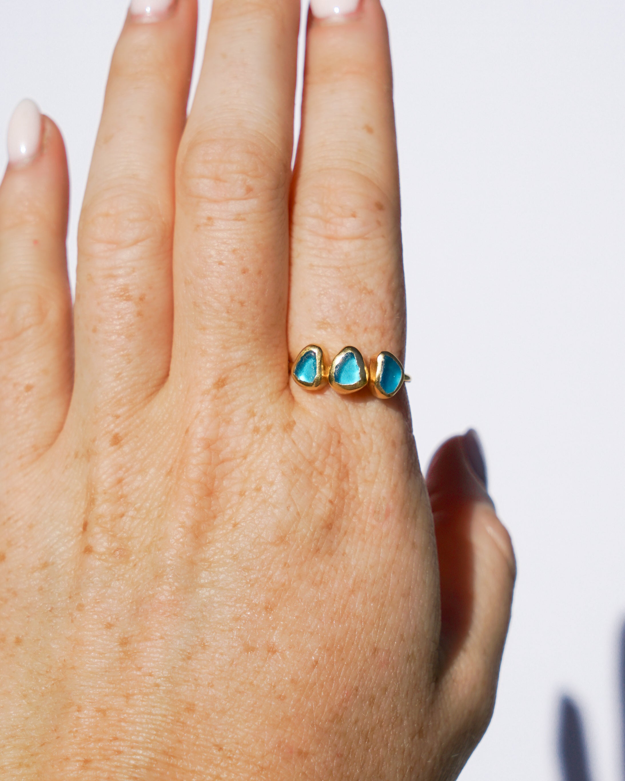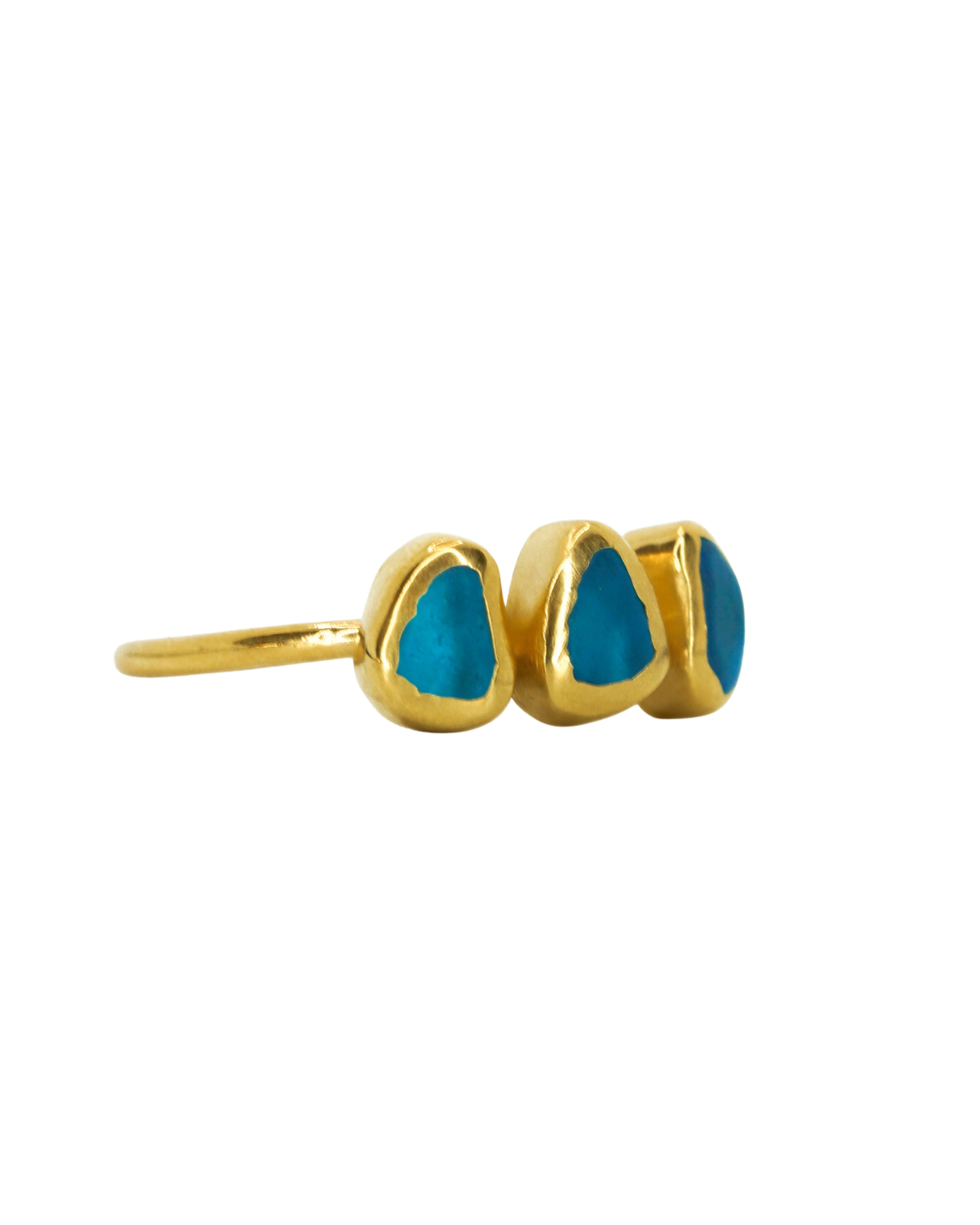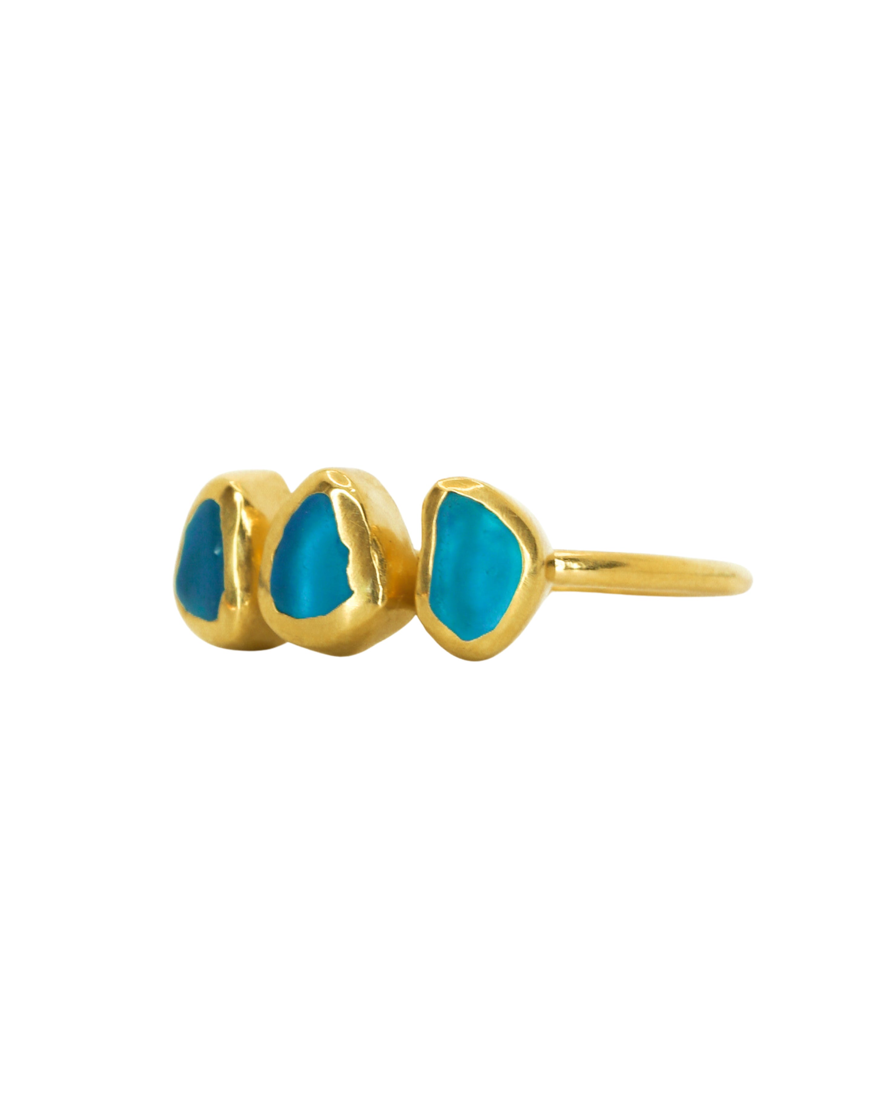 Blue Sea Glass, Gold Vermeil - Size Q