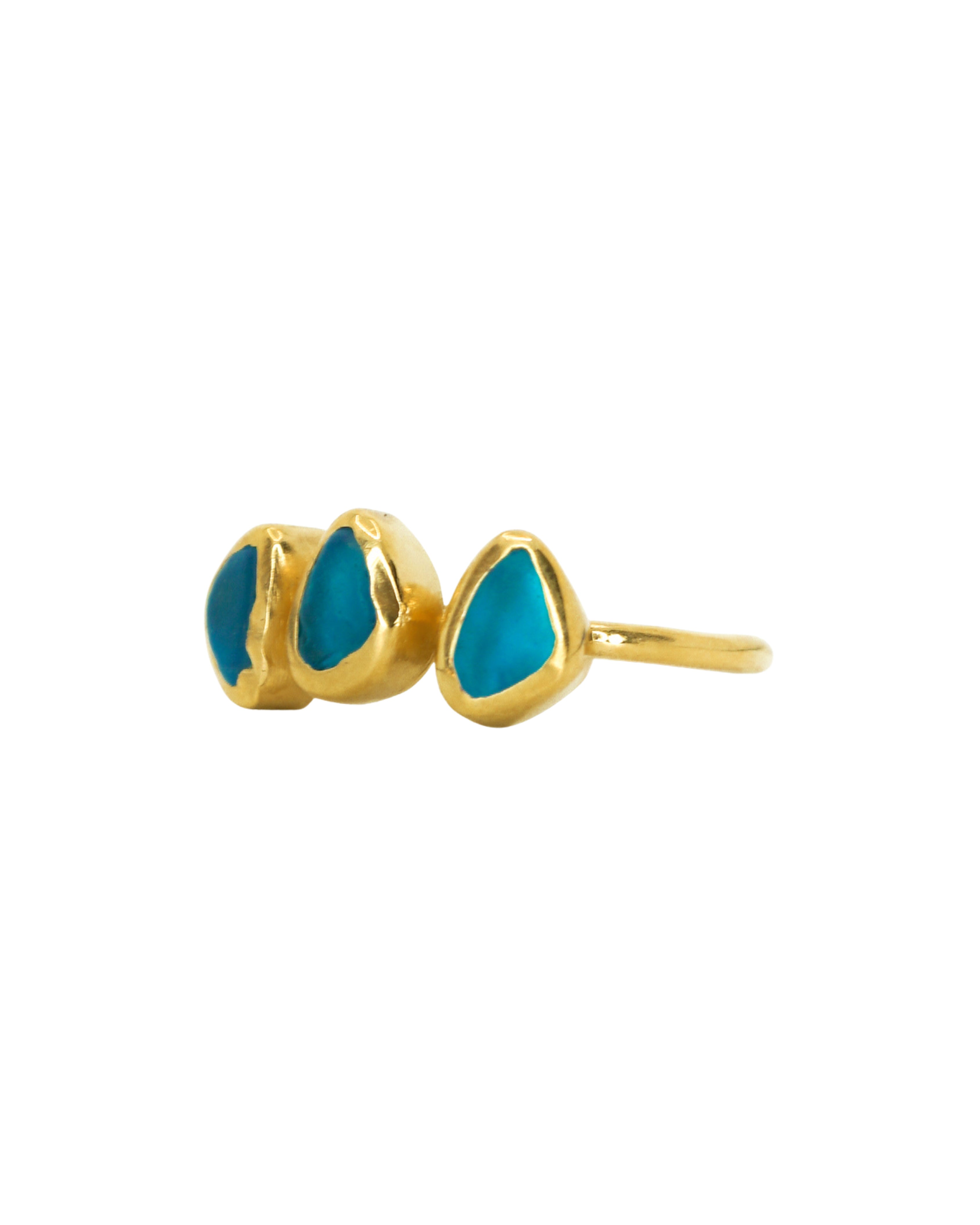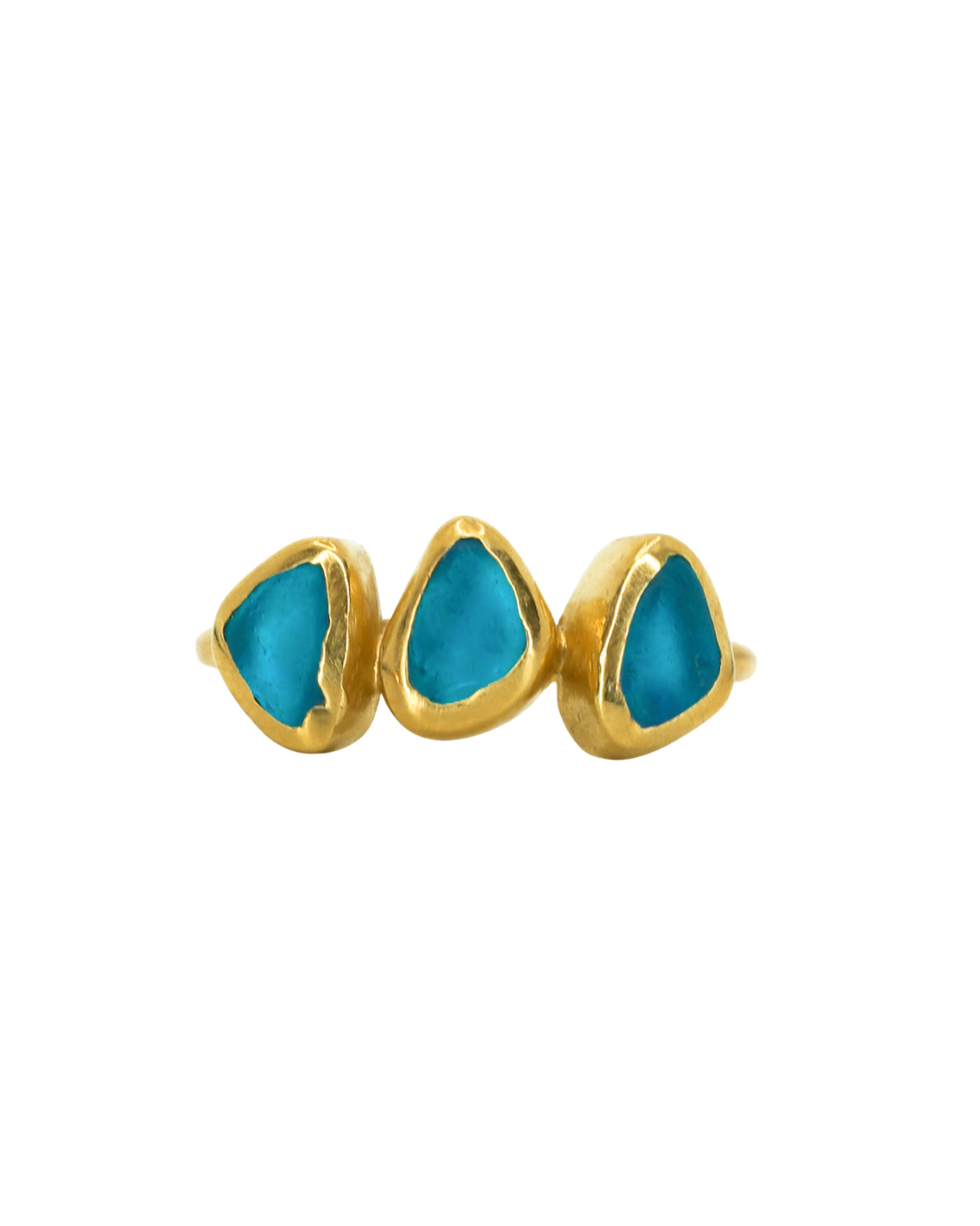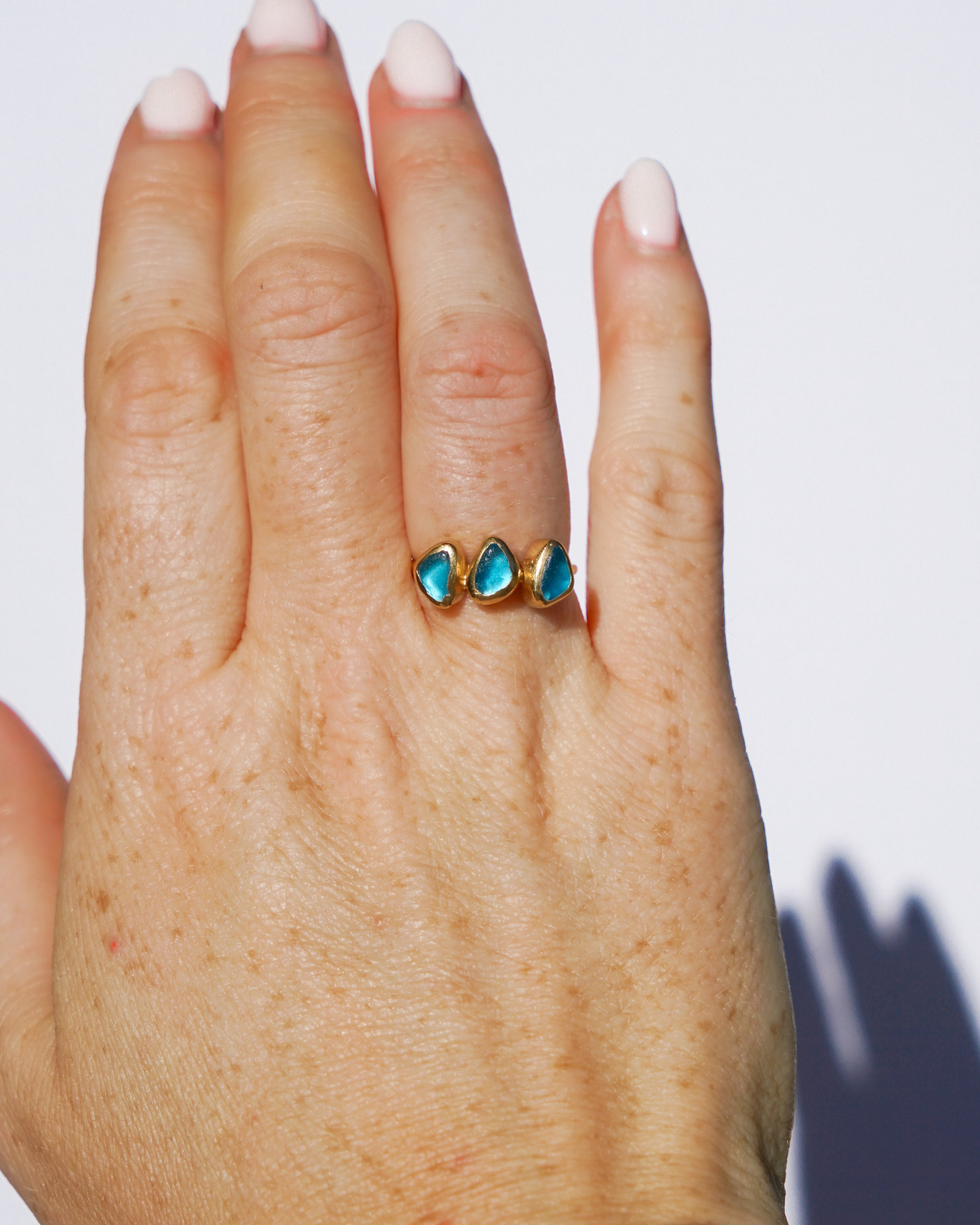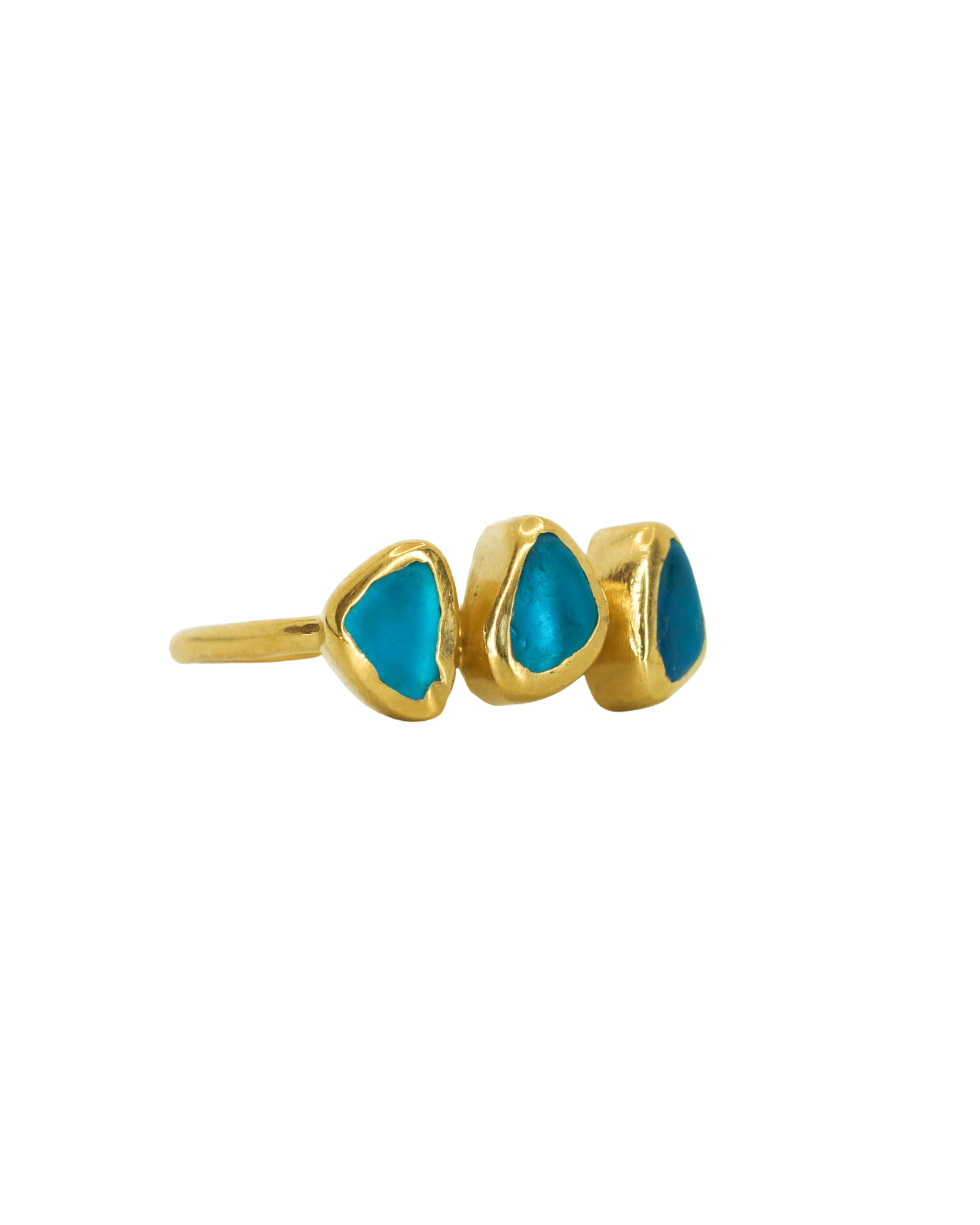 Blue Sea Glass Ring - Handmade from 925 Sterling Silver plated with a 10 micron thick and hard layer of 24K (Gold Vermeil)