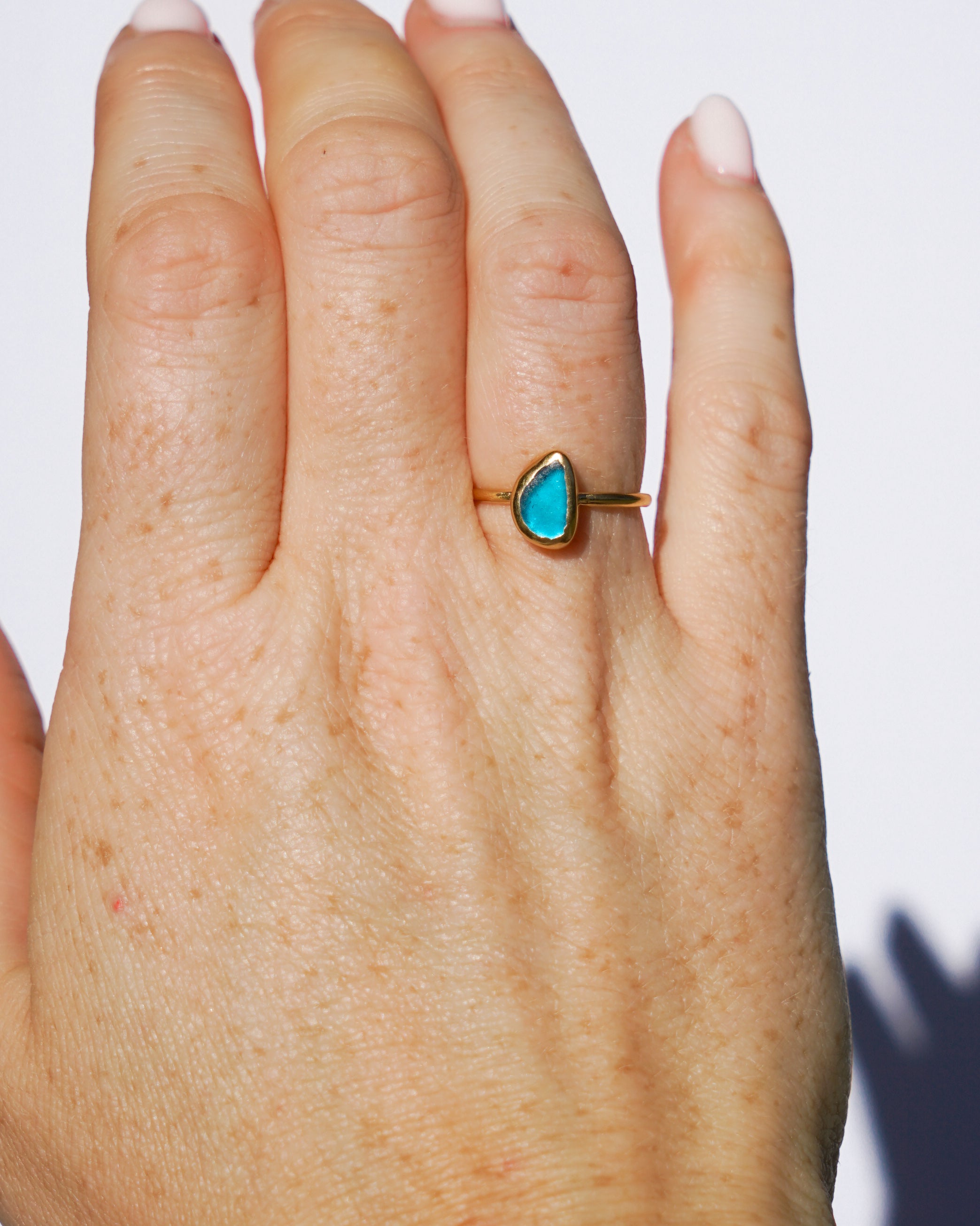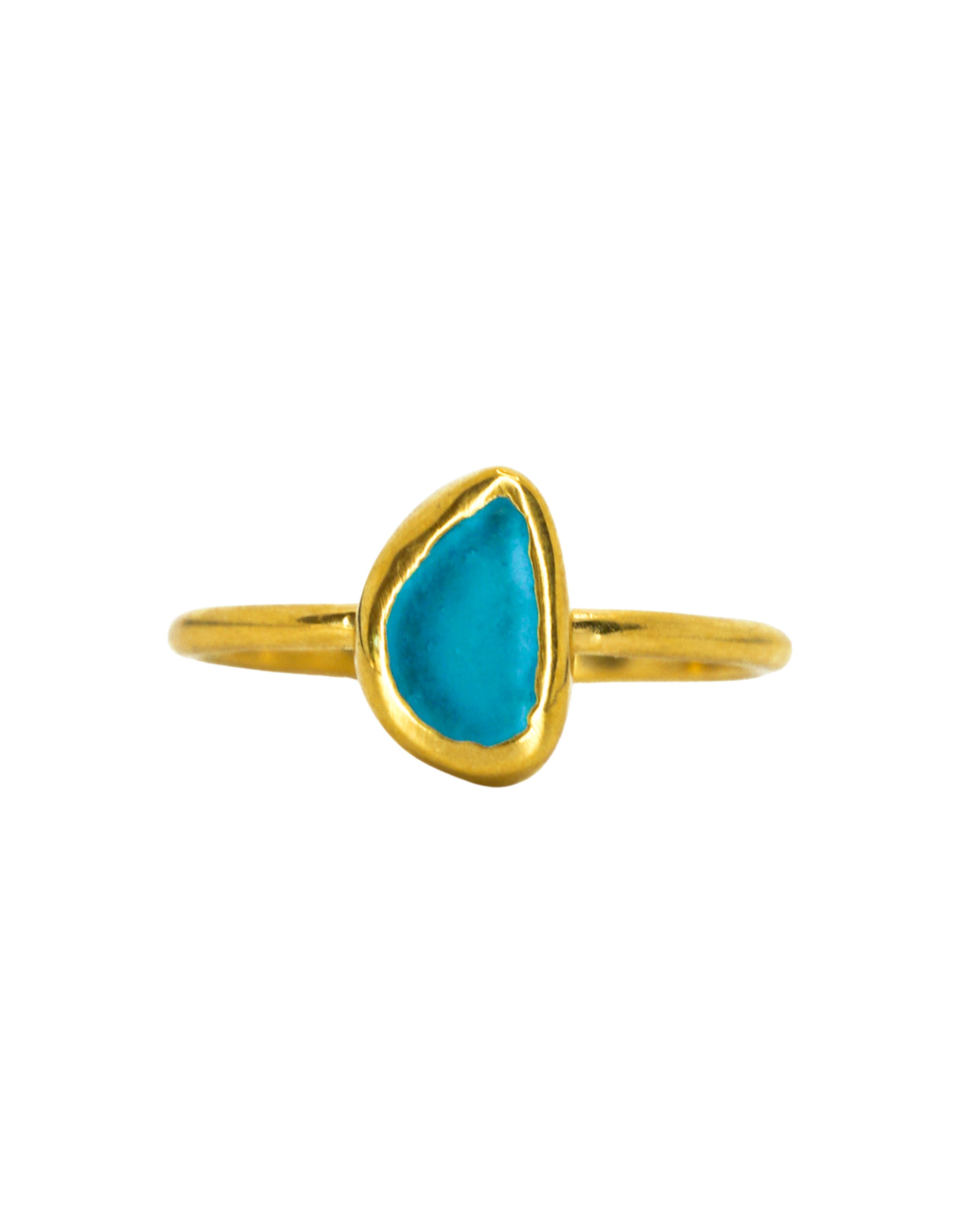 Blue Sea Glass Ring - Handmade from 925 Sterling Silver plated with a 10 micron thick and hard layer of 24K (Gold Vermeil)