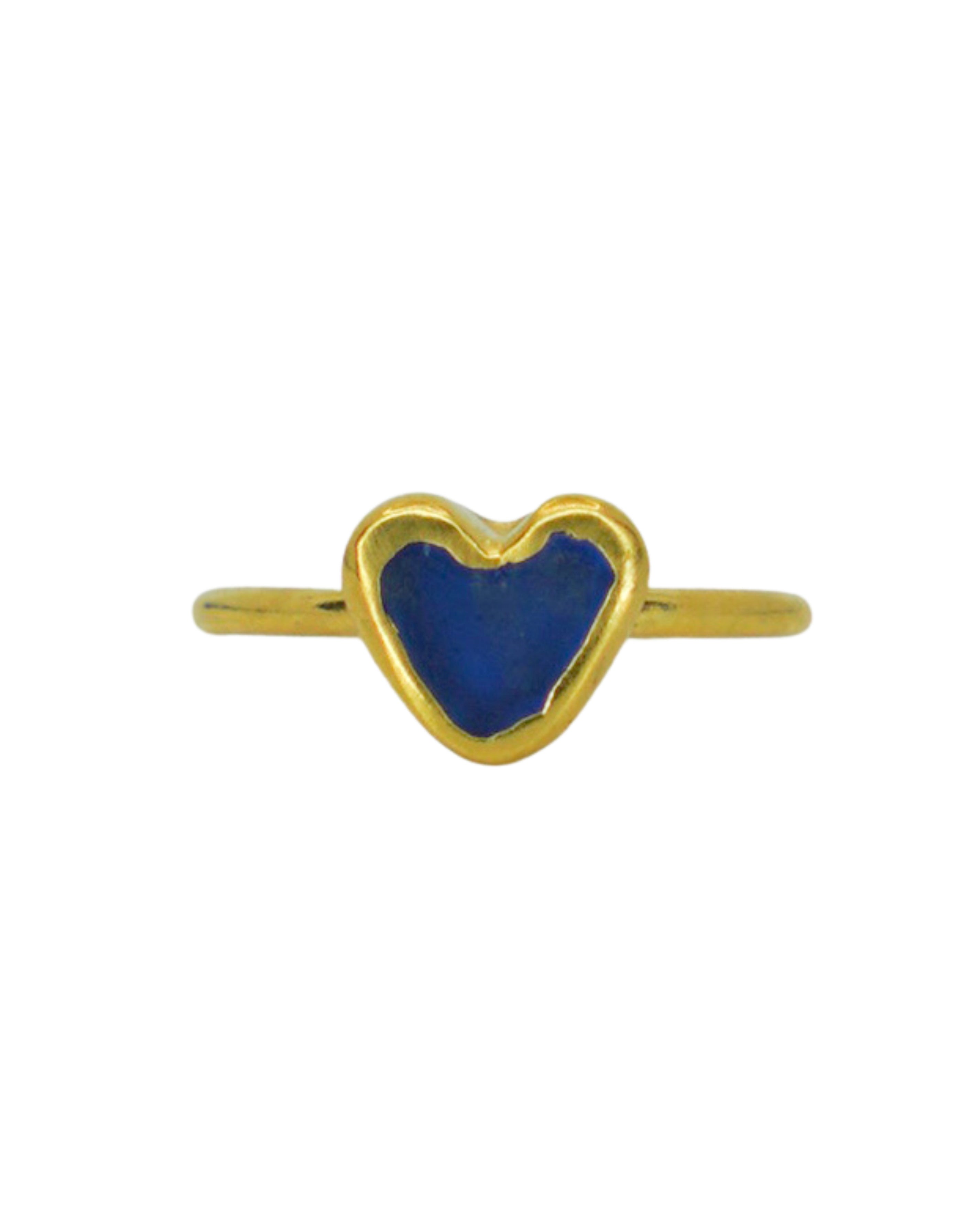 Blue Sea Glass Heart, Gold Vermeil - Size I (i)