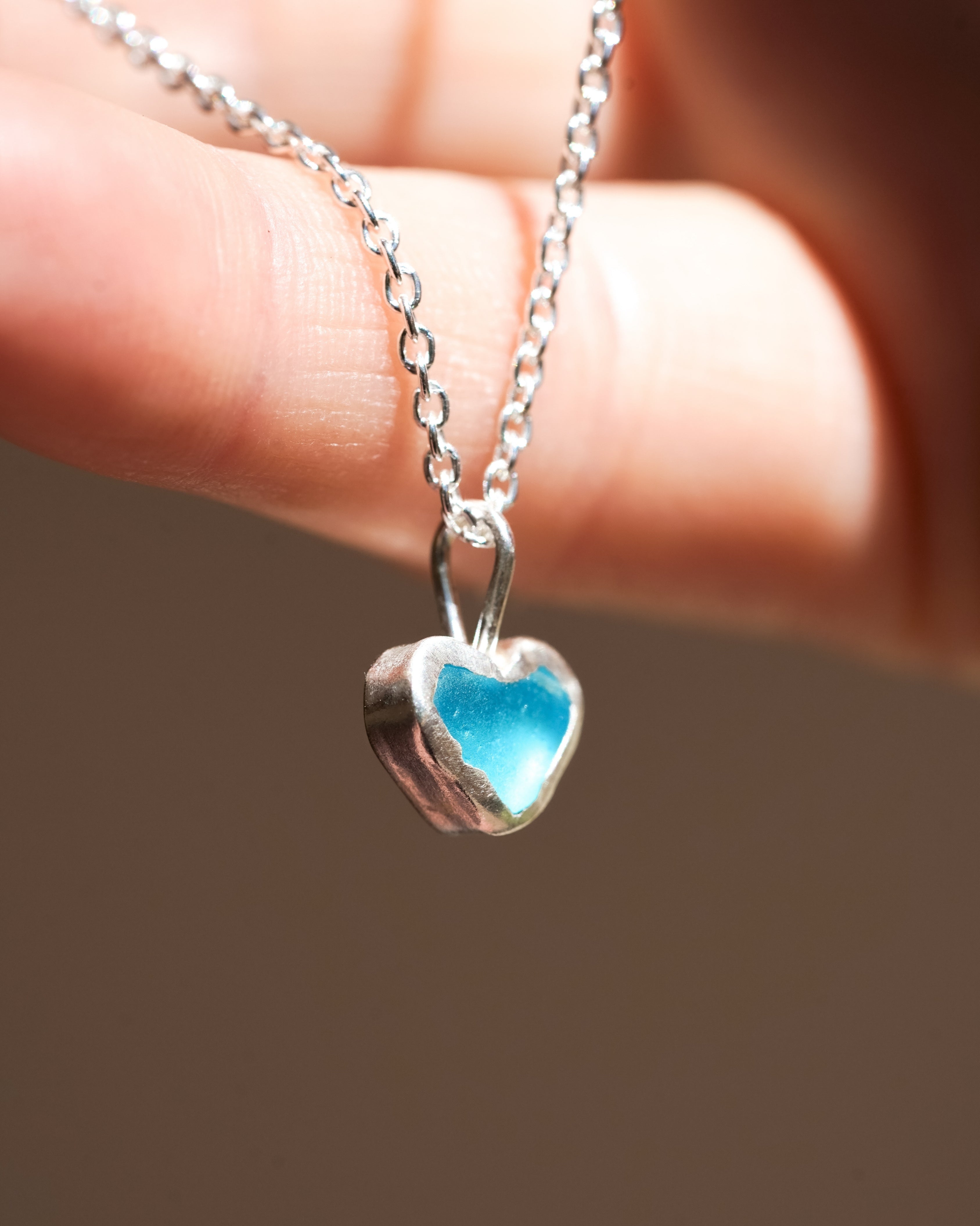 The sweetest little sea glass heart, perfect for your everyday wear 🤍 Each piece of sea glass has been washed and tumbled in the ocean giving them a smooth matte look