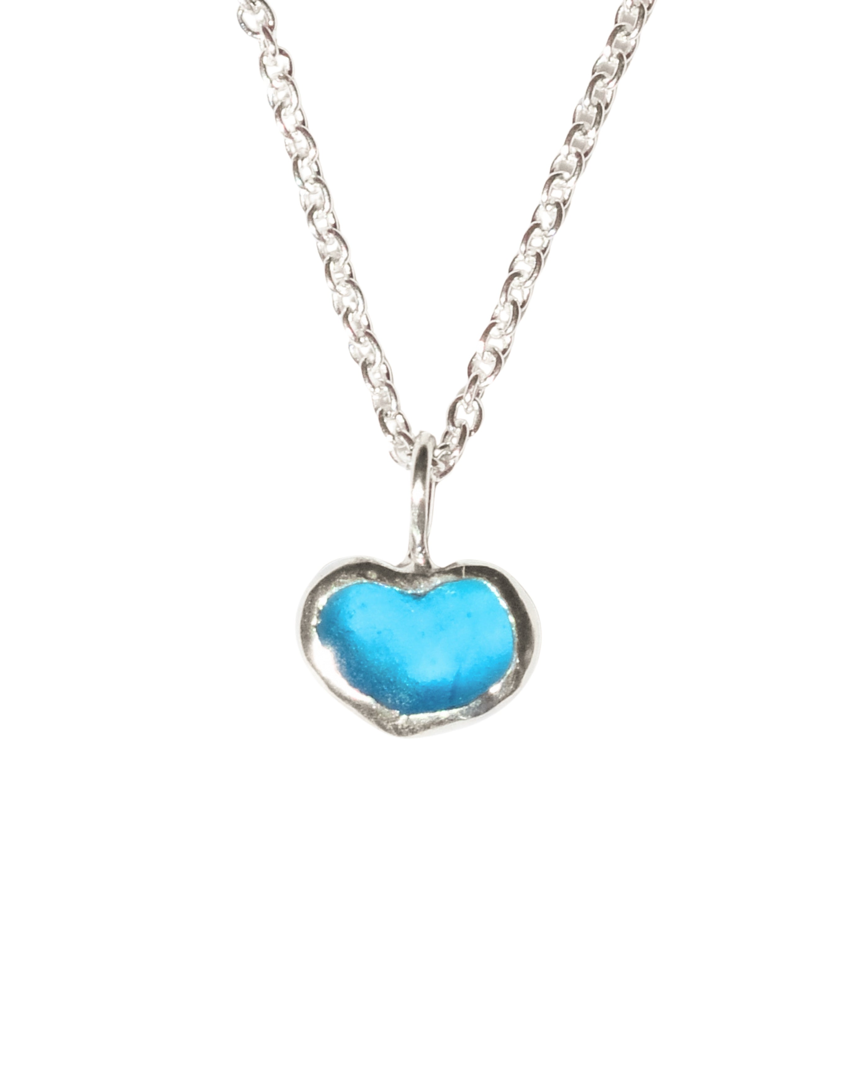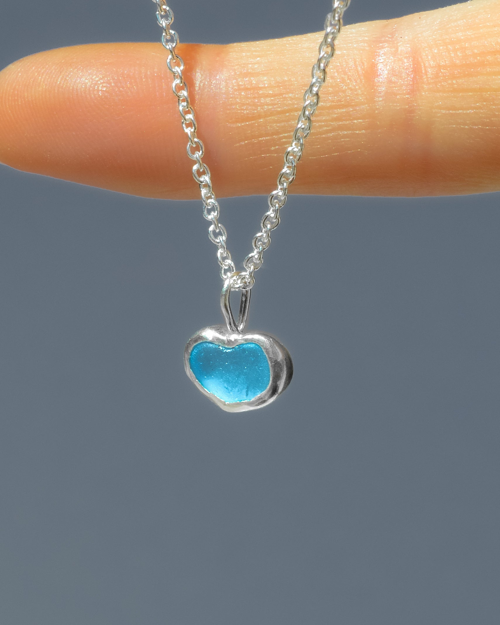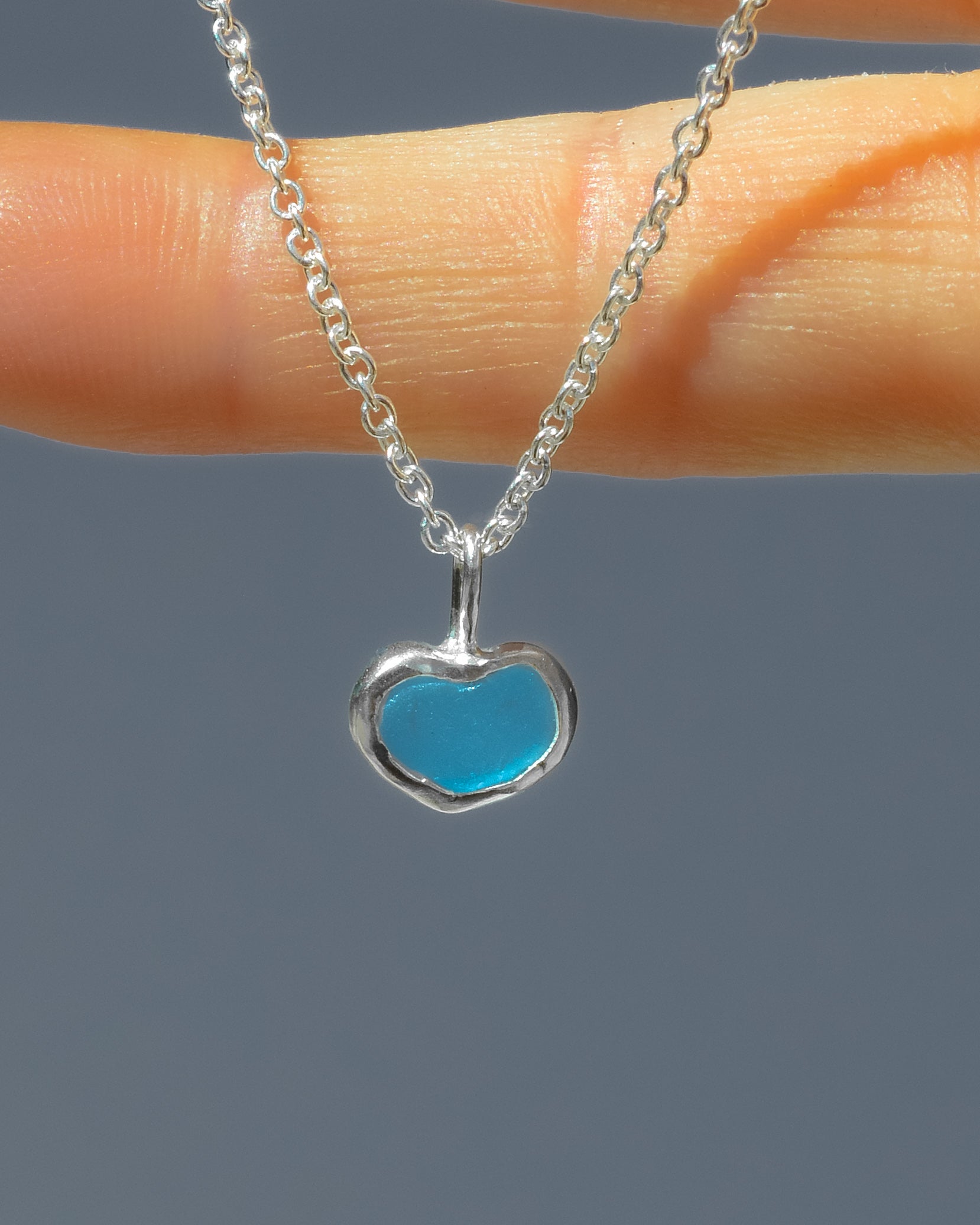 Blue Sea Glass Heart - Handmade from 925 Sterling Silver