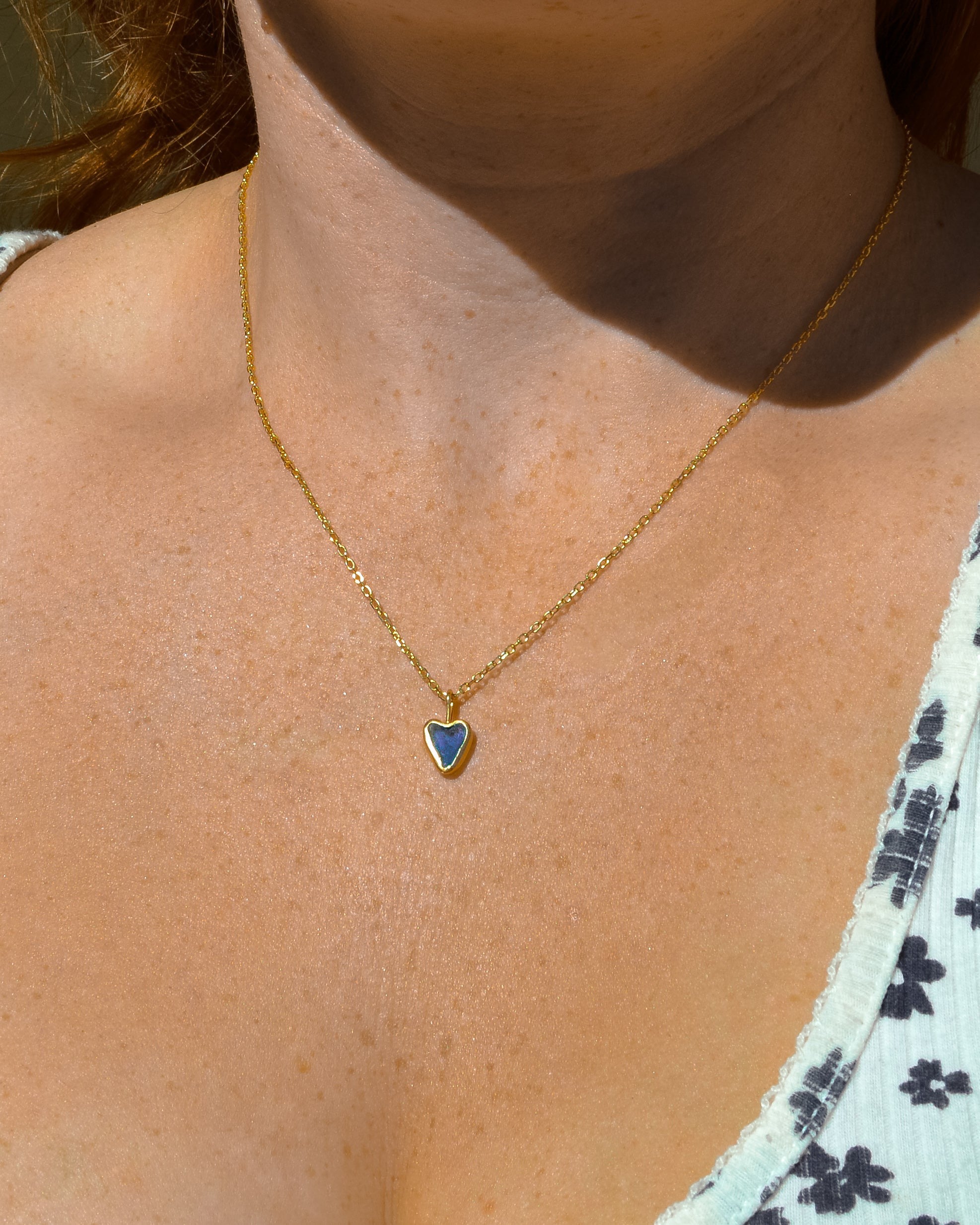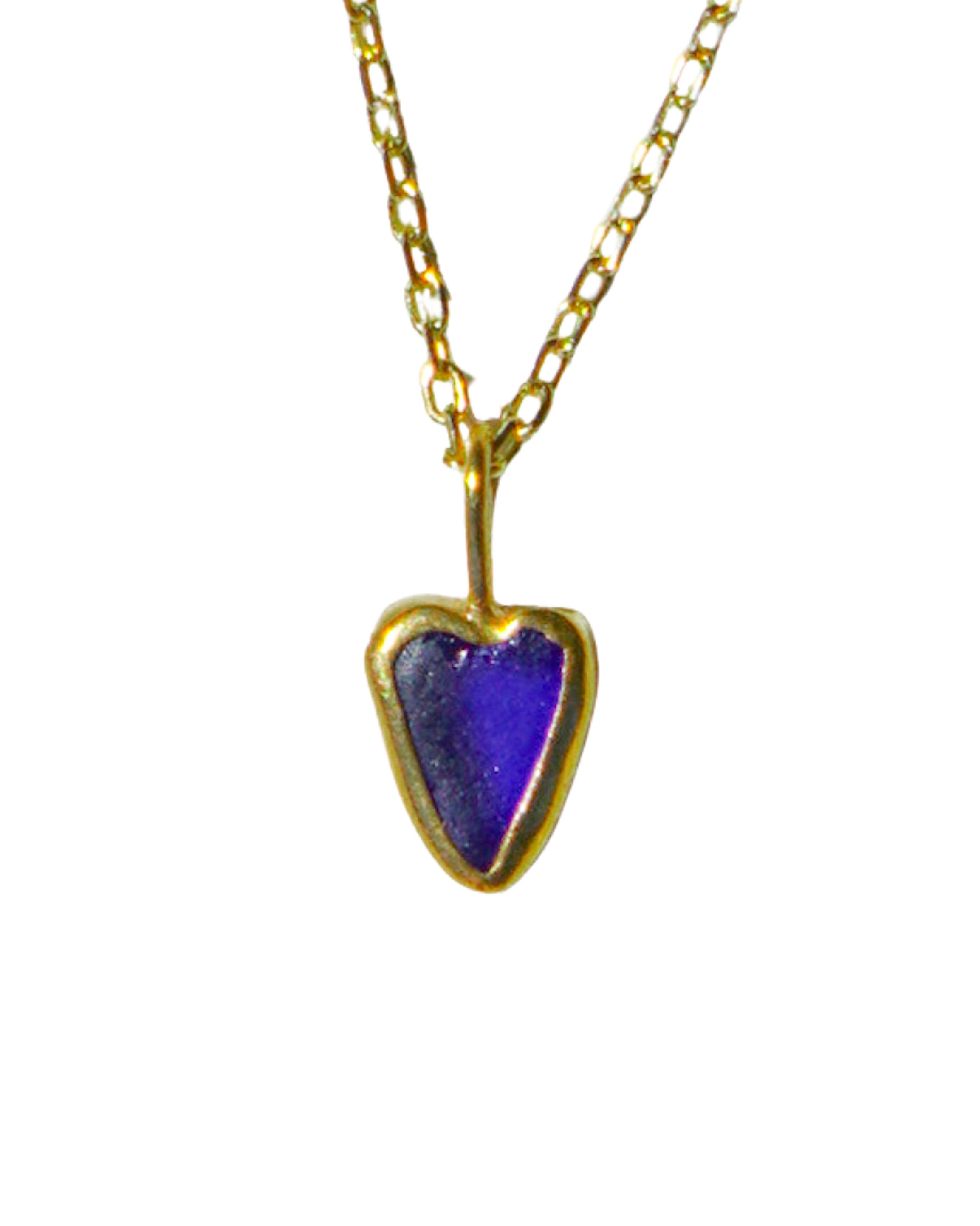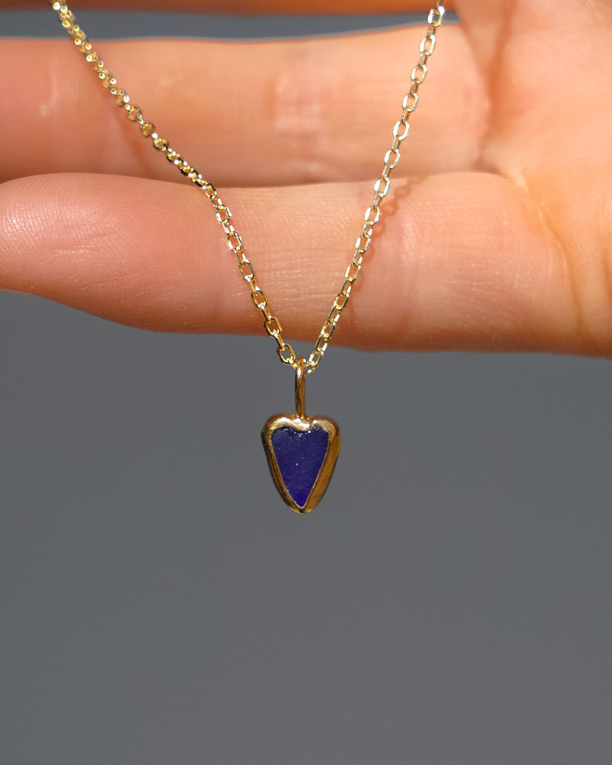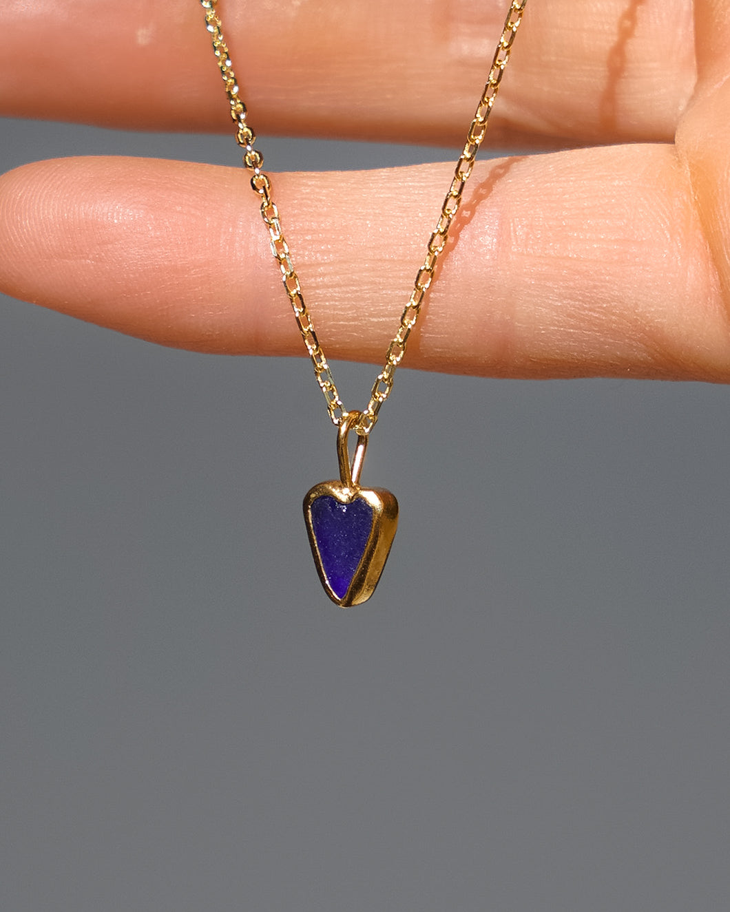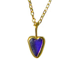 Blue Sea Glass Heart Necklace, Gold Vermeil