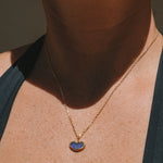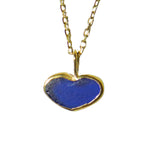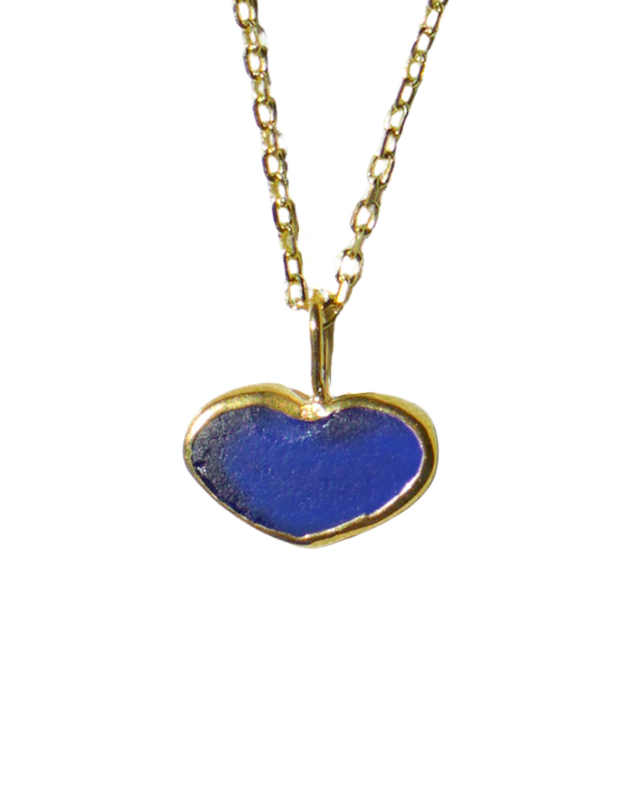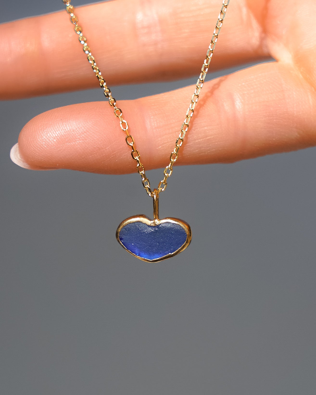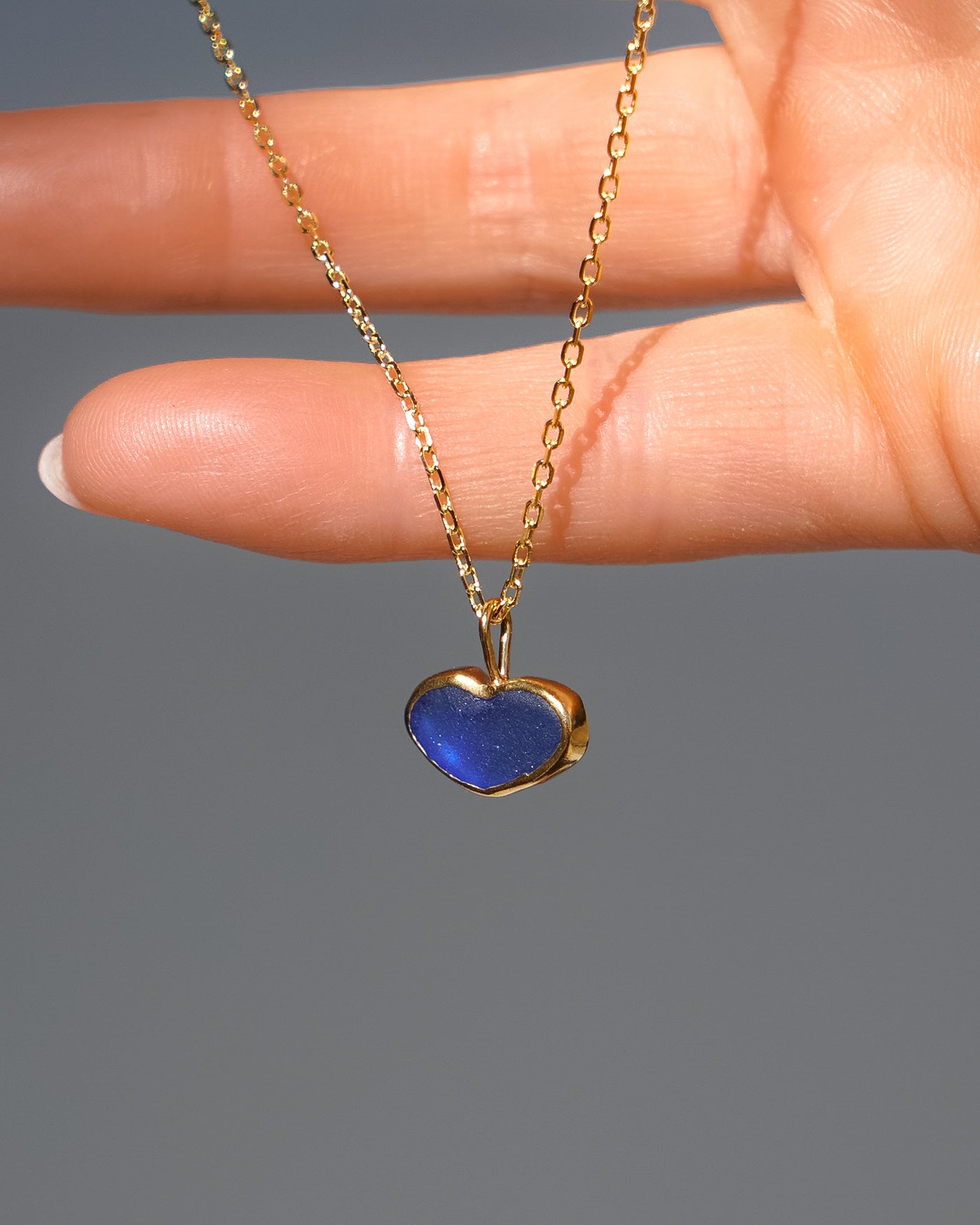 Blue Sea Glass Heart Necklace, Gold Vermeil