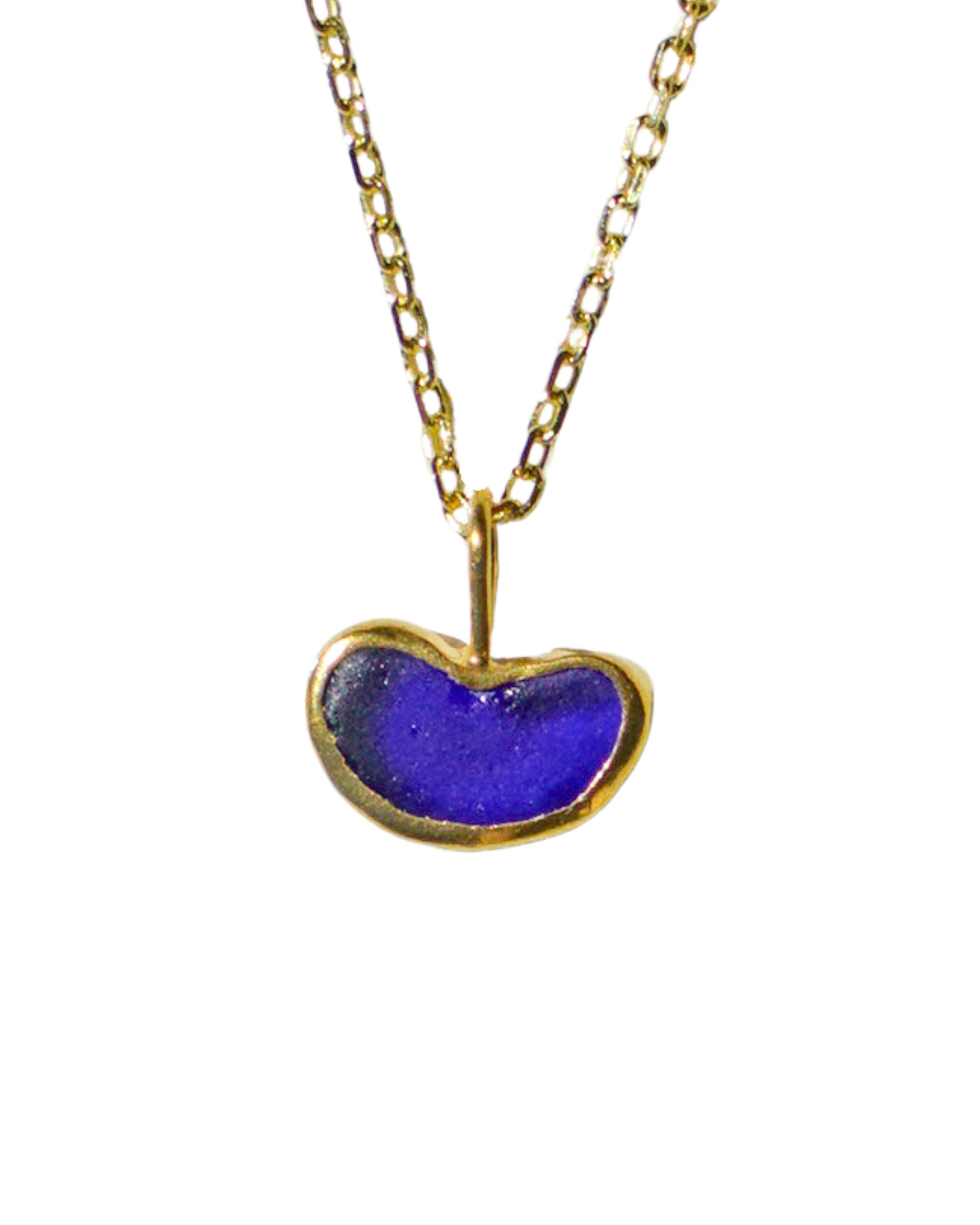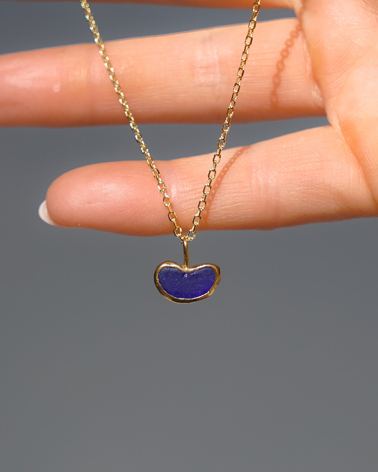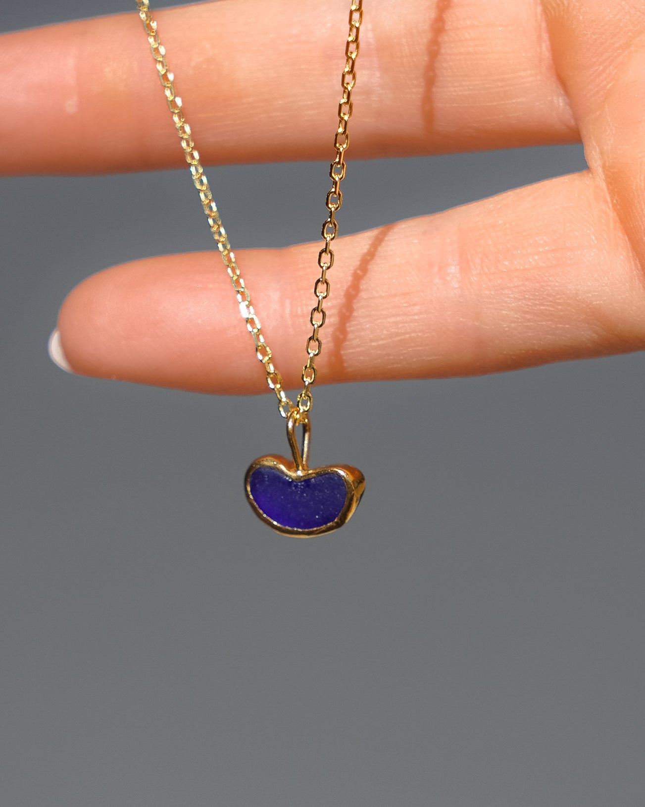 Blue Sea Glass Heart Necklace, Gold Vermeil