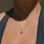 Our new open back design! This necklace has been designed with an open back which means the metal has been placed just around the glass, not behind (making them waterproof). This allows light to shine though the glass showing its true colours 🤍