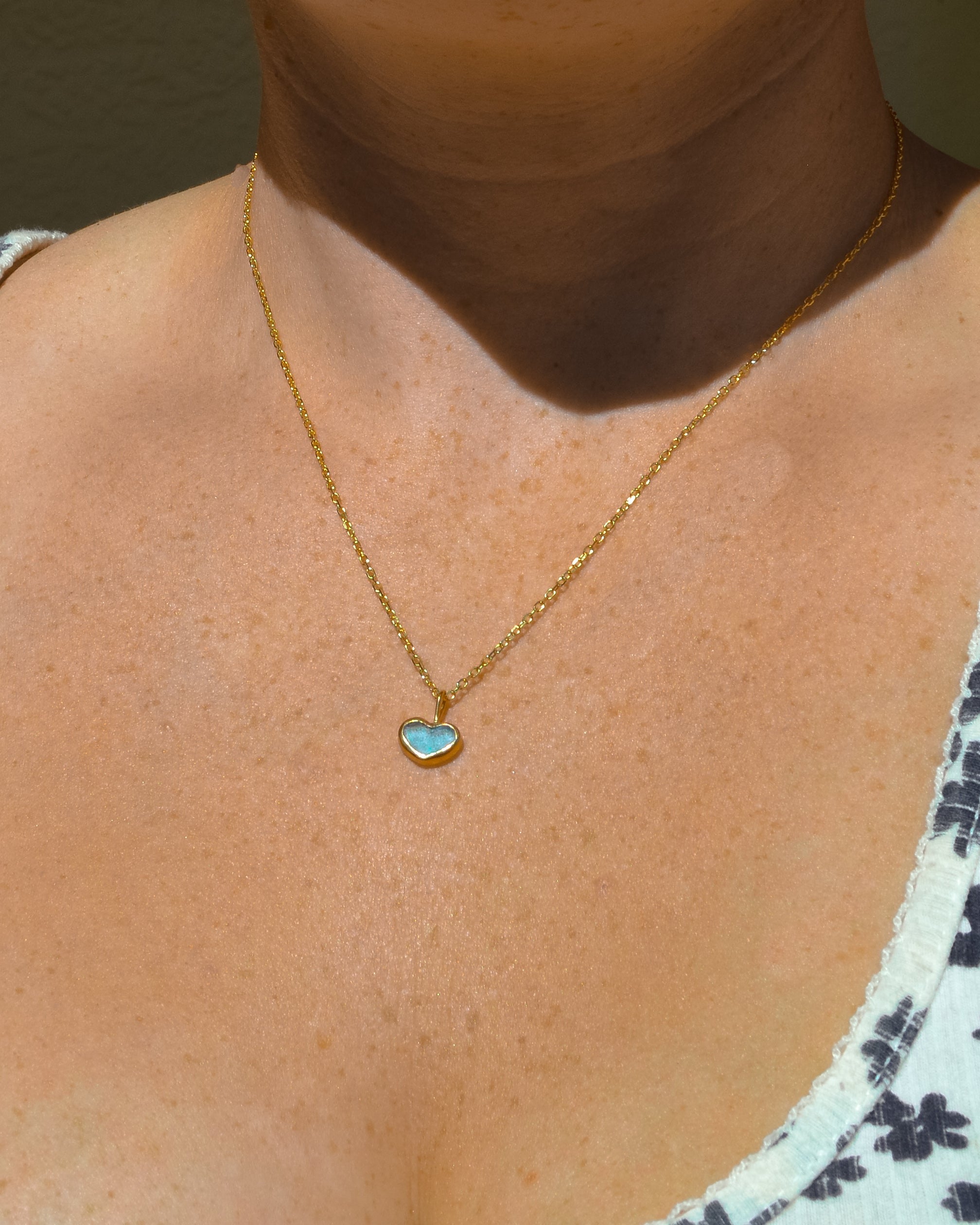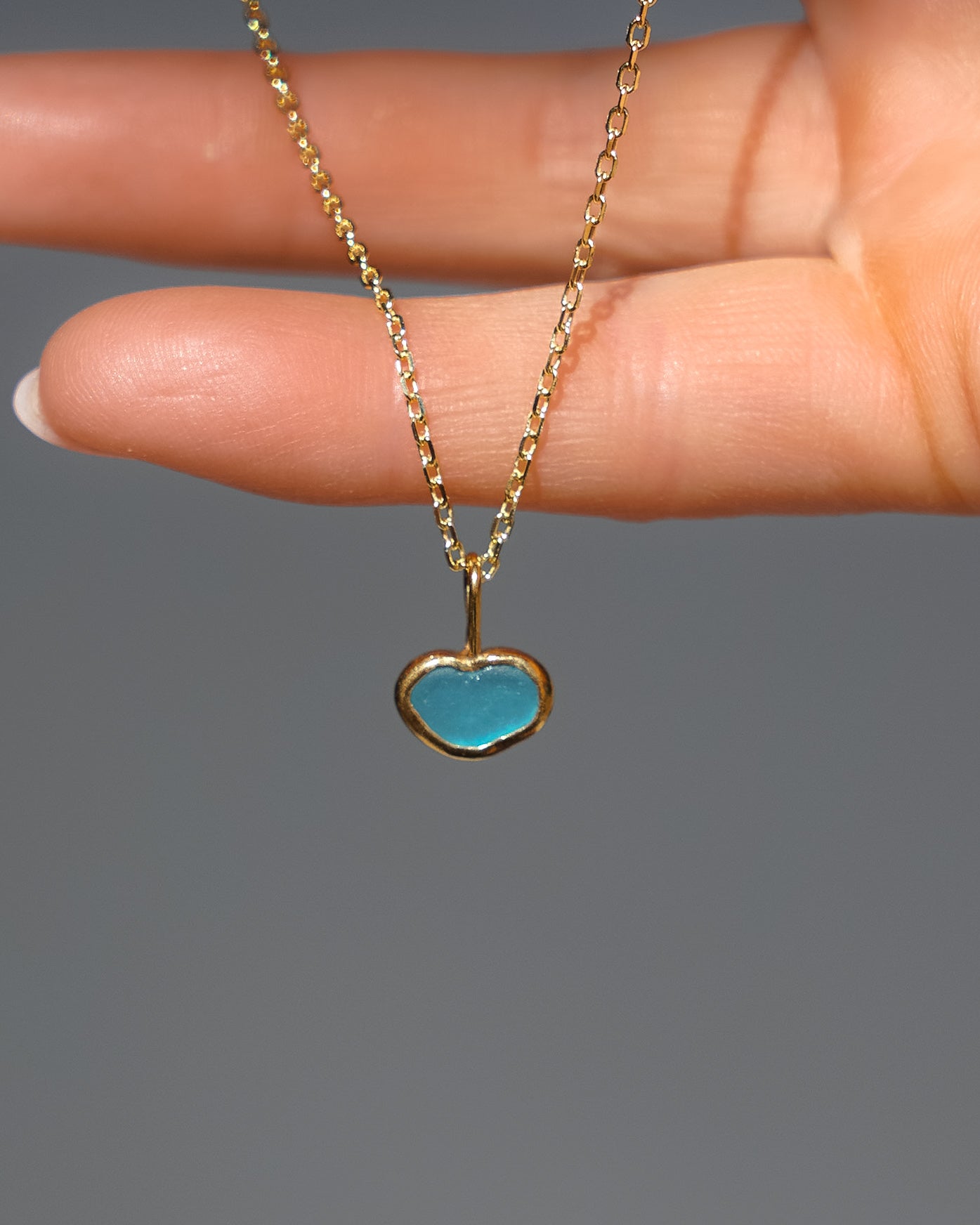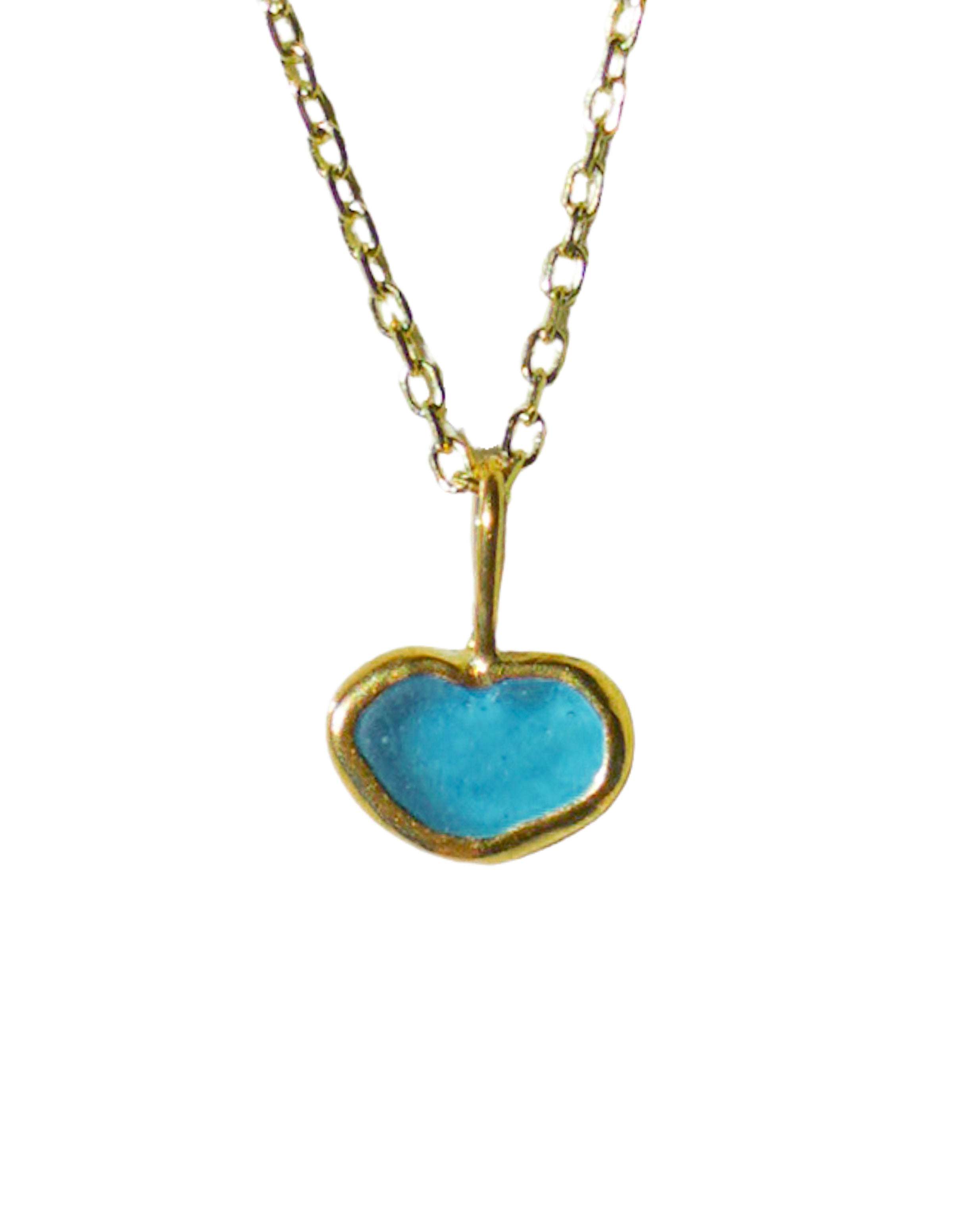 Blue Sea Glass Heart Necklace, Gold Vermeil