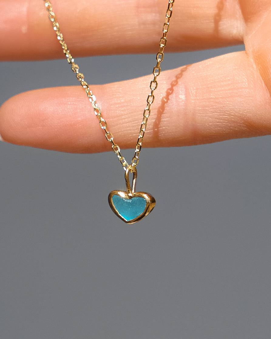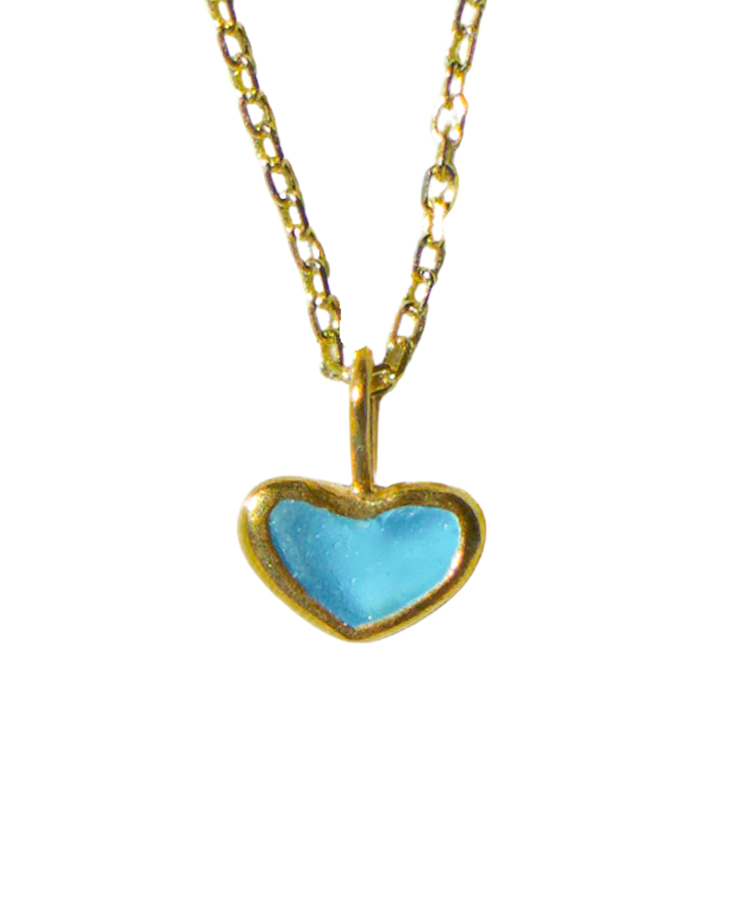 Blue Sea Glass Heart Necklace, Gold Vermeil