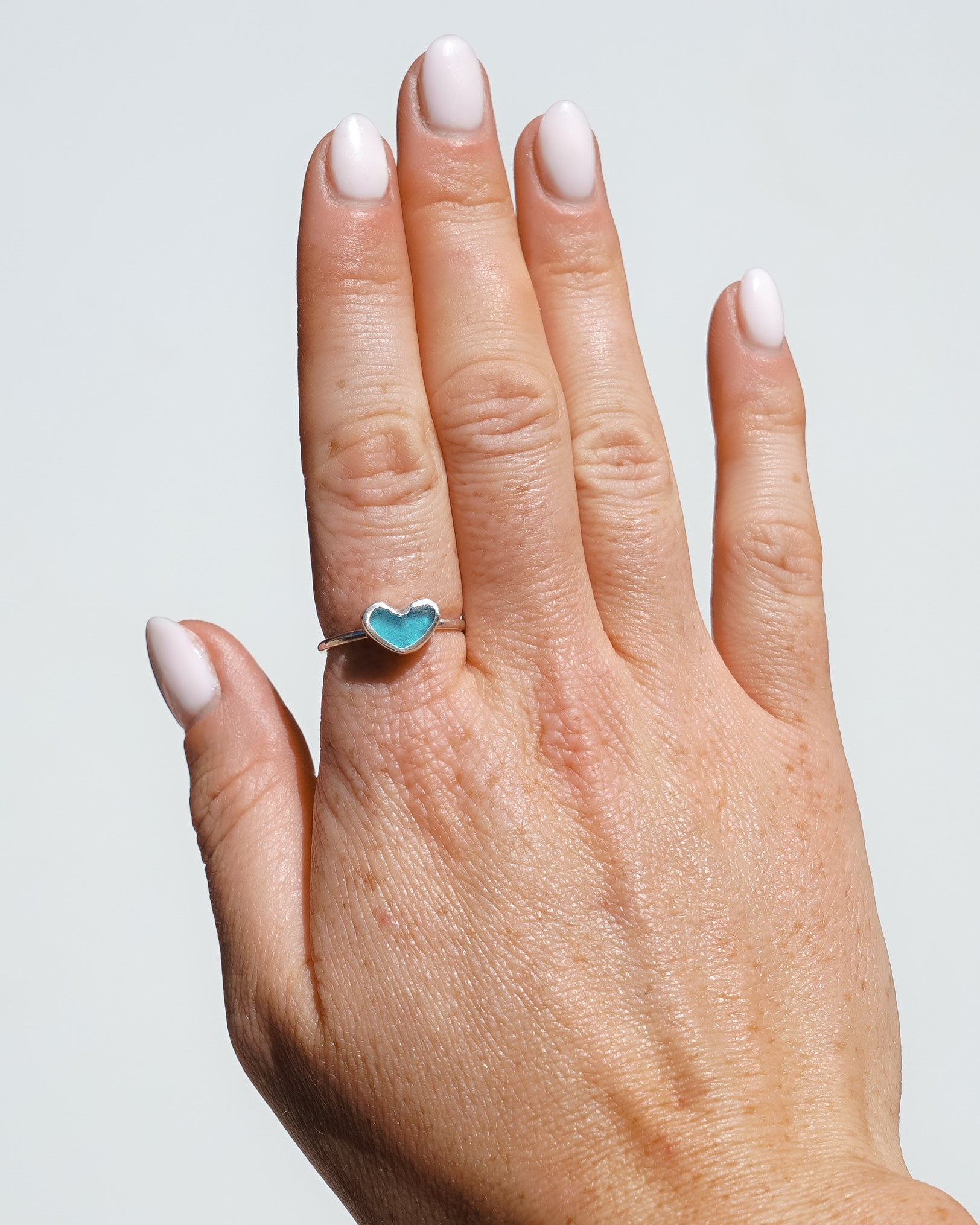 Sea Glass Heart Ring - Handmade from 925 Sterling Silver