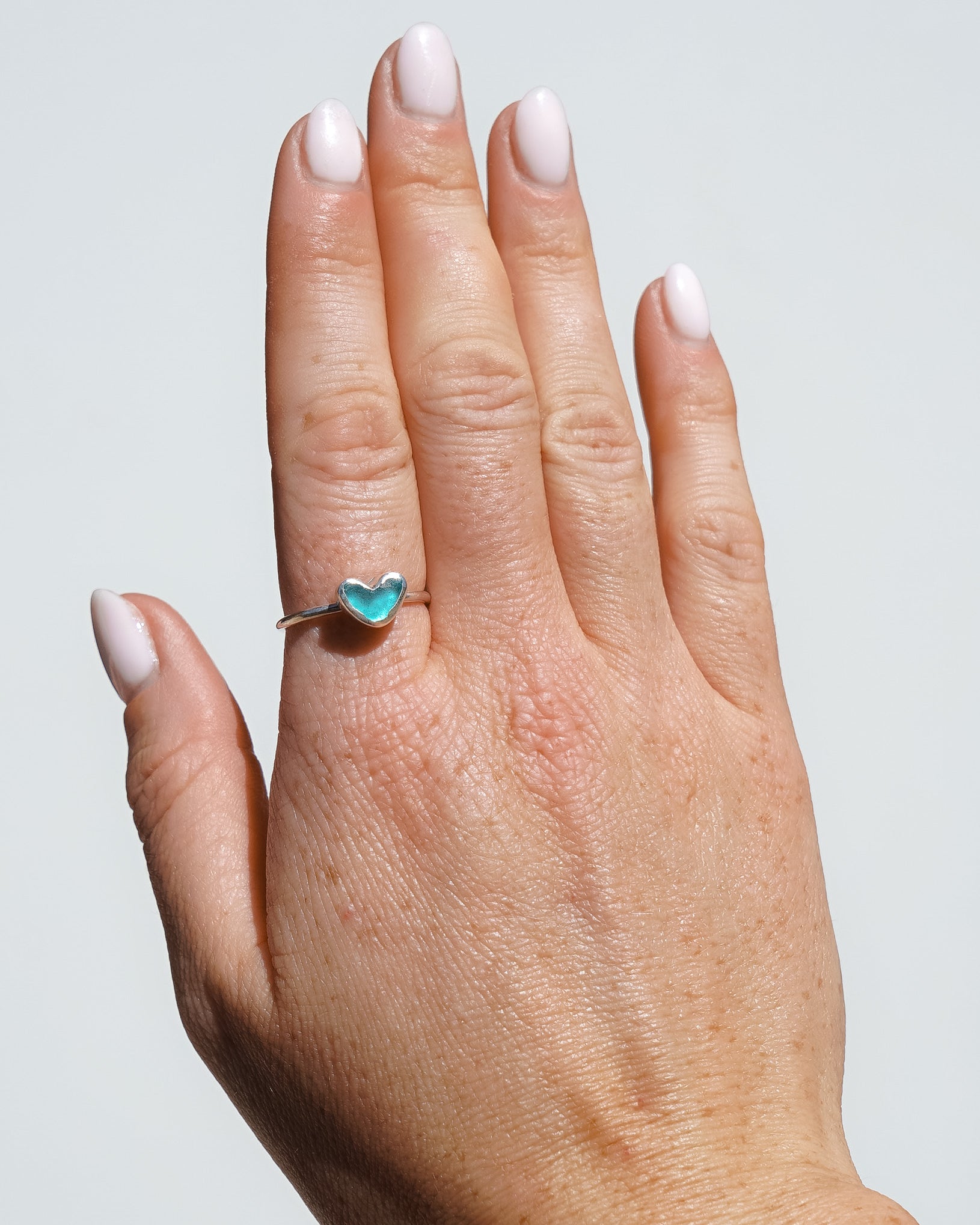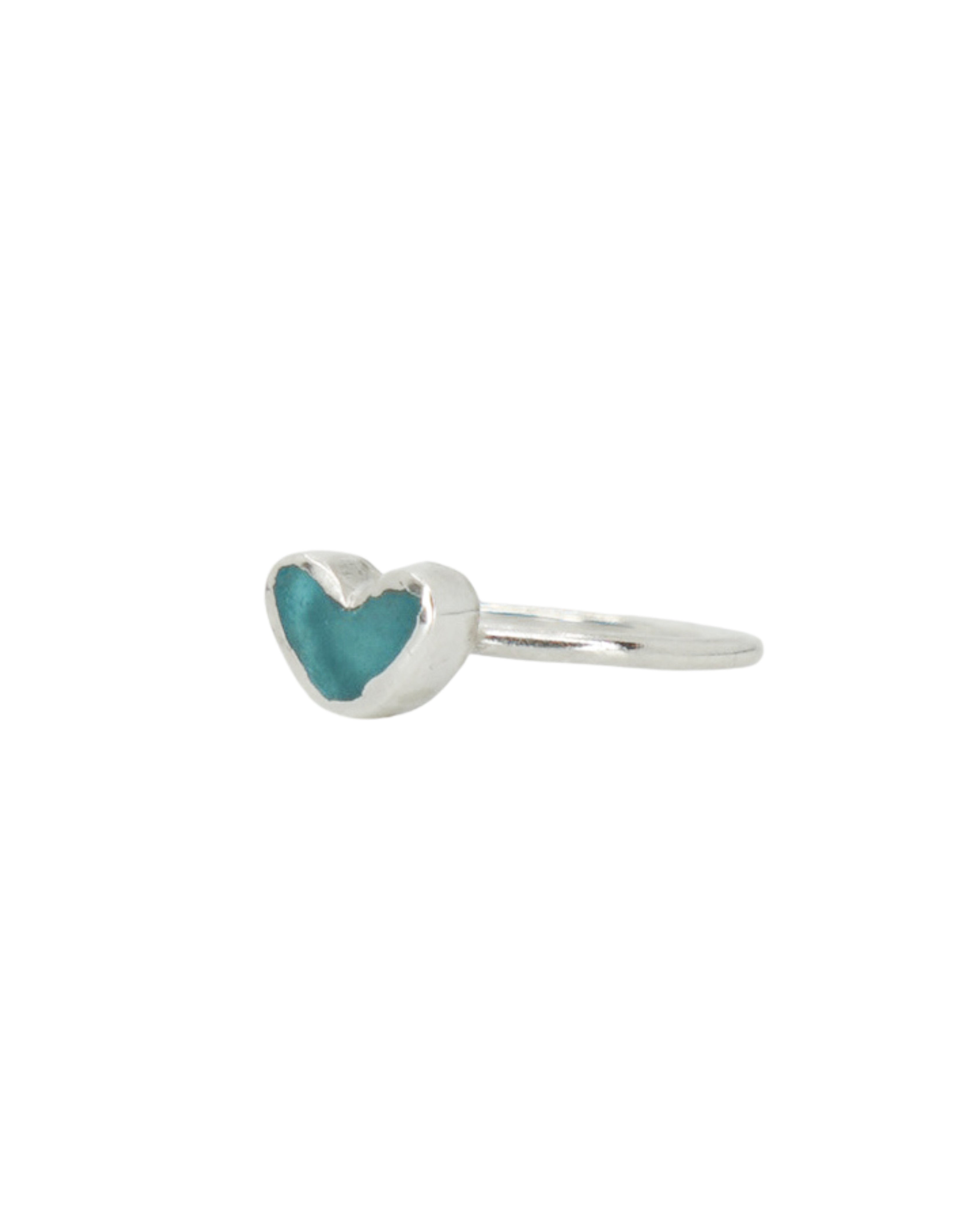 Sea Glass Heart Ring - Handmade from 925 Sterling Silver