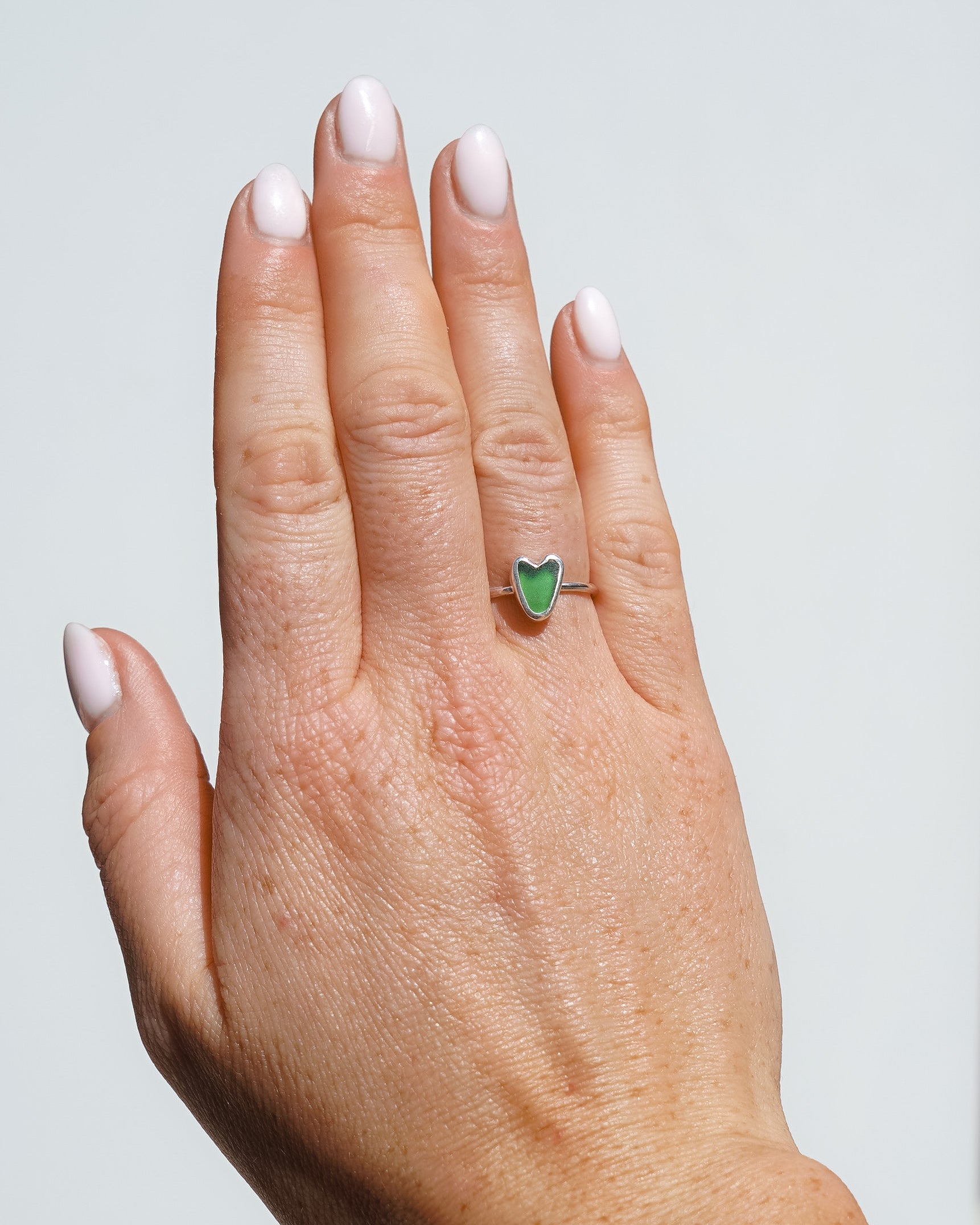 Sea Glass Heart Ring - Handmade from 925 Sterling Silver