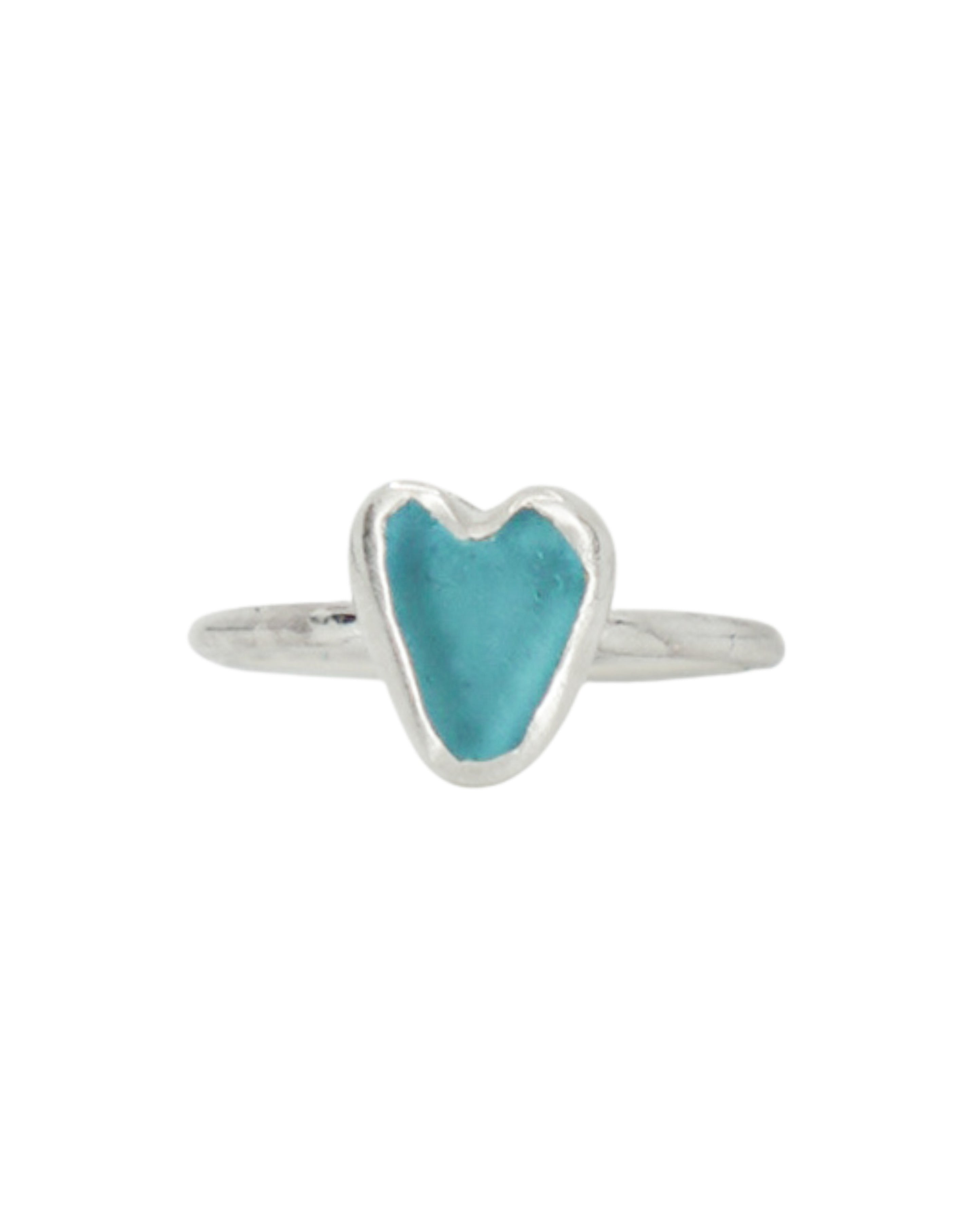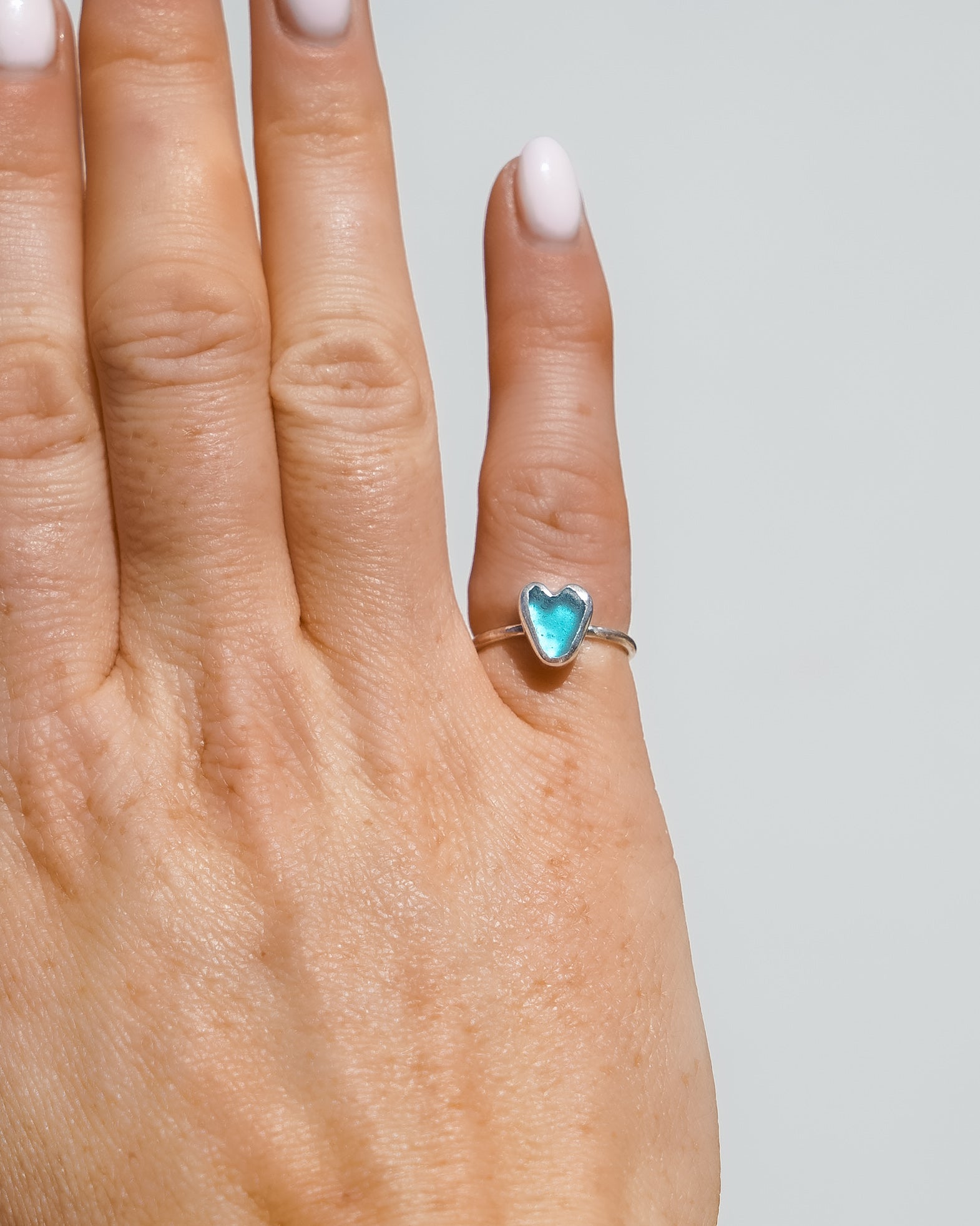 Sea Glass Heart Ring - Handmade from 925 Sterling Silver