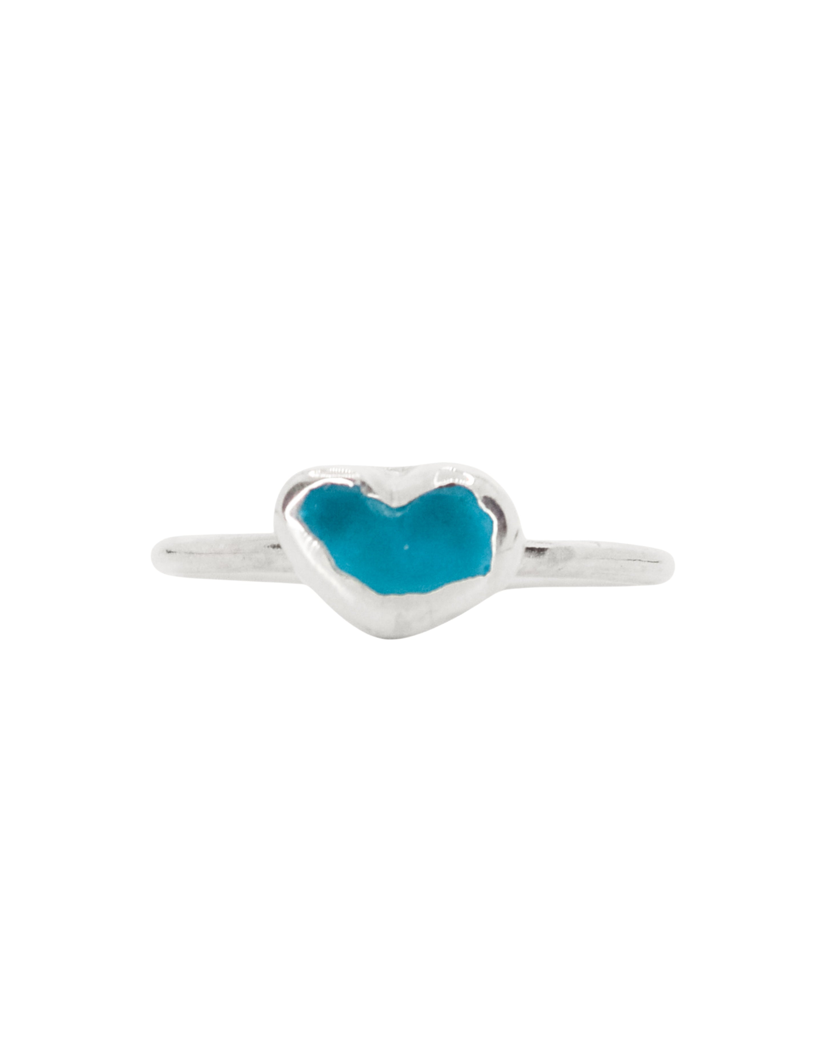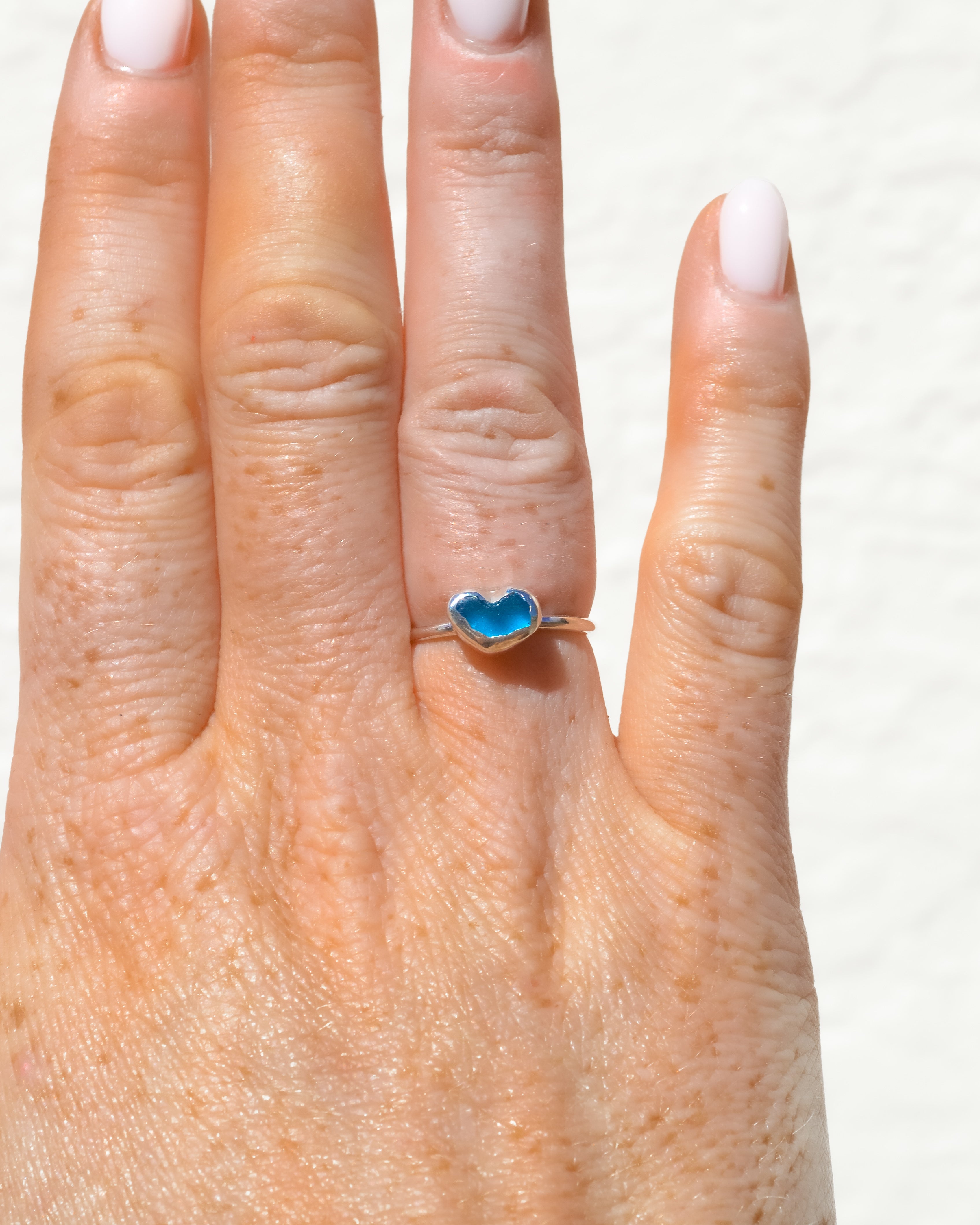 Sea Glass Heart Ring - Handmade from 925 Sterling Silver