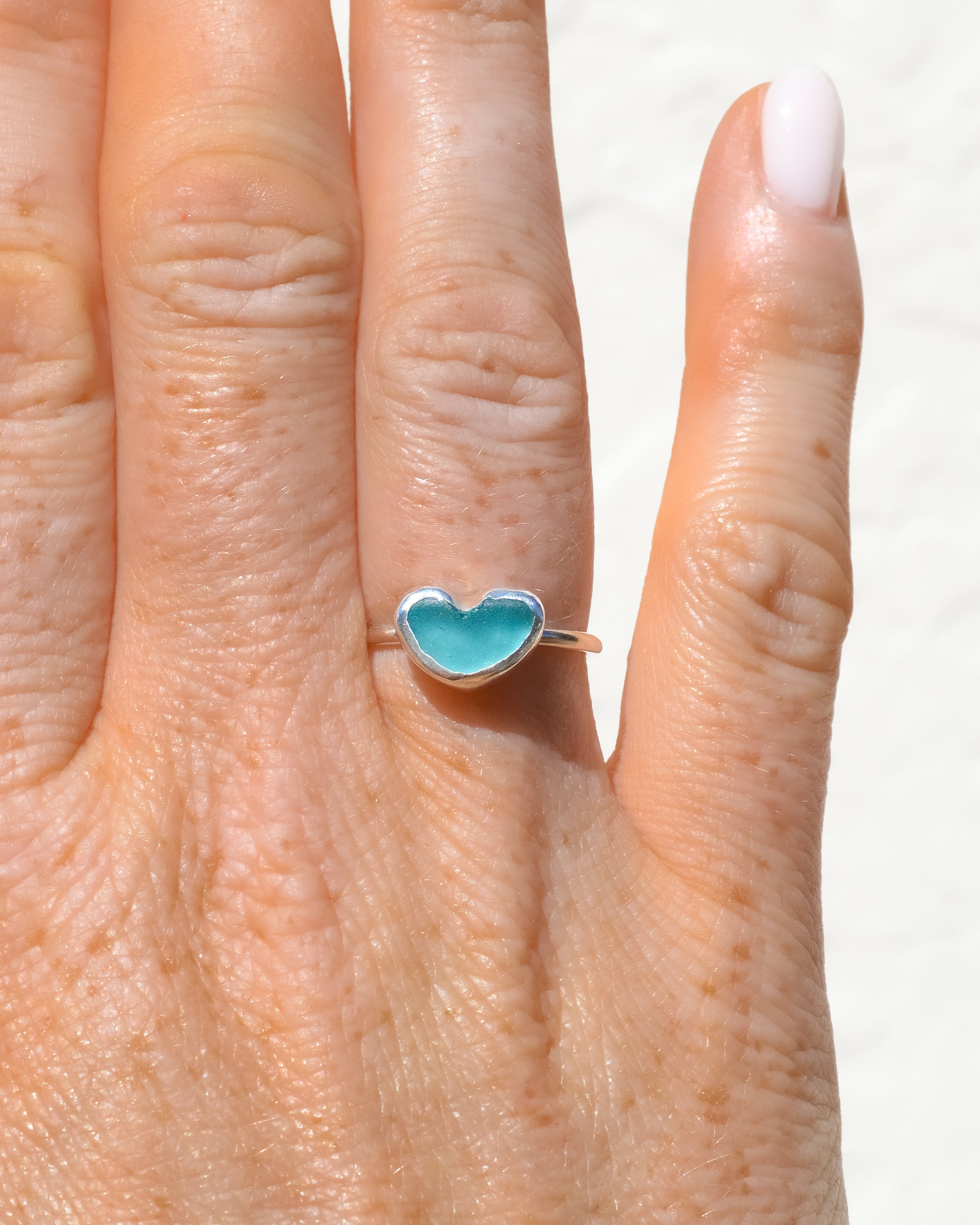 Sea Glass Heart Ring - Handmade from 925 Sterling Silver