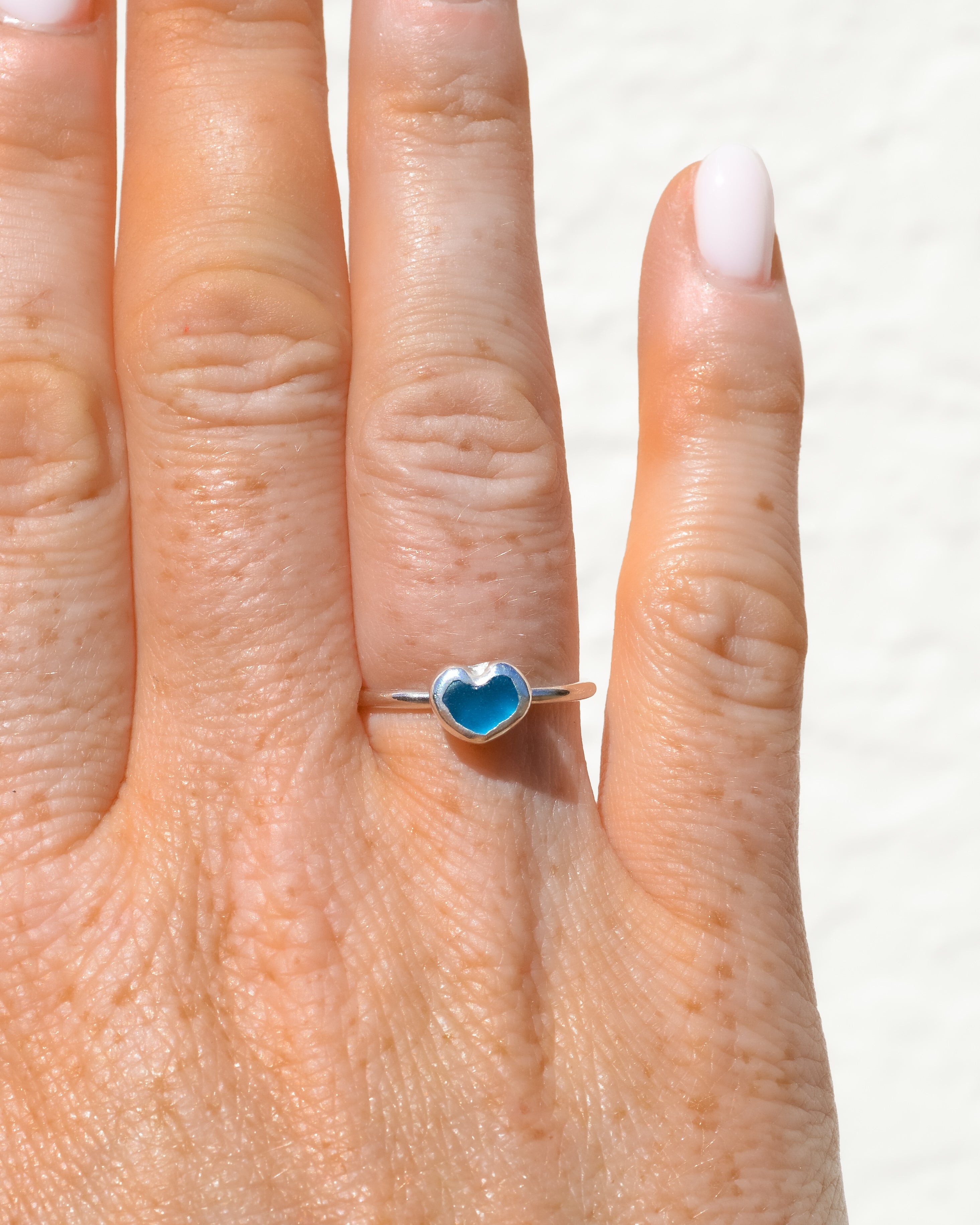 Sea Glass Heart Ring - Handmade from 925 Sterling Silver