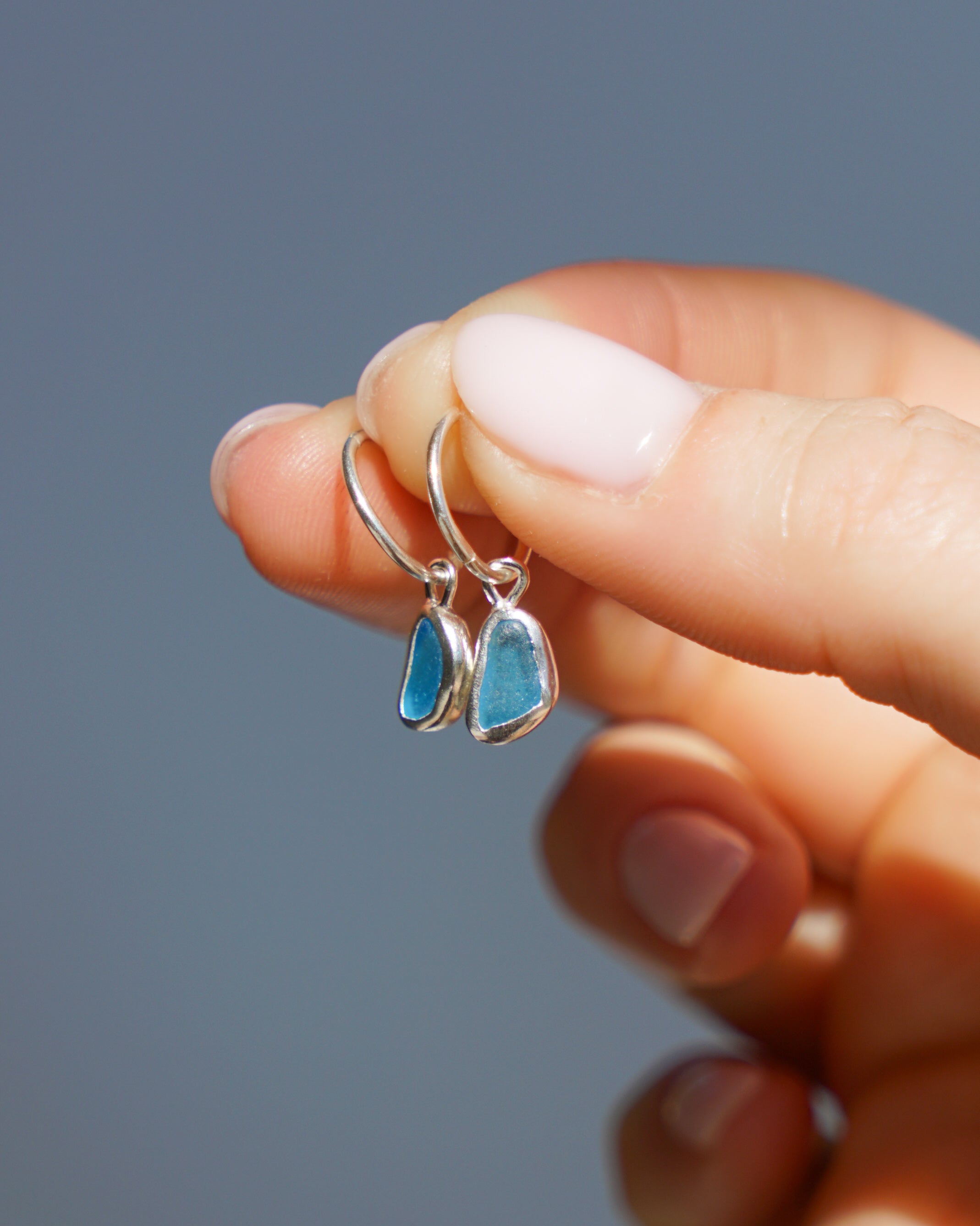 Blue Sea Glass Hoops